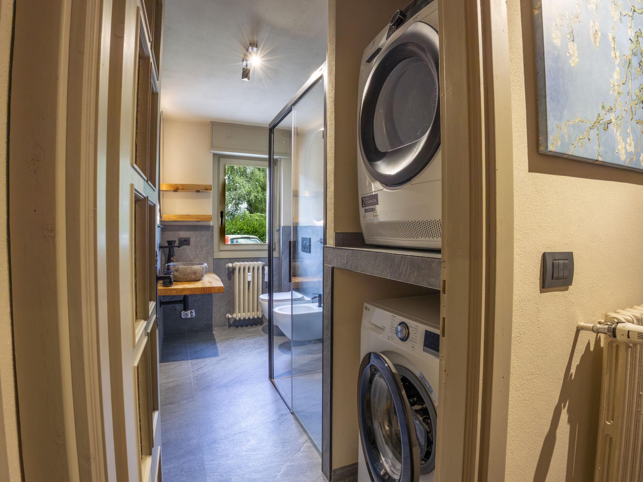 2-room apartment 60 m2, on the ground floor, south facing position. Fully renovated in 2025, comfortable and stylish furnishings: living/dining room with 1 double sofabed, dining table, dining nook and TV. 1 double bedroom with Dressing room. Kitchen (oven, dishwasher, 4 induction hot plates, toaster, kettle, microwave, freezer). Shower/bidet/WC. Heating, boiler (100 litres). Parquet floors. View of the mountains and the garden. Facilities: washing machine, dryer, iron, children's high chair, baby cot, hair dryer. Internet (WiFi, free). Please note: suitable for families. Non-smokers only. Maximum 1 pet/ dog allowed. Smoke alarm, fire extinguisher. IT014009C2JLYNKCPD
