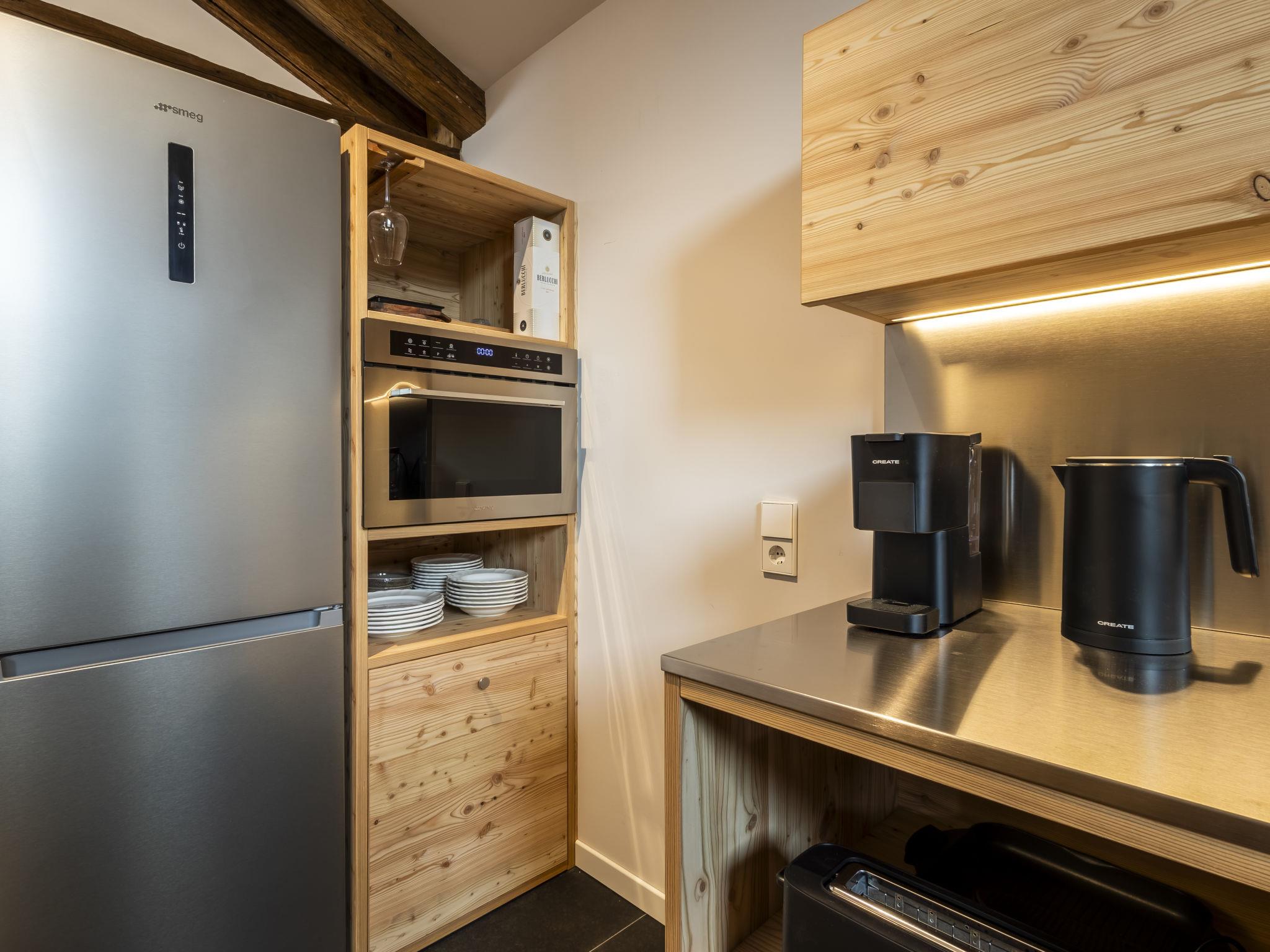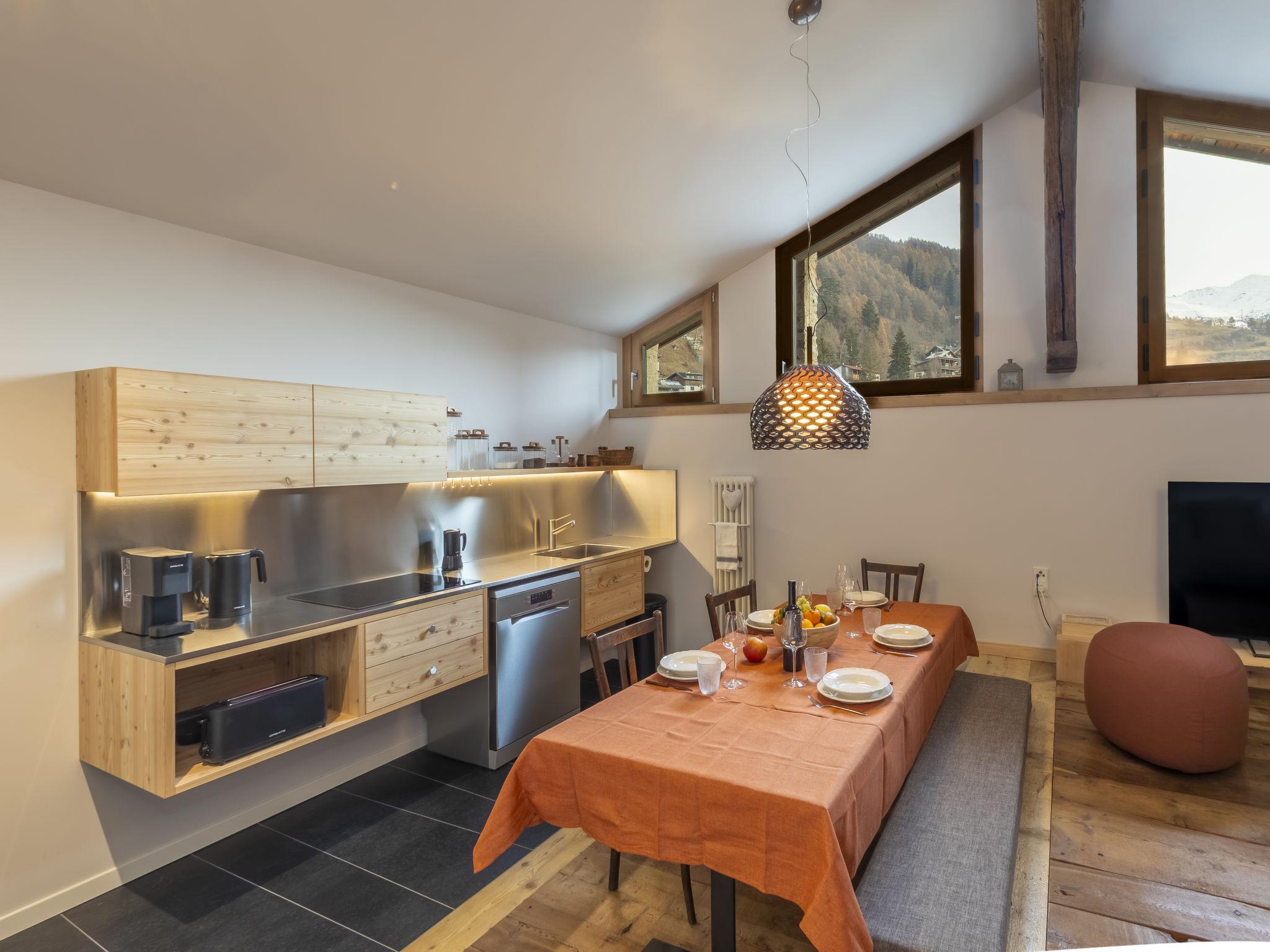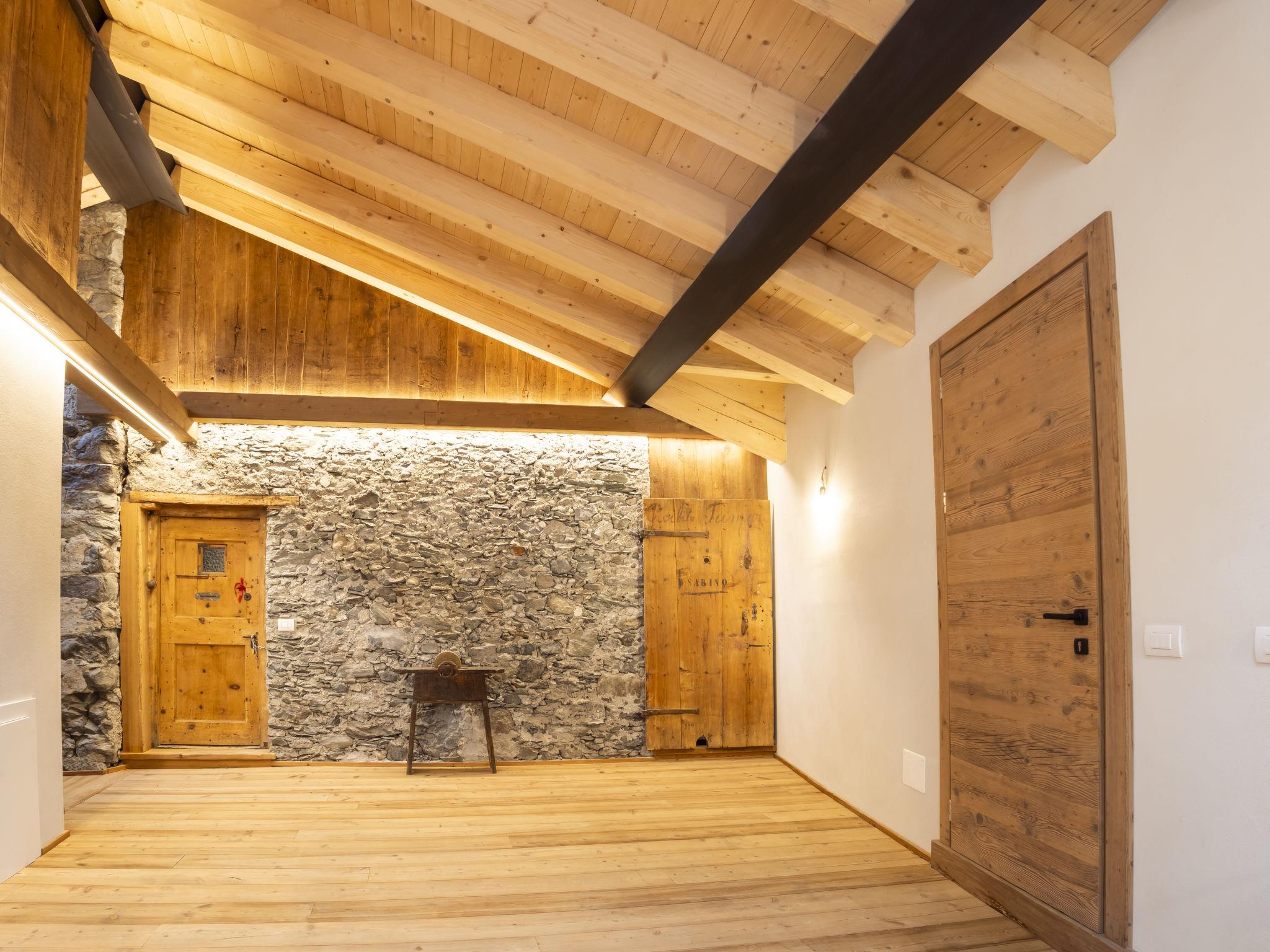 3-room apartment 80 m2 on 2 levels on 3rd floor, east facing position. Spacious and bright, partly with sloping ceilings, fully renovated in 2025, stylish and wooden furniture furnishings: entrance hall. 1 large room with 1 bed, 1 double bed and Scandinavian wood stove (only for decoration). 1 room with 2 beds. Bathroom. Upper floor: (steep stair) large living/dining room with sloping ceilings with panoramic window with dining table and TV. Kitchenette (dishwasher, 4 induction hot plates, toaster, kettle, freezer, electric coffee machine, Capsules for coffee machine (Nespresso) free, combination microwave). Shower/bidet/WC. Heating. Parquet floors, natural stone floors. Panoramic view of the mountains. Facilities: washing machine, dryer, children's high chair, baby cot, hair dryer. Internet (WiFi, free). Please note: suitable for families. Non-smokers only. Smoke alarm, fire extinguisher, no lift. IT014009C2FNK2AX6Q