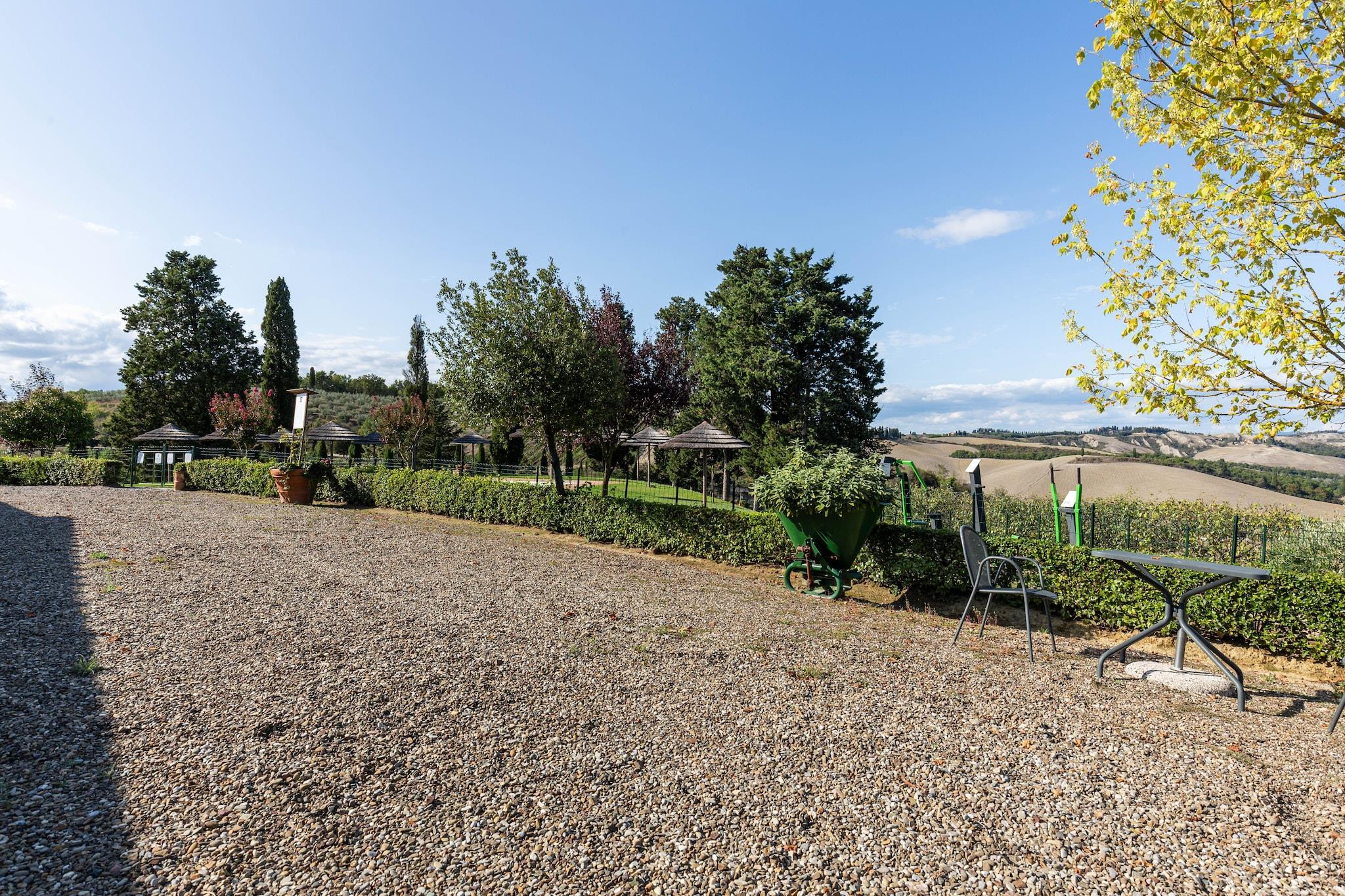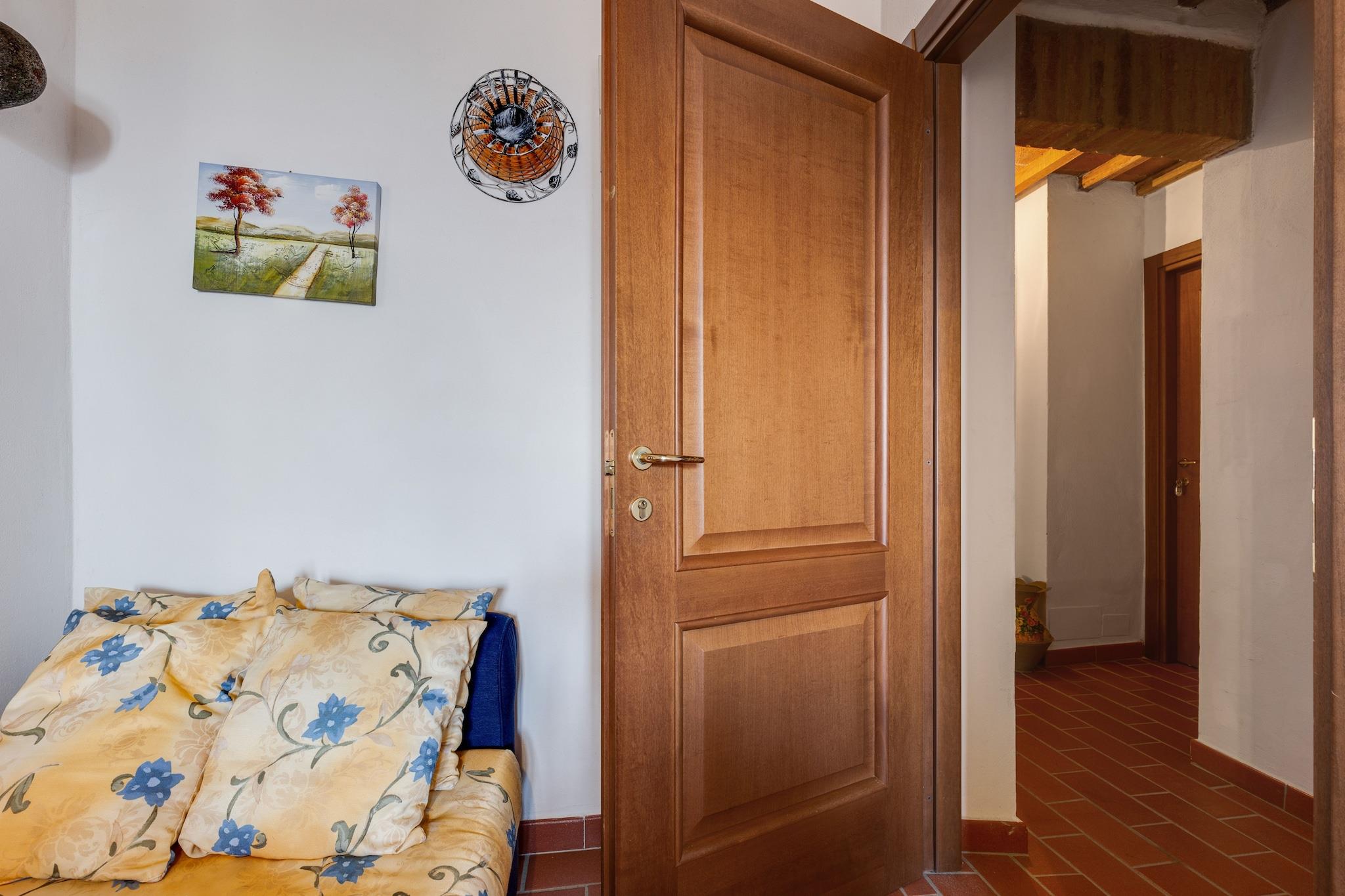 Dette rustikke bondehus ligger i Buonconvento, i et særligt miljø med en rig historie, kunst og traditioner. Det er ideelt for en lille familie og har en fælles swimmingpool til at tage en forfriskende dukkert på en varm sommerdag. Huset har udsigt til den smukke udsigt over landskabet. Byens centrum og restauranter ligger 4 km fra stuehuset, perfekt til at tilbringe aftenen. Den lokale købmand ligger 6 km fra opholdet. Dette er en lejlighed på første sal uden balkon og elevator. For at nå det, skal du klatre 14 trin, på grund af hvilket det ikke er egnet til personer med mindre mobilitet. En have med et udendørs bord i fælles område med andre familier inviterer dig til at nyde eftermiddagste. Der er et bordtennisbord til at holde voksne beskæftiget, mens børn har legeredskaber til deres rådighed. Der er en børneseng, mens aircondition ikke er tilgængelig. det er muligt, at det også kan være varmt om natten på grund af beliggenheden. Der er ingen restaurant, morgenmad kan bestilles for 7 euro per person. Indtjekning begynder fra kl. 16.00 til 19.00, og udtjekning er fra kl. 8.00 til 10.00.