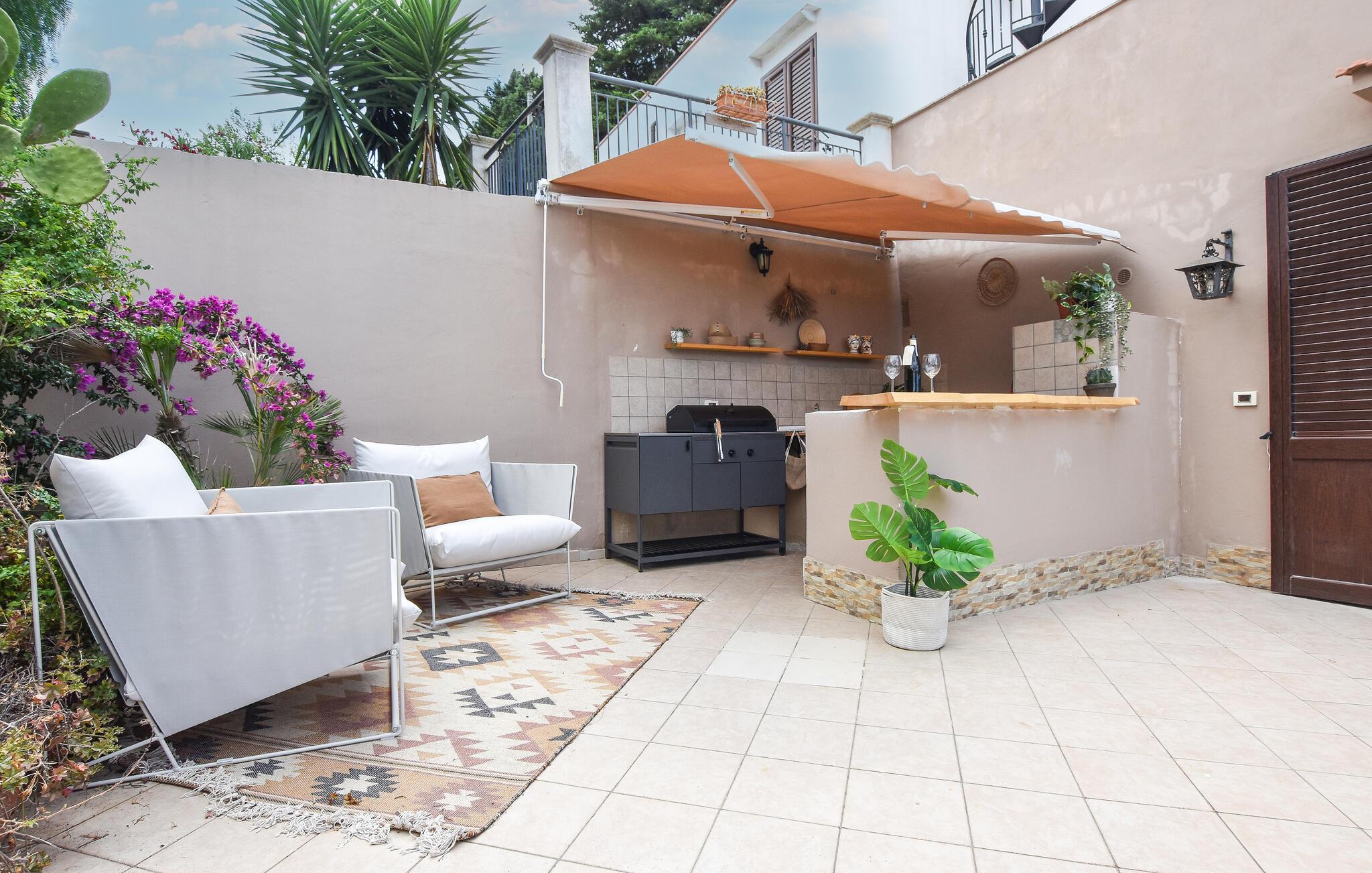 Dette hyggelige feriehus, ikke langt fra Siciliens nordkyst, lægger op til afslappende dage og uforglemmelige solnedgange. Føl jer hjemme, mens I tilbereder lækre pastaretter og nyder harmoniske måltider ved spisebordet. Fordyb jer i en god bog i den hyggelige stue eller tilbring tid med familien under en sjov spilleaften.