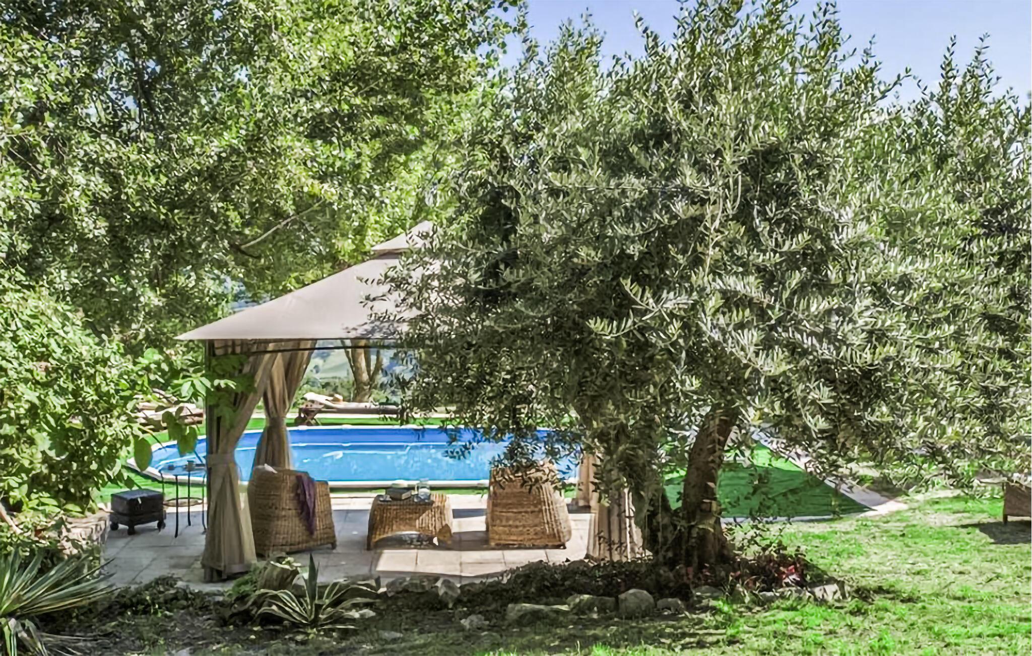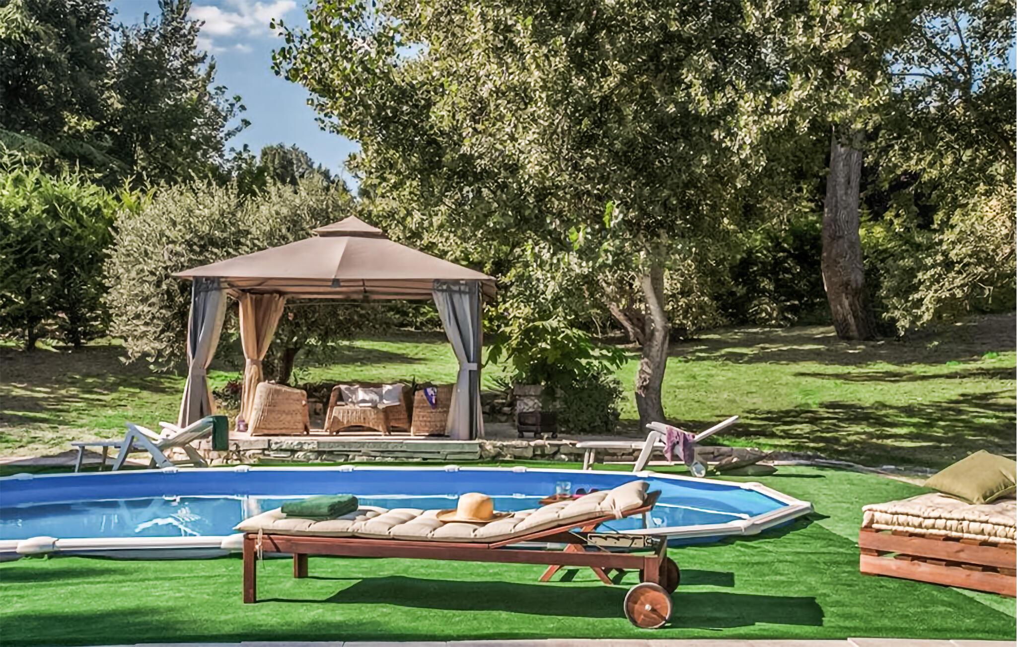 Den store, idylliske have tilbyder afsondrede, skyggefulde steder til et eftermiddagsglas vin samt en pool, hvor I kan snuppe en frisk dukkert, når I har lyst. Lad op på en liggestol og fordyb jer i jeres ferielæsning på komfortable havemøbler.