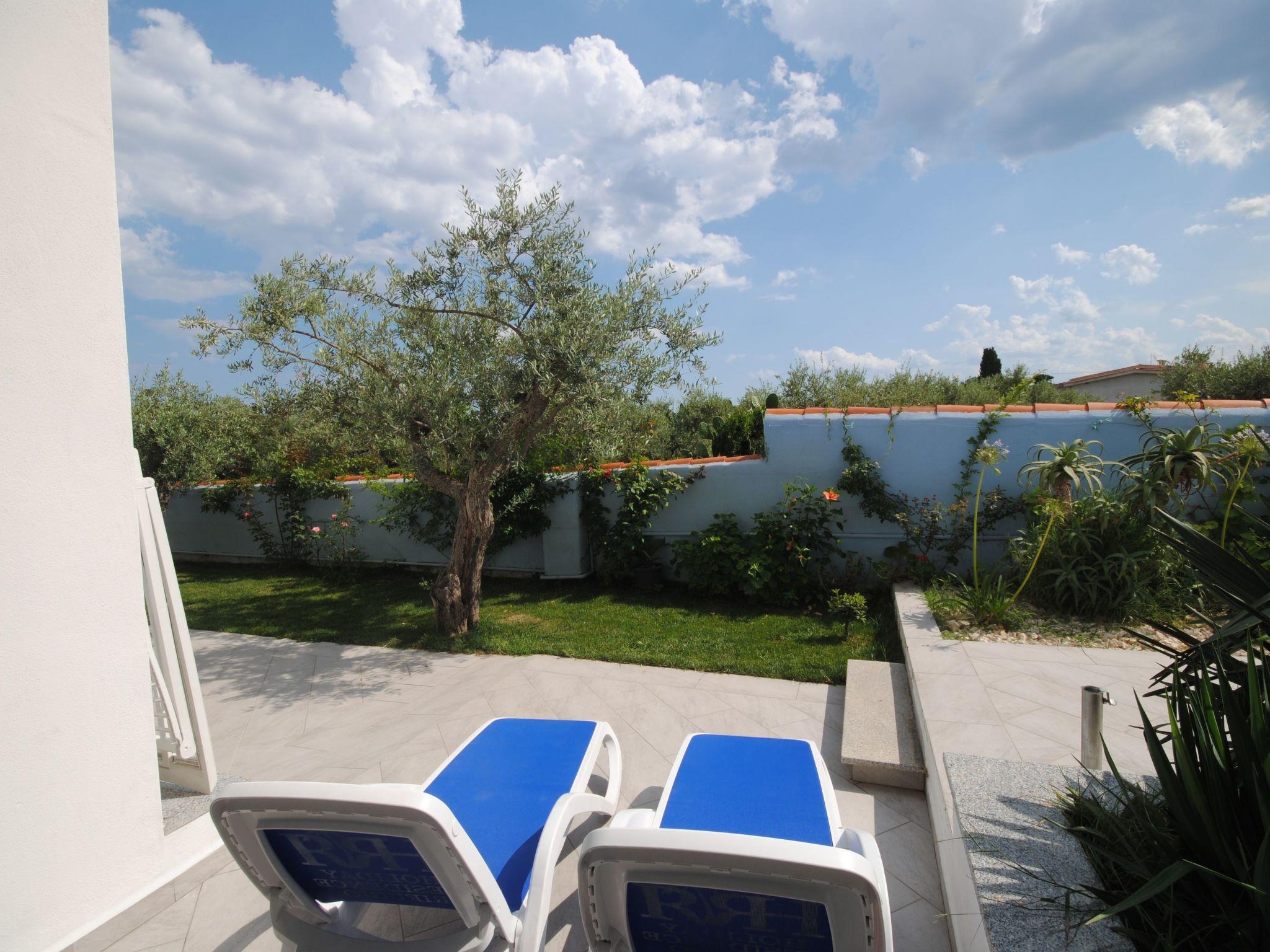 2-room flat for 2 - 3 adults or 2 adults and 2 children Ground floor with 30 m² garden veranda overlooking the olive grove and mountains. New with screen for even more privacy. 1 bedroom with double bed, bathroom (shower/WC). Living room/kitchen with double sofa bed, inside 36m² air conditioning/heating, fully equipped new kitchen, fridge, freezer, gas hob, oven, washing machine in common room, tastefully furnished rooms, BBQ. INCLUDED IN THE PRICE: air conditioning/heating, car park in the courtyard, WIFI, TV and towels.