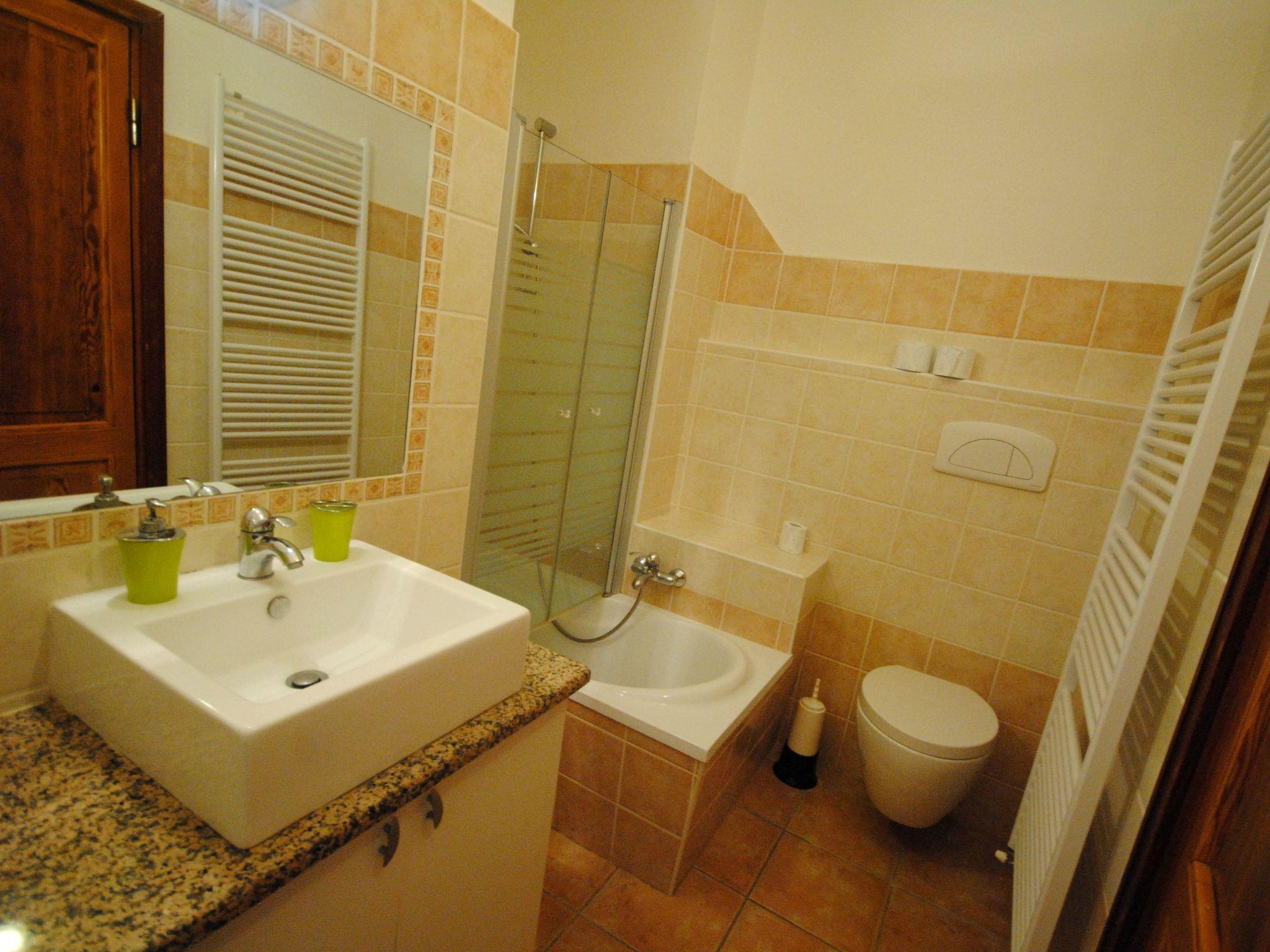 2-room flat 40 m2, for 2 - 3 persons, 1st floor incl. 15m2 veranda 1 bedroom with double bed, can also be set up as single beds Bathroom (shower/WC/bathtub). Kitchen/living room with single sofa bed (width 110 cm) and veranda with garden view. Air conditioning/heating, fully equipped kitchen, fridge, freezer, gas hob, oven, washing machine in common room, tastefully furnished rooms (see photos, subject to change), barbecue. Car park in the courtyard, WIFI, TV and towels.