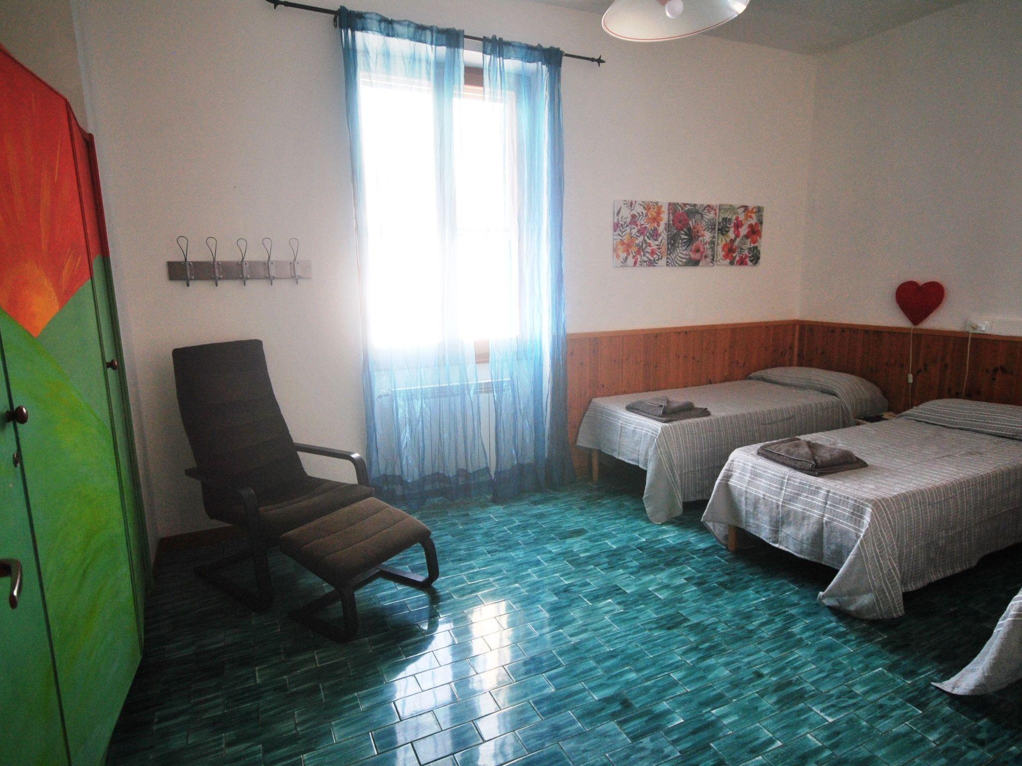 3.5 room flat 66 m², for 3 - 5 persons, 1st floor with 9 m² terrace, 1 bedroom with double bed, 1 large room with 3 beds, kitchen with dining room, living room with sofa and veranda with garden view, bathroom (shower/bathtub/WC). Air conditioning/heating in the parents' room and in the living room/kitchen, fully equipped kitchen, fridge, freezer, gas cooker, washing machine in the common room, tastefully furnished rooms (see photos, subject to change), barbecue. Fan in the children's room. INCLUDED IN THE PRICE: air conditioning/heating, car park in the courtyard, WIFI, TV and towels.
