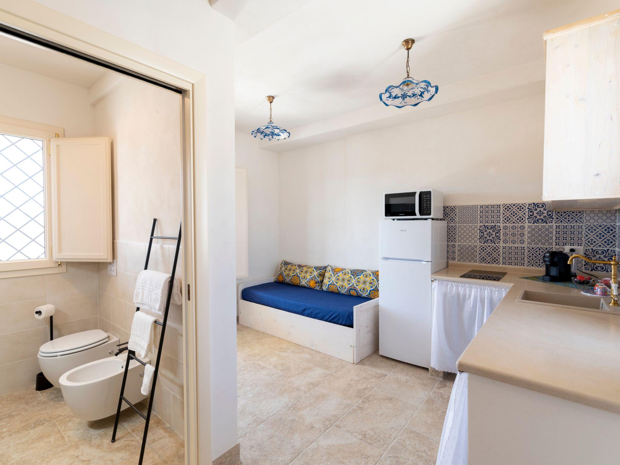 One bedroom apartment of approx. 35 m2 that can accommodate up to 4 people (2 on the sofa bed) consisting of living area (dining and relaxation area), well-equipped country kitchen with dishwasher and microwave, double bedroom, ensuite bathroom, independent air conditioning/heating . A comfortable one/two seater sofa bed in the living area sleeps two more guests. The wooden furniture, many of which are bad antiques, and the Santo Stefano di Camastra ceramics used for the furnishings, the white and blue tones, the natural fabrics and the accessories made by local artisans, nevertheless create a refined and welcoming atmosphere the simplicity of country living that this beautiful home evokes.