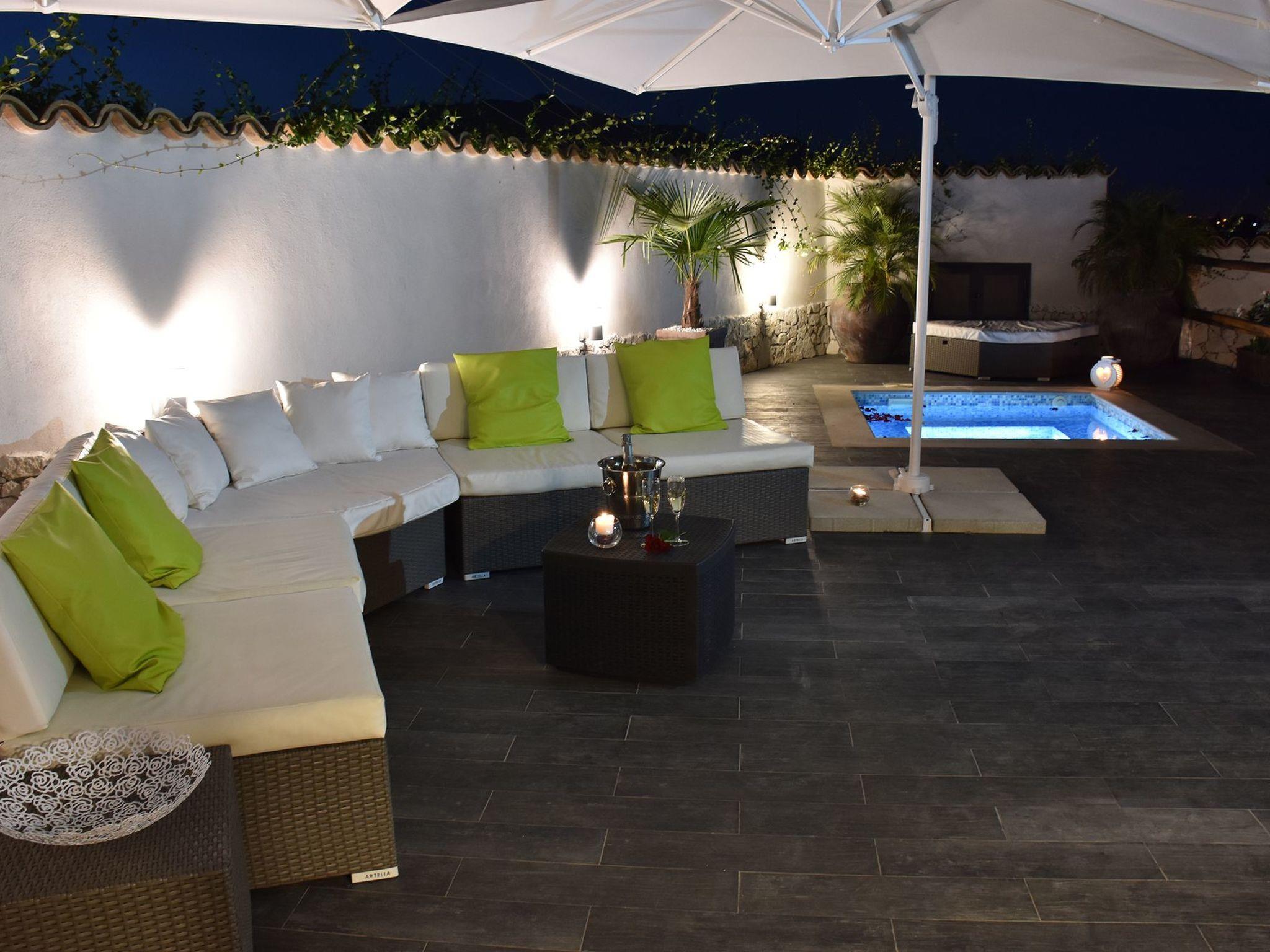 It is divided into several areas: in front of the villa, coming out of the kitchen, is the traditional bbq area with dining table, followed by the children's playground area, the solarium with the relaxation area with jacuzzi and the gazebo with rattan dining table and gas bbq for happy dinners. Going down the stone staircase leads to another terrace that connects the parking area on one side and on the other side leads to the swimming pool area with its park. The whole area is fenced off with stone walls. The park, solarium, pool area and walkways are all equipped with an automated lighting and irrigation system. The pool area is closed from 01 December to 01 March each year for maintenance.