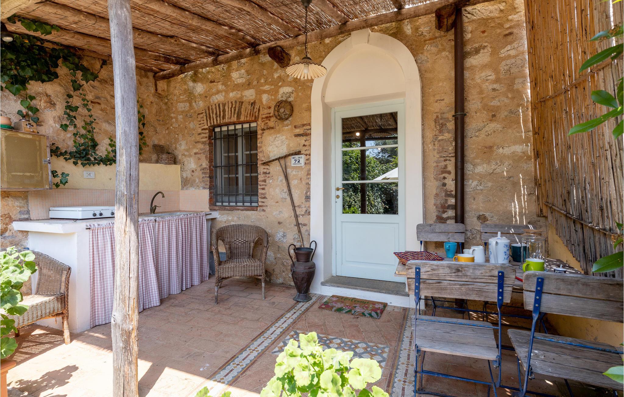 Velkommen til dette indbydende feriehus, som ligger ud til et smukt toscansk landskab og giver jer fantastiske rammer til jeres familieferie. Husets stemning er hjemlig og rustik med solide træmøbler, gamle trælofter og middelhavsfarver, så her får I det hyggeligt. Om aftenen kan I samles omkring spisebordet i køkkenet og gennemgå dagens oplevelser.