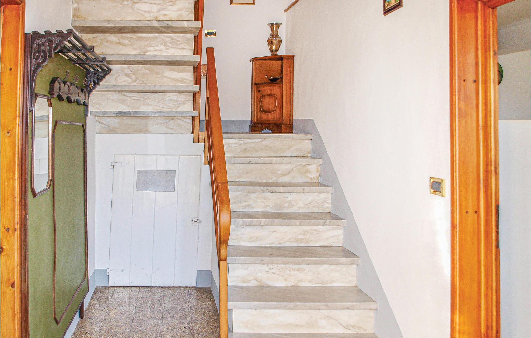 Kun 2 km fra Camaiore ligger dette feriehus på to etager for sig selv. I stueetagen ligger der store køkken og stuen, et badeværelse på mezzaninen. På første sal er der to store soveværelser. I en del af huset er der lagerrum til landbrugsudstyr, som ejeren benytter af og til. Den velplejede have med grill er udstyret, så I kan spise i det fri. Smuk udsigt over det toskanske landskab og delvist til havet. Fra haven er der flere romantiske veje til ejernes vinbjerg. Ejerne er fra tid til anden på stedet for vedligeholdelse. I når nemt de yndede strande af Lido di Camaiore (ca. 10 km), Viareggio (14 km) og Forte dei Marmi (15 km). 44 km til marmorrige Carrara, 10 km til Pietrasanta med marmorskulpturer, såkaldte lille Athen. Naturoplevelser finder I i de dybe huler og store slugter af Antro del Corchia (25 km) i de Apuanske Alpers regionalpark, Italiens største karstsystem med over 70 km underjordiske tunneller og søer. Kunst er der i Lucca (32 km) og Pisa (34 km). Børn kann glæde sig til Pinocchio-parken i Collodi, 52 km.