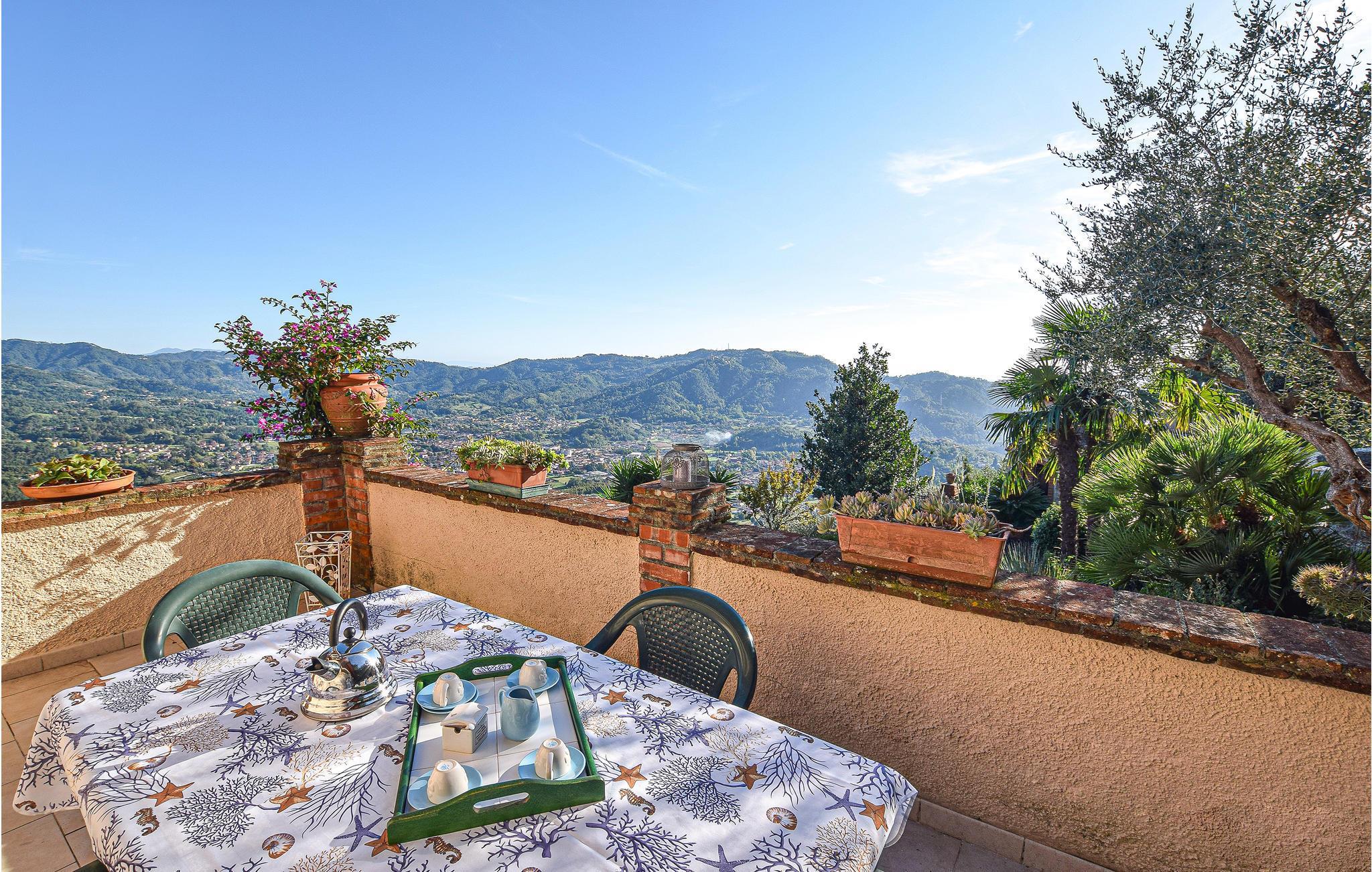 En del af et tofamiliehus i Greppolungo, en lille landsby Camaiore med spektakulær panoramaudsigt over hele dalen og Versiliahavet.