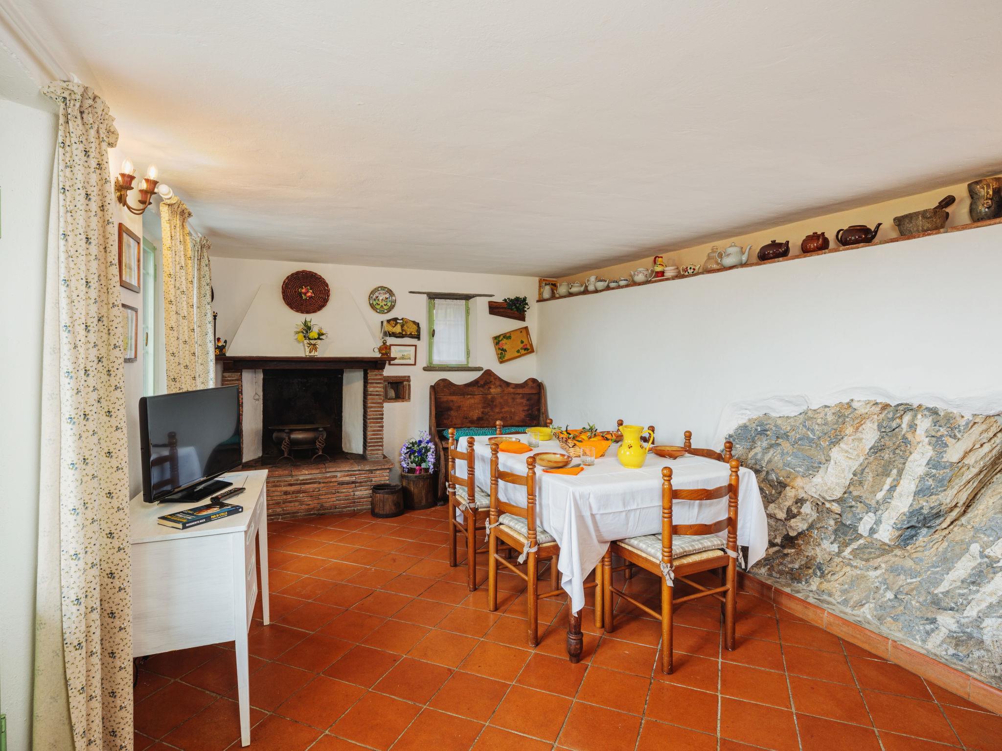 4-room house 100 m2 on 2 levels. Simple and cosy furnishings: living/dining room. Exit to the terrace. Small kitchenette (3 hot plates, toaster, microwave, electric coffee machine). Upper floor: (steep stair), 1 double bedroom with 1 double bed. 1 double bedroom with 2 beds. 1 room with 1 bed. Shower/bidet/WC. No heating option. Terrace 50 m2. Terrace furniture. Panoramic view of the sea, the mountains and the countryside. Facilities: washing machine, iron, mosquito net, hair dryer. Internet (WiFi, free). Parking (1 car). Please note: non-smoking house. Maximum 1 pet/ dog allowed. Smoke alarm, fire extinguisher. IT046005C2DSTRAUIX