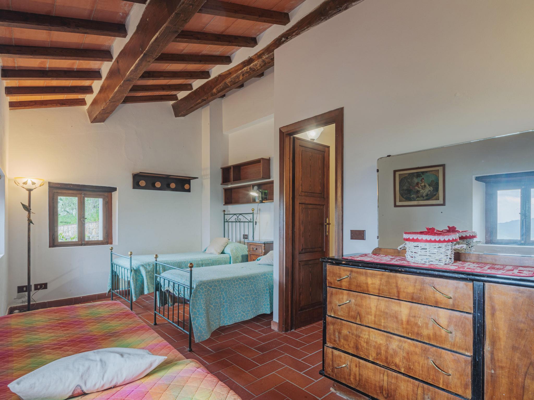 7-room house 150 m2 on 2 levels. Rustic and wooden furniture furnishings: large living room with open-hearth fireplace, dining table and satellite TV. Small, open kitchen (oven, 4 gas rings, toaster, kettle, freezer, electric coffee machine). Shower/WC. Oil heating. Upper floor: (steep stair), 1 room with 1 double bed. 1 room with 1 double bed and shower/WC. 2 rooms, each room with 2 beds (80 cm), bath/WC. (exterior staircase) mezzanine with 1 double bed (160 cm), shower/WC. Small kitchen (oven, 4 gas rings, electric coffee machine) with dining table. Oil heating (extra). Wooden floors. Large terrace roofed, patio, porch. Terrace furniture, barbecue, deck chairs, box-room. Very beautiful view of the mountains, the valley, the forest and Riviera della Versilia. Facilities: washing machine, iron, children's high chair, baby cot for up to 2 year olds. Internet (WiFi, free). Please note: non-smokers only. Maximum 2 pets/ dogs allowed. Smoke alarm, fire extinguisher. No internal connecting door between the separated properties. When there are less than the maximum number of guests staying at the property, the annex will not be available for use. When there are less than the maximum number of guests staying at the property, not all of the bedrooms will be available for use. IT046005C2L37KG2TU