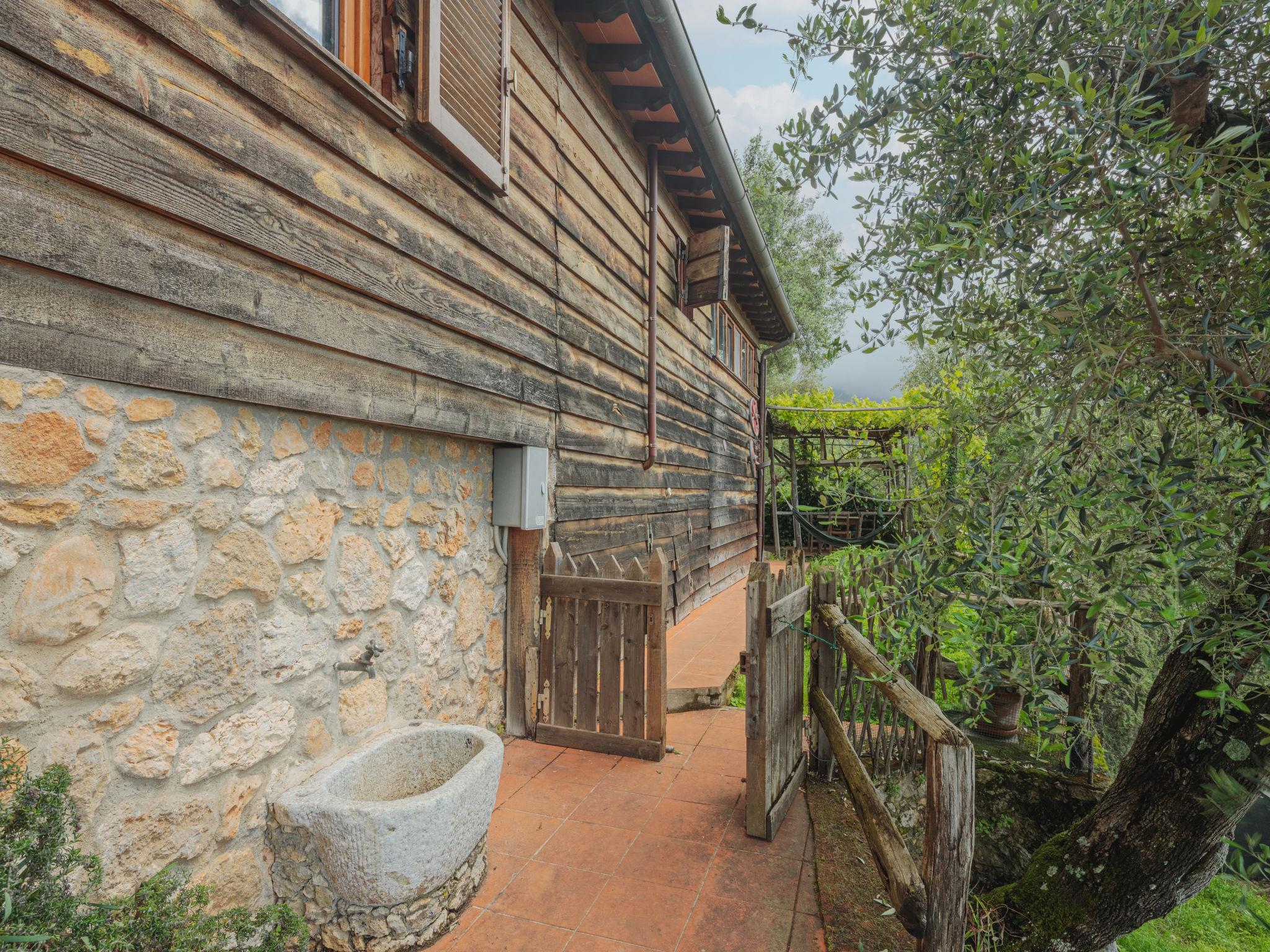 Greppolungo 6 km from Camaiore: Beautiful house "La Grotta", 380 m a.s.l., detached. Property composed of main house and outbuilding above Greppolungo 6 km from the centre of Camaiore, 300 m from the centre of Greppolungo, outside the resort, 41 km from the centre of Pisa, in an elevated position on a slope, 14 km from the sea, 14 km from the beach, in the countryside. Private: terraced garden, 1 ha (fenced) with trees, orchard, swimming pool (8 x 6 m, depth 50 - 175 cm, seasonal availability: 07.May. - 17.Sep.). Outdoor shower, pool house with cooking stove, pool maintenance by the owner/gardener. In the house: central heating system, heating to be paid on the spot (28.Mar. - 30.Oct.), heating available only from 31.Oct. - 27.Mar.. 300 m footpath to the house. Public parking 300 m. Grocery 4 km, restaurant 300 m, bus stop, railway station "Viareggio" 16 km, sandy beach "Lido di Camaiore" 14 km. Nearby attractions: Forte dei Marmi 21 km, Lucca 39 km, Collodi (Pinocchio Park) 57 km, Corchia Park 31 km, Riomaggiore (5 Terre) 81 km, Firenze 124 km. Well-known lakes can easily be reached: Torre del Lago 24 km, Lago di Massaciuccoli 30 km. Hiking paths: Grotta dell´Onda (Casoli) 9 km. Please note: car recommended.