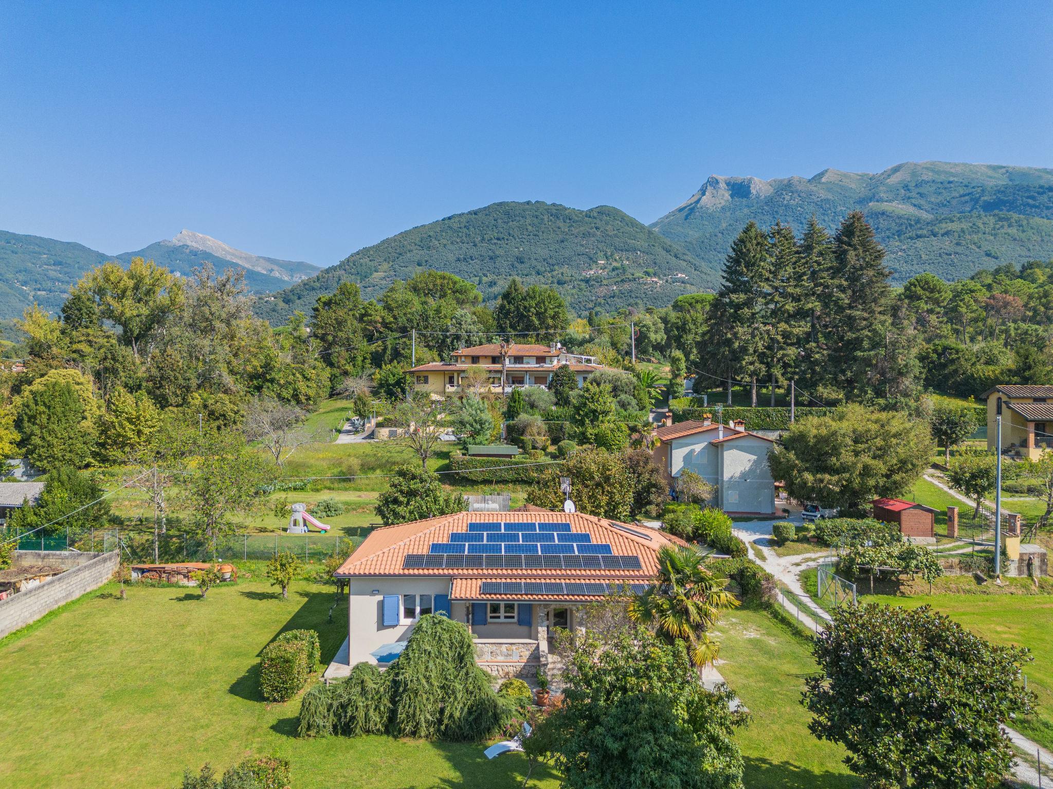 Single-family house "Giardino del Sole", renovated in 2023. 9.4 km from the centre of Lido di Camaiore, on the outskirts, 1 km from the centre of Camaiore, 13.1 km from the centre of Viareggio, 9.4 km from the sea, 9.4 km from the beach, in the countryside. Private: natural state property 1'000 m2 (fenced) with wildlife garden. In the house: central heating system, heating to be paid on the spot (20.Mar. - 30.Oct.), heating available only from 31.Oct. - 19.Mar.. Parking on the premises. Grocery 650 m, supermarket, restaurant 1 km, bus stop 400 m, railway station "Viareggio" 11.8 km, sandy beach "Lido di Camaiore" 9.4 km. Nearby attractions: Forte dei Marmi 17 km, Pietrasanta 10 km, Lucca 25 km, Pisa 33 km, Carrara Cave Fantiscritti 46 km, Riomaggiore 5 Terre 79 km. Well-known lakes can easily be reached: Torre del Lago 18 km, Lago di Massaciuccoli 27 km. Hiking paths: Antro del Corchia Levigliani 29 m, Grotta all´Onda Casoli 12 km. The owner does not accept any youth groups. The property is under video surveillance, the cameras are deactivated when guests are on site.