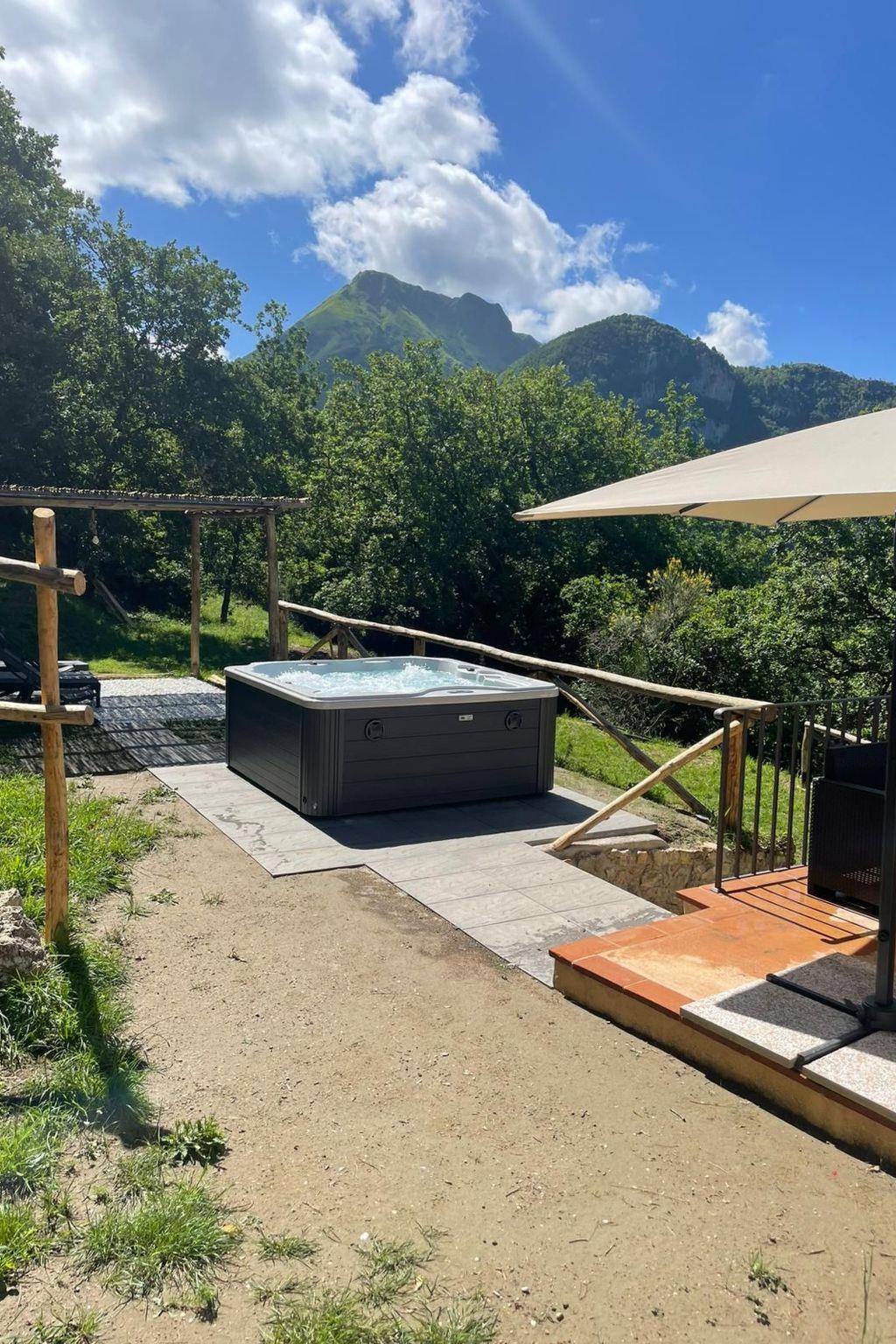 The route is uphill, but when you reach the destination you will be rewarded with a beautiful holiday location. The property is surrounded by an olive grove and guests can enjoy the peace and quiet under the pergola or on the terrace where the hot tub is located.