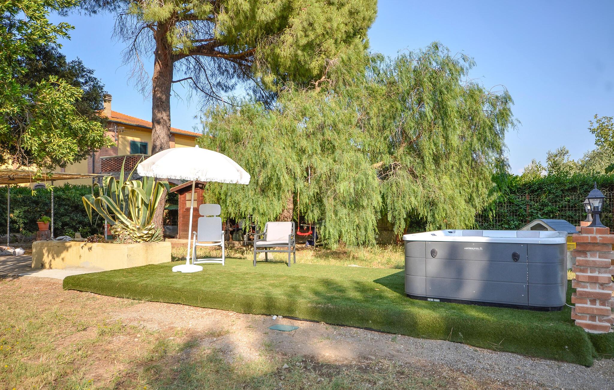 Lad børnene nyde de charmerende legeområder i den ugenerte have, mens I fordyber jer i jeres ferielæsning på en liggestol, slapper af i spabadet eller serverer et lækkert måltid under åben himmel.