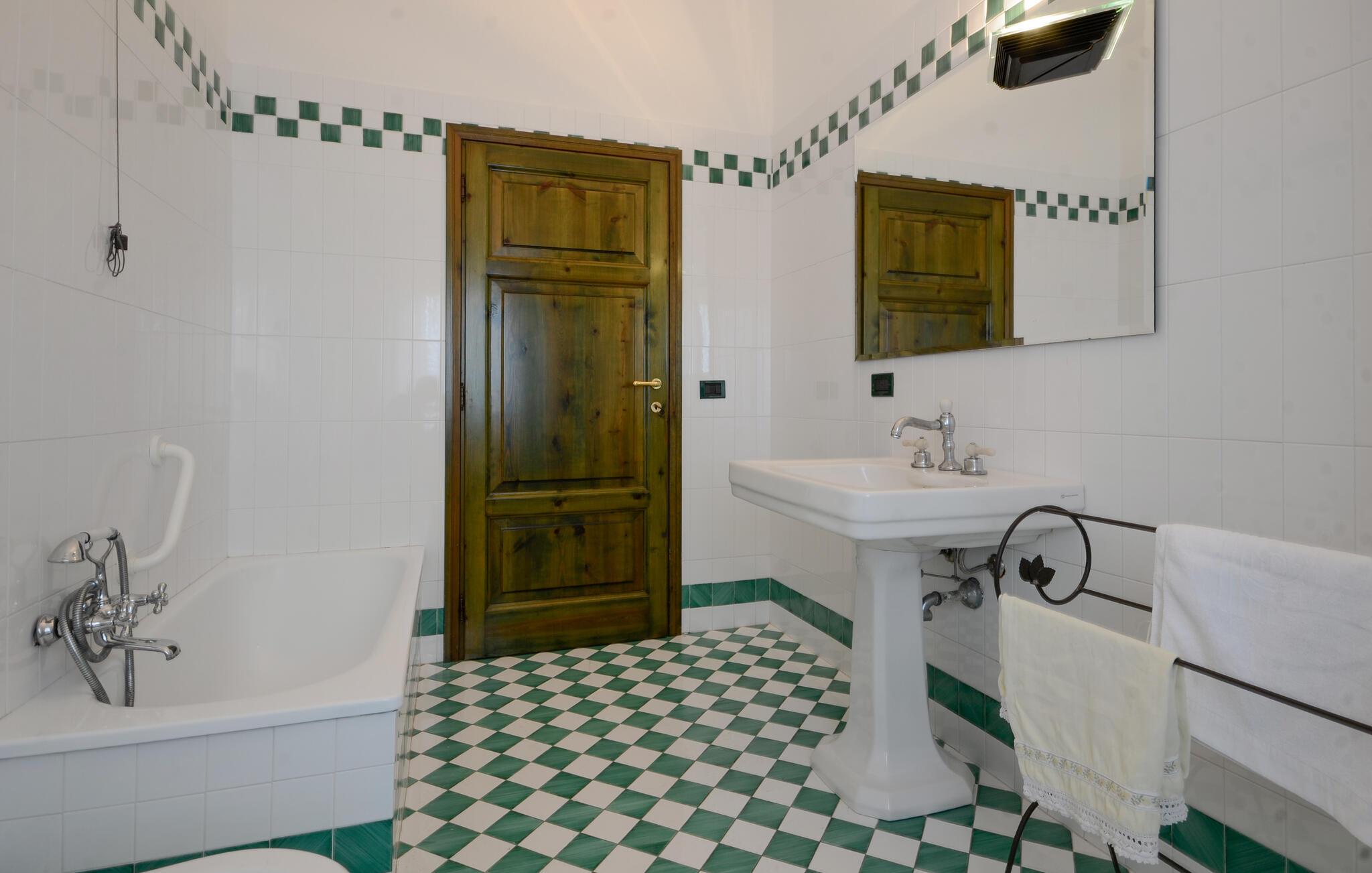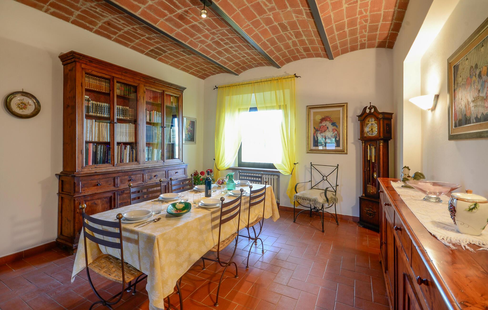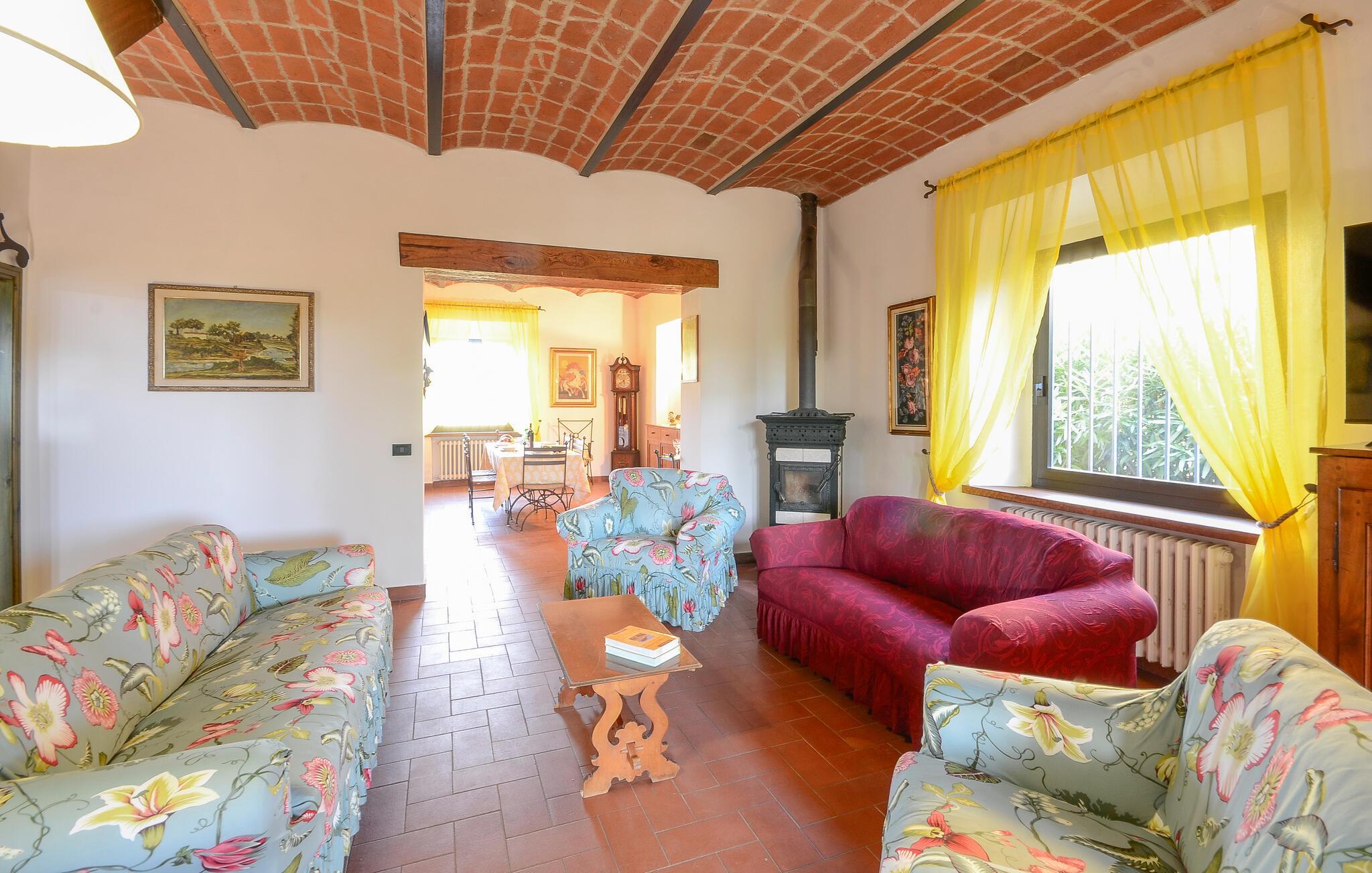 Denne kærligt renoverede ejendom kan prale af et hyggeligt og rummeligt interiør – ideelt til en dejlig ferie med hele familien. Lav lækre pastaretter sammen, snak over hyggelige måltider, og hold sjove spilleaftener i de indbydende sofaer.