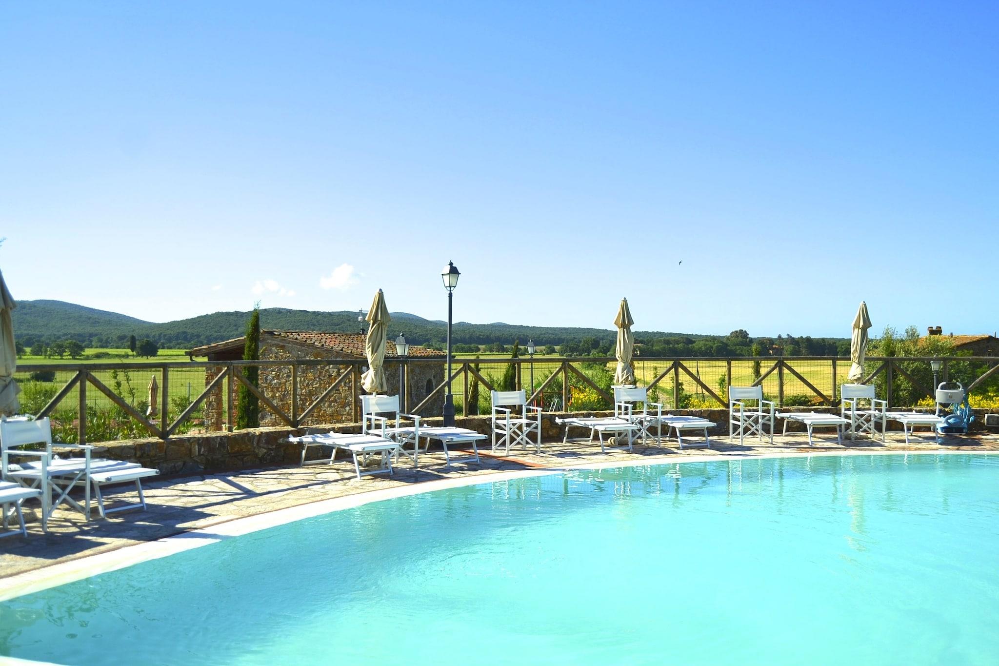 Dette smukke hus er en del af en landsby beliggende på grænsen mellem den etruskiske kyst og Maremma, ikke langt fra de pragtfulde strande i Baratti og San Vincenzo. Fra denne position kan du nyde roen i landskabet, få kilometer fra havet. Borgo er beliggende på bakken, den er bygget i traditionel sten, fuldstændig og omhyggeligt renoveret med bevarelse af den indbydende antikke stil, men tilbyder alligevel alle de nødvendige bekvemmeligheder for at tilbringe en vidunderlig ferie. Interiøret i lejlighederne er også blevet renoveret i den varme toscanske stil, med træbjælker og alt møbleret og udstyret til vores gæsters komfort. Til gæsternes rådighed: swimmingpool, privat have med grill, aircondition, tennisbane og bordtennisbord, høj stol og seng til børn, parkering. Du kan starte din dag med en morgentur gennem centrum, som ligger 3 km fra ejendommen. Der er en restaurant 1 km derfra, og det nærmeste supermarked ligger 3 km derfra.Her kan du score en lækker morgenmad om morgenen.Der er også cykler til rådighed for at udforske området. Havet ligger i en afstand af 7 km, hvis du vil tilbringe en dag ved bugten eller se smukke solnedgange. Der er 2 soveværelser med dobbeltsenge, det ene er på en mezzanin åben ud til stuen og det andet soveværelse med dobbeltseng. Wifi er gratis, kun et fælles område til swimmingpool og solarium er tilgængeligt Den nærmeste lufthavn ligger 104 km fra ejendommen.
