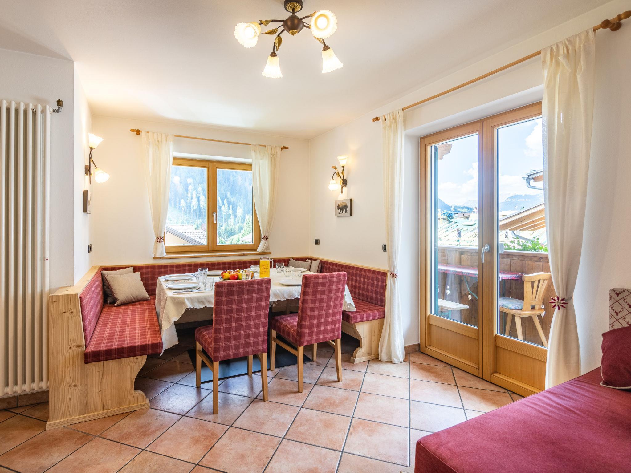 "Cesa Soraruf", 5-room apartment 100 m2 on 2nd floor. Bright, renovated in 2025, cosy furnishings: living/dining room with dining nook and satellite TV. Exit to the balcony. 1 room with 2 beds and satellite TV. Exit to the balcony. 2 double bedrooms, each room with satellite TV. 1 room with 1 bed (80 cm), 1 double bed. Exit to the balcony. Small kitchen (oven, dishwasher, 4 ceramic glass hob hotplates, kettle, microwave, freezer, electric coffee machine). Exit to the balcony. 3 showers/bidet/WC. Gas heating. 5 balconies. Balcony furniture. Beautiful view of the mountains. Facilities: washing machine, children's high chair, baby cot. Internet (WiFi, free). Parking. Please note: non-smokers only. IT022036C2HPUK9EGN