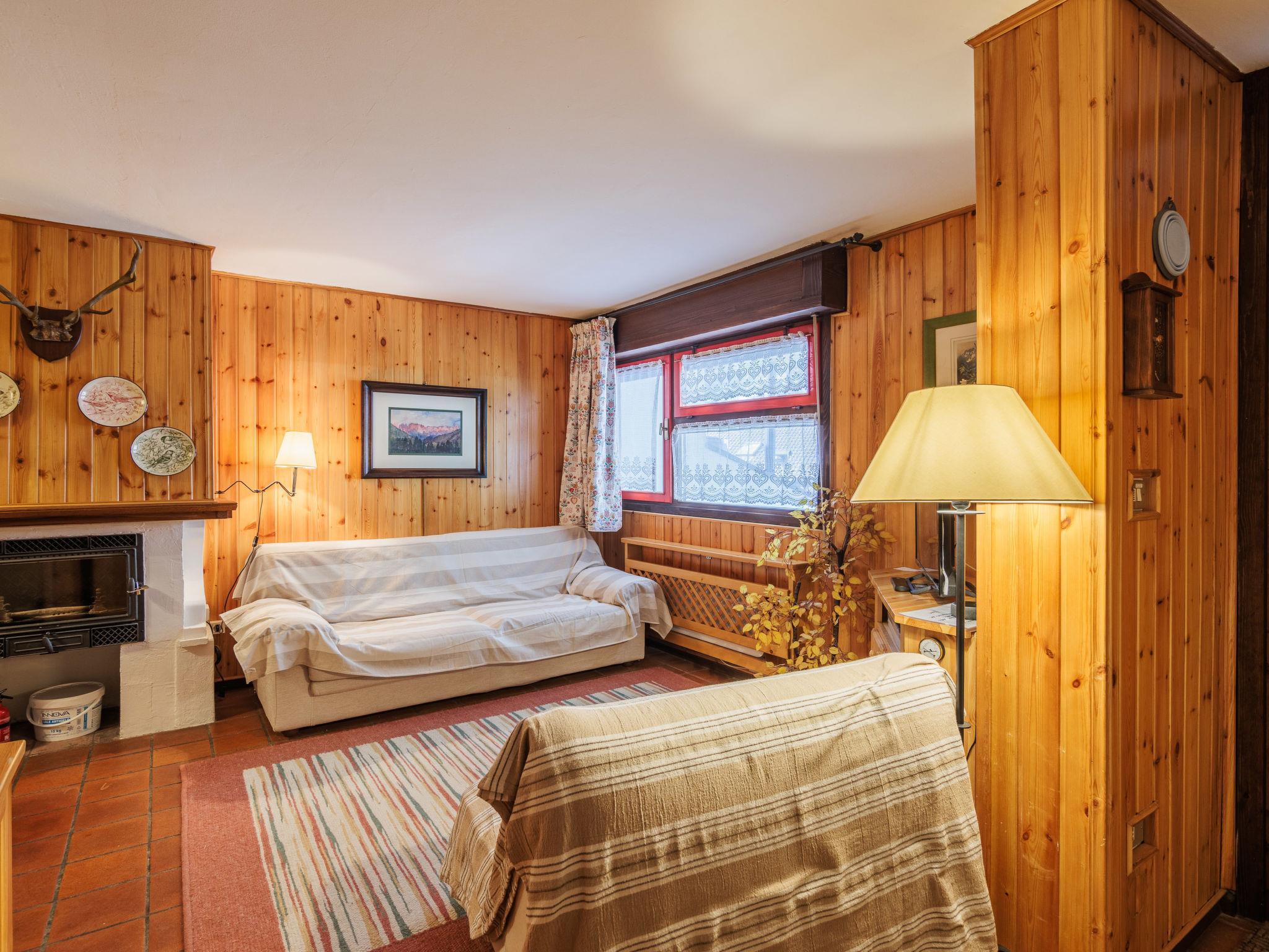 "Boiserie", 3-room apartment. Bright, with sloping ceilings, comfortable and cosy furnishings: living/dining room with open-hearth fireplace (only for decoration), TV and flat screen. Exit to the garden. Open kitchen (dishwasher, 4 induction hot plates, microwave). Upper floor: 1 double bedroom with 1 double bed. Exit to the veranda. 1 room with panoramic window with 1 x 2 bunk beds. Bath/bidet/WC. Boiler. Heating available only from 01.12. to 01.05. Small garden. Very beautiful view of the mountains. Facilities: washing machine, hair dryer. Garage on the property (1 car). Please note: non-smokers only. Private entrance, fire extinguisher. IT022036C2WYQASKEF