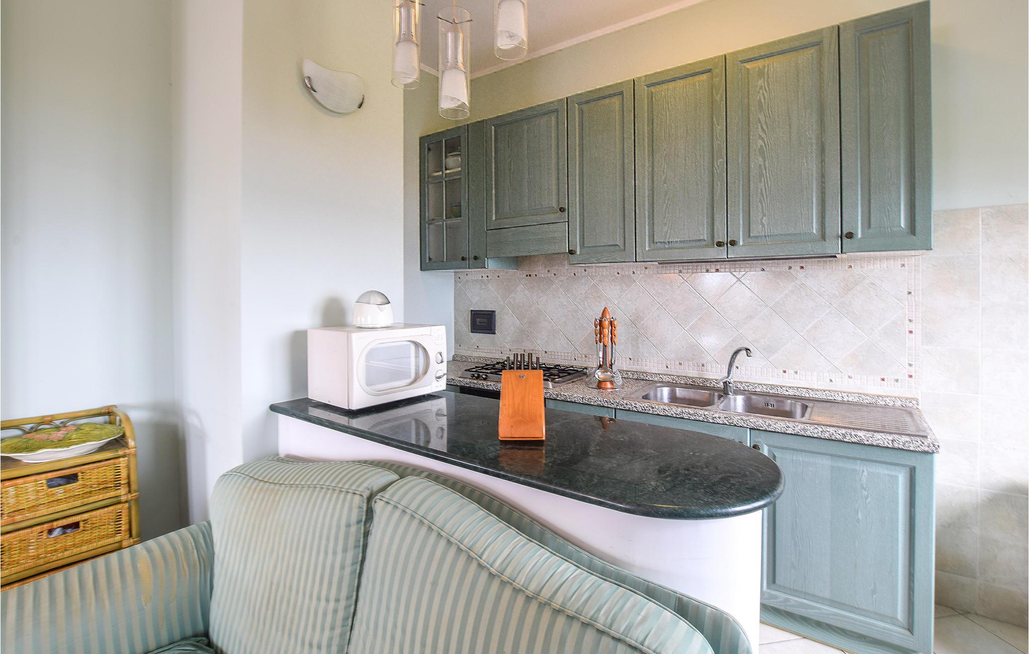 Træd ind indenfor i denne rustik ferielejlighed, som ligger på 3. sal i et bygningskompleks. Fra jeres altan kan I lade blikket vandre henover det omkringliggende landskab og havet. Indenfor finder I en stemningsfuld, harmonisk indrettet bolig med komfortable møbler, der inviterer til at tilbringe hyggelige stunder sammen. Hvis I ikke vil køre eller gå til stranden, der er km 1 væk, for en dukkert i havet, har I også adgang til en fælles udendørs pool.