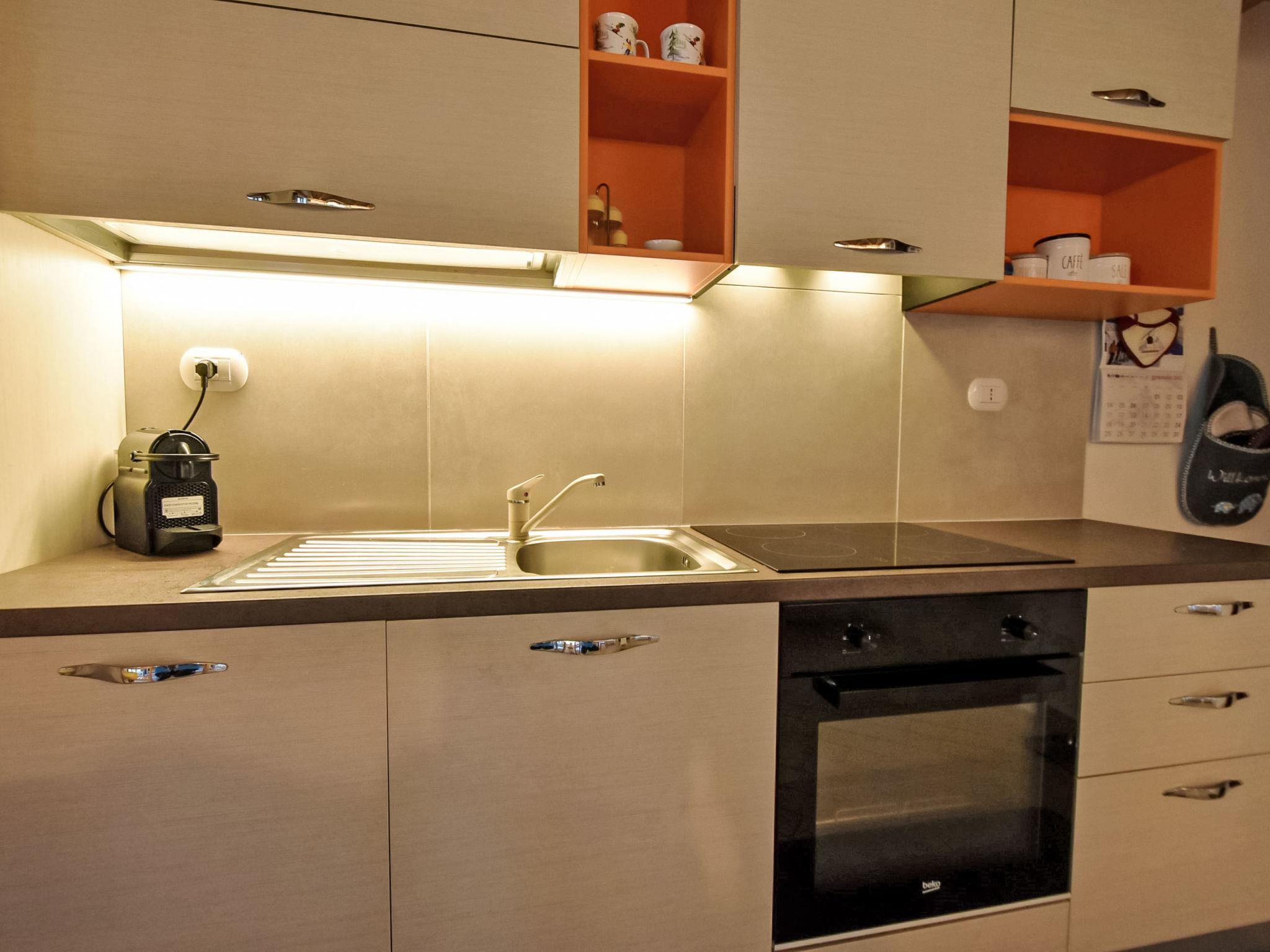 3-room apartment 68 m2 on 1st floor, south facing position. Renovated, comfortable and modern furnishings: large living/dining room with dining table and TV. 1 double bedroom. 1 room with 1 bed and 1 x 2 bunk beds. Kitchenette (oven, 4 induction hot plates, toaster, kettle, microwave, electric coffee machine, Capsules for coffee machine (Nespresso) free). Shower/bidet/WC. Heating. Side view of the mountains. Facilities: washing machine, hair dryer. Internet (WiFi, free). Please note: suitable for families. Non-smokers only. Maximum 1 pet/ dog allowed. Smoke alarm, fire extinguisher. IT014012C2KZAV6TTY