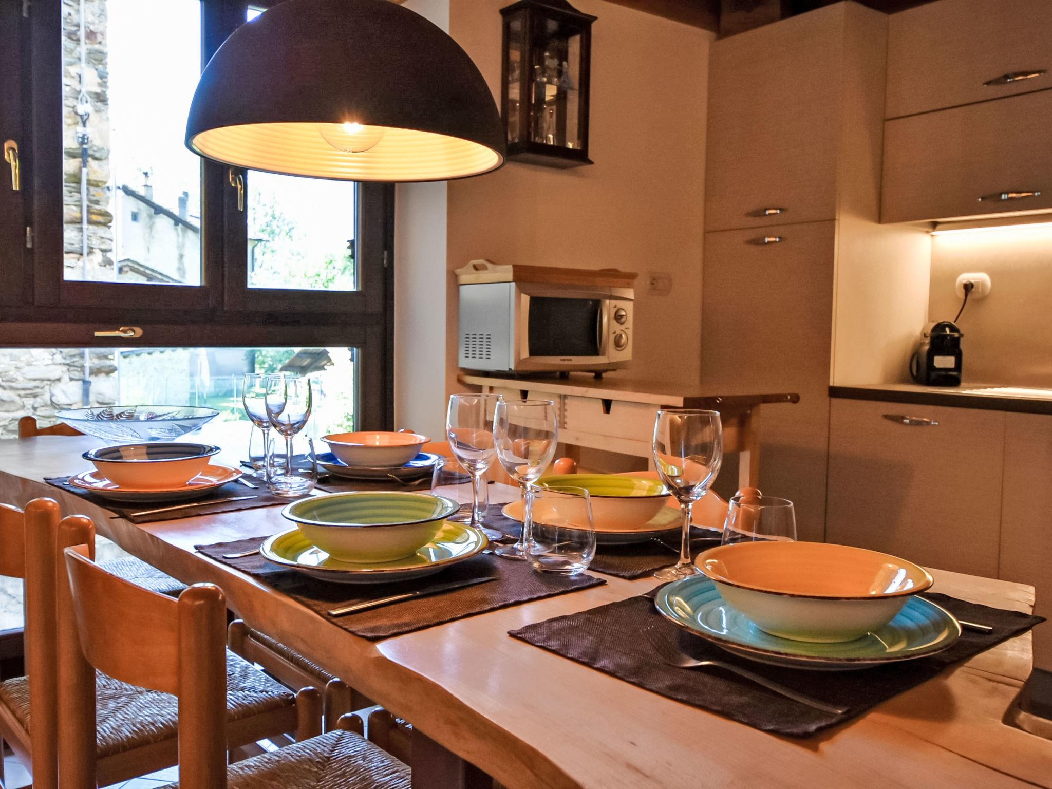 Small, comfortable apartment house "Ai Tini", 1'071 m a.s.l., 2 storeys. 400 m from the centre of Campodolcino, in the residential district, 1.5 km from the skiing area. In the house: central heating system. Public parking 250 m on the road. Supermarket 500 m, restaurant 150 m, bar, café 400 m, bus stop 150 m. Chair lift 1.5 km. Well-known ski regions can easily be reached: Madesimo 7 km, Passo del Maloja (CH) 44 km, Saint Moritz (CH) 60 km. Well-known lakes can easily be reached: Lago di Como 37 km. Hiking paths: Via Spluga, Vie dei Carden, Caurga della Rabbiosa, Sentiero del Belvedere. Please note: Loading and unloading of baggage is possible at the holiday house. Neighbourhood highly sensitive to noise. Quietness and good behaviour expected.