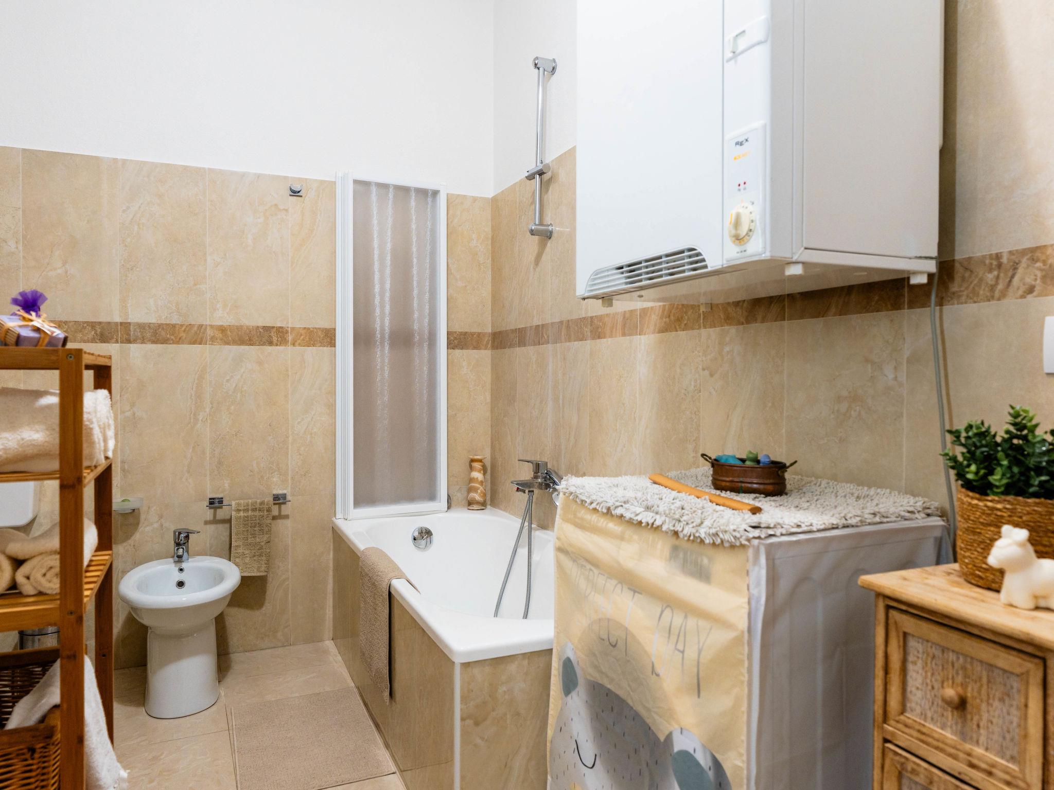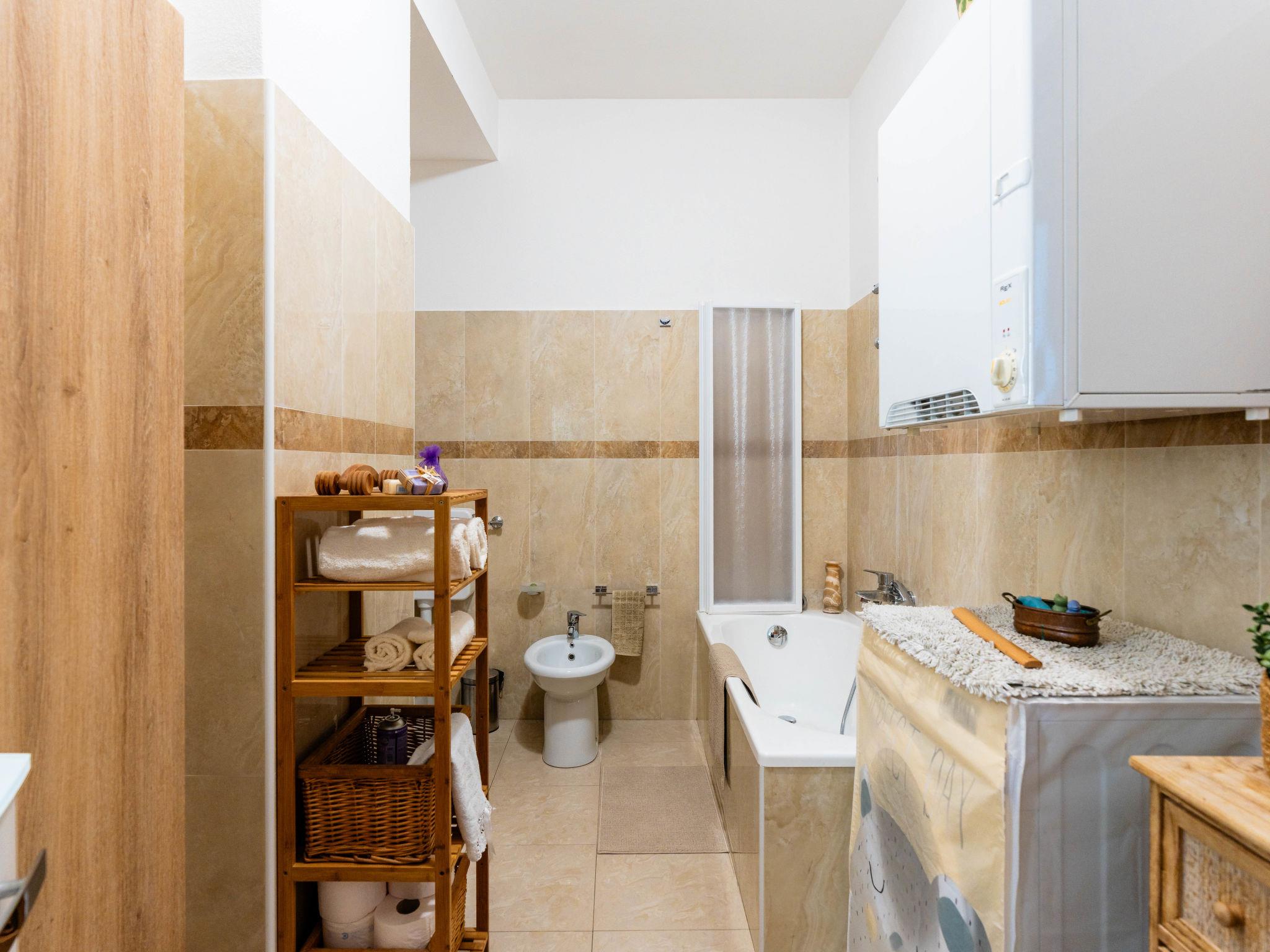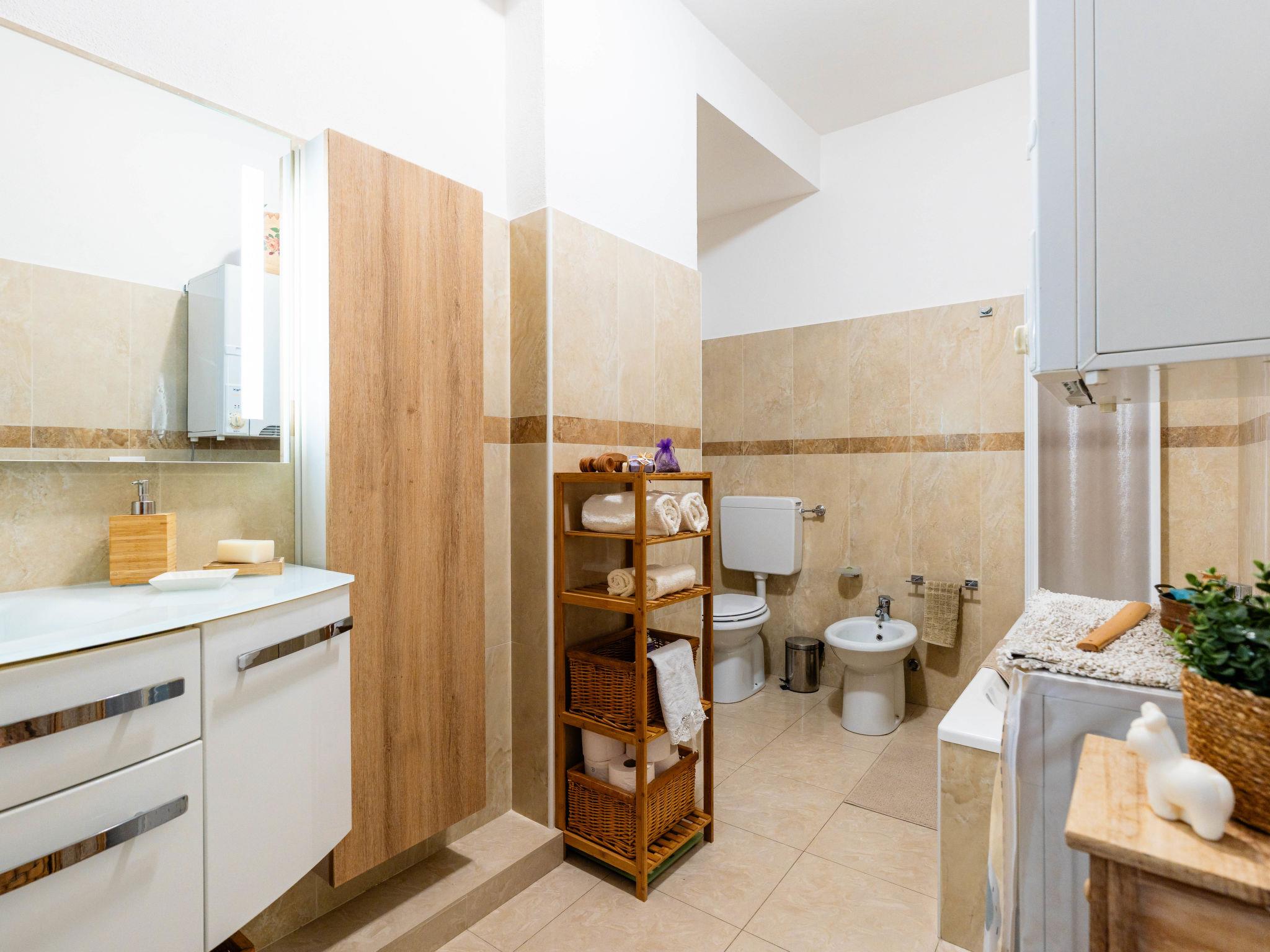 "CaLella", 2-room apartment 70 m2 on 1st floor. Beautiful and cosy furnishings: living/dining room with 2 beds (90 cm, length 200 cm), TV. 1 double bedroom. Exit to the balcony. Kitchenette (oven, dishwasher, 4 gas rings, toaster, kettle). Exit to the balcony. Bath/bidet/WC. Gas heating. Heating available only from 01.11. to 15.04. Balcony. Balcony furniture. View of the resort. Facilities: washing machine, dryer, baby cot for up to 2 year olds, hair dryer. Internet (WiFi, free). Please note: maximum 1 pet/ dog allowed. Smoke alarm, fire extinguisher. IT008011B43IJL8NFI