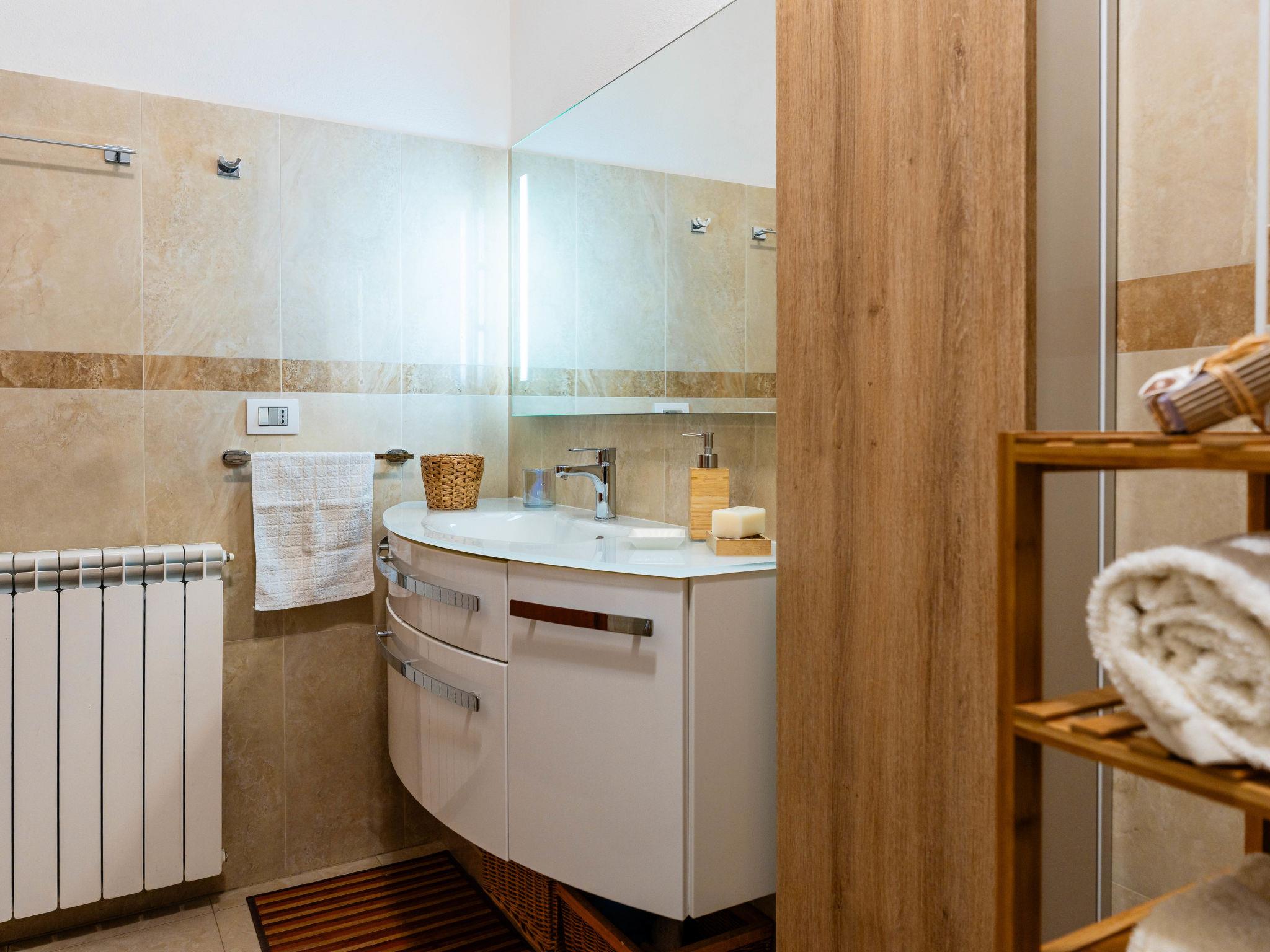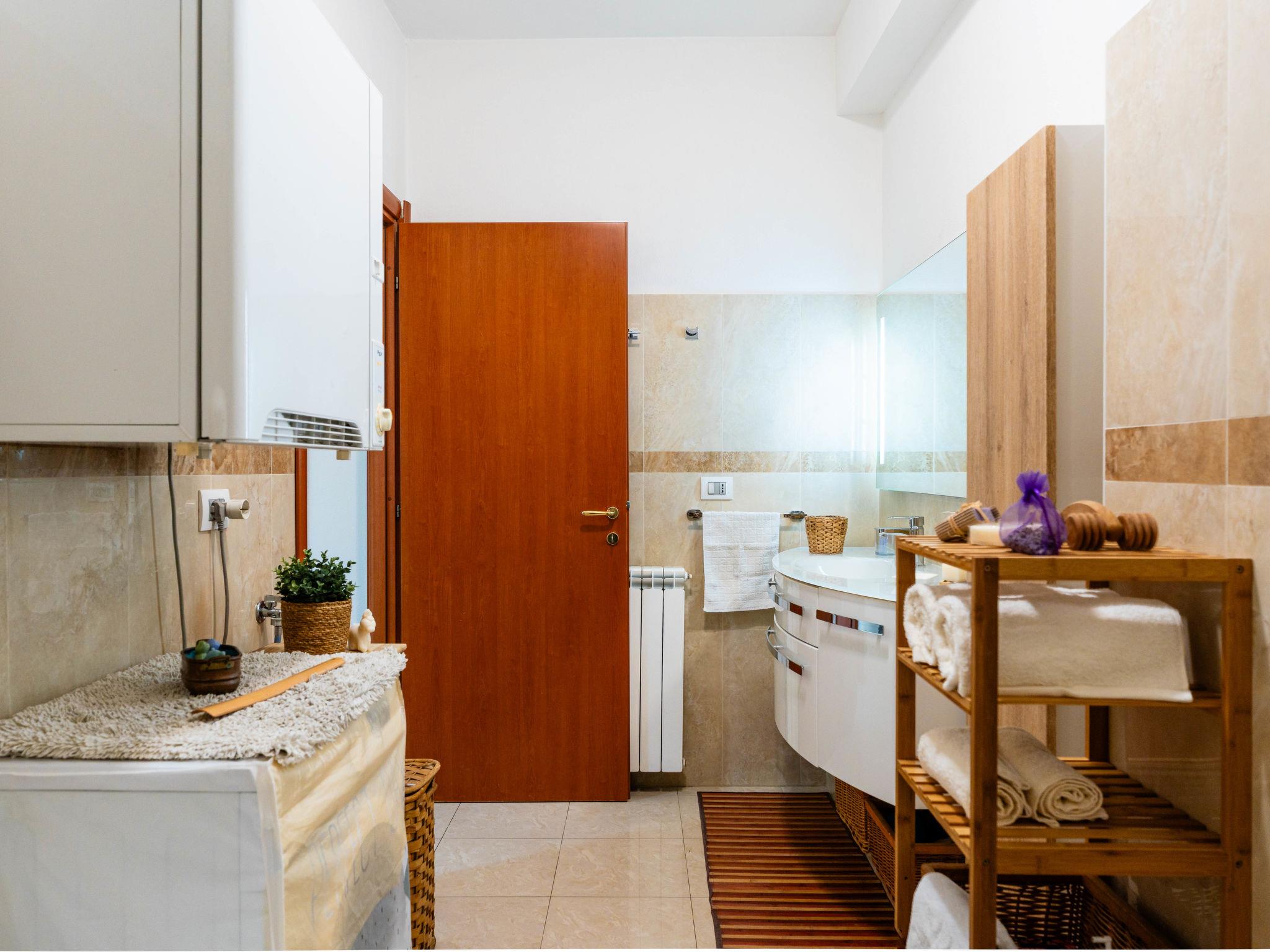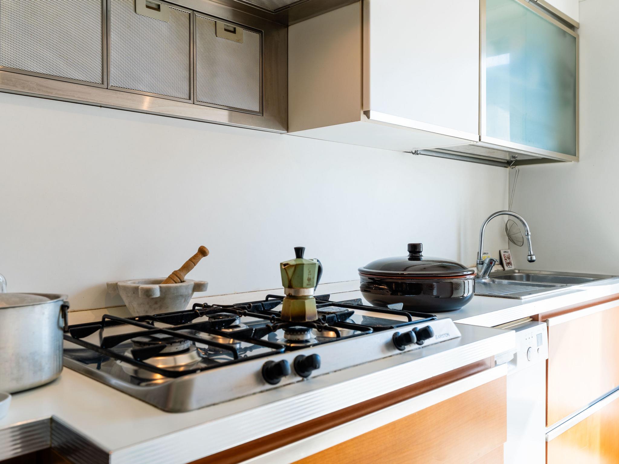 "CaLella", 2-room apartment 70 m2 on 1st floor. Beautiful and cosy furnishings: living/dining room with 2 beds (90 cm, length 200 cm), TV. 1 double bedroom. Exit to the balcony. Kitchenette (oven, dishwasher, 4 gas rings, toaster, kettle). Exit to the balcony. Bath/bidet/WC. Gas heating. Heating available only from 01.11. to 15.04. Balcony. Balcony furniture. View of the resort. Facilities: washing machine, dryer, baby cot for up to 2 year olds, hair dryer. Internet (WiFi, free). Please note: maximum 1 pet/ dog allowed. Smoke alarm, fire extinguisher. IT008011B43IJL8NFI