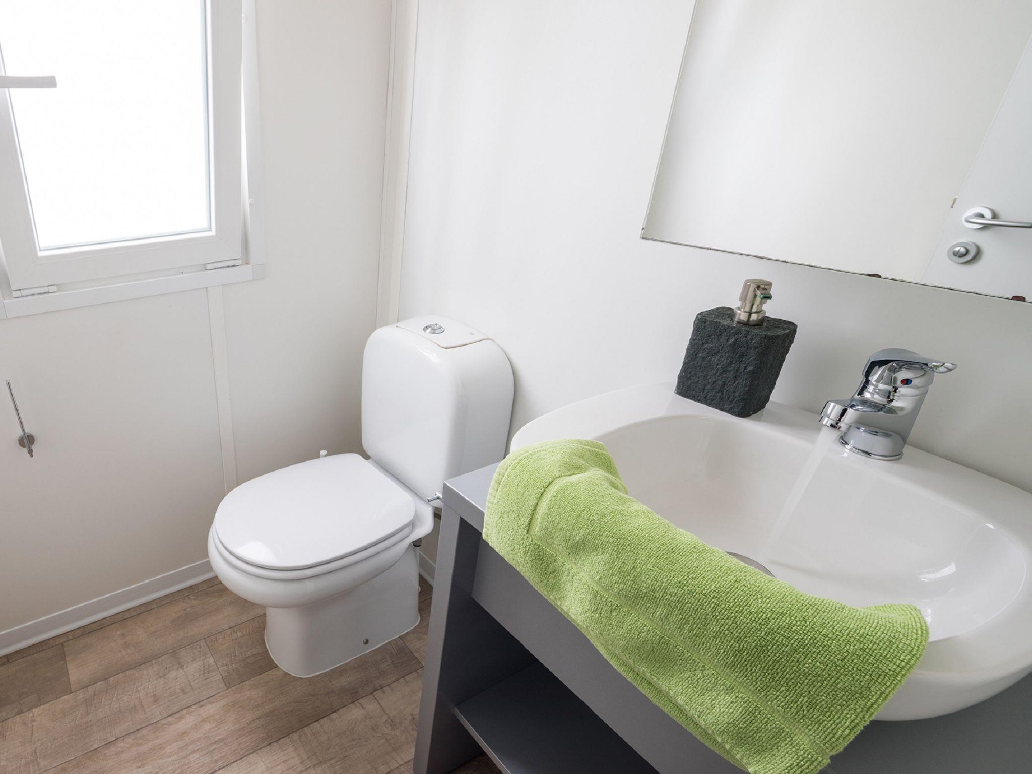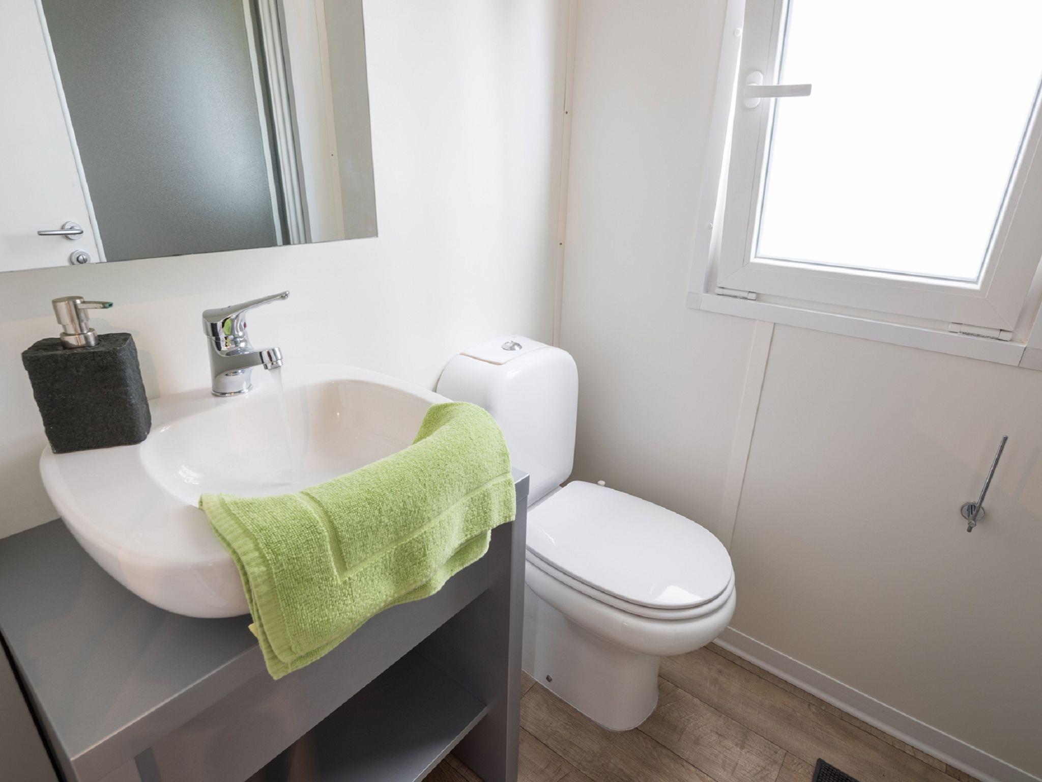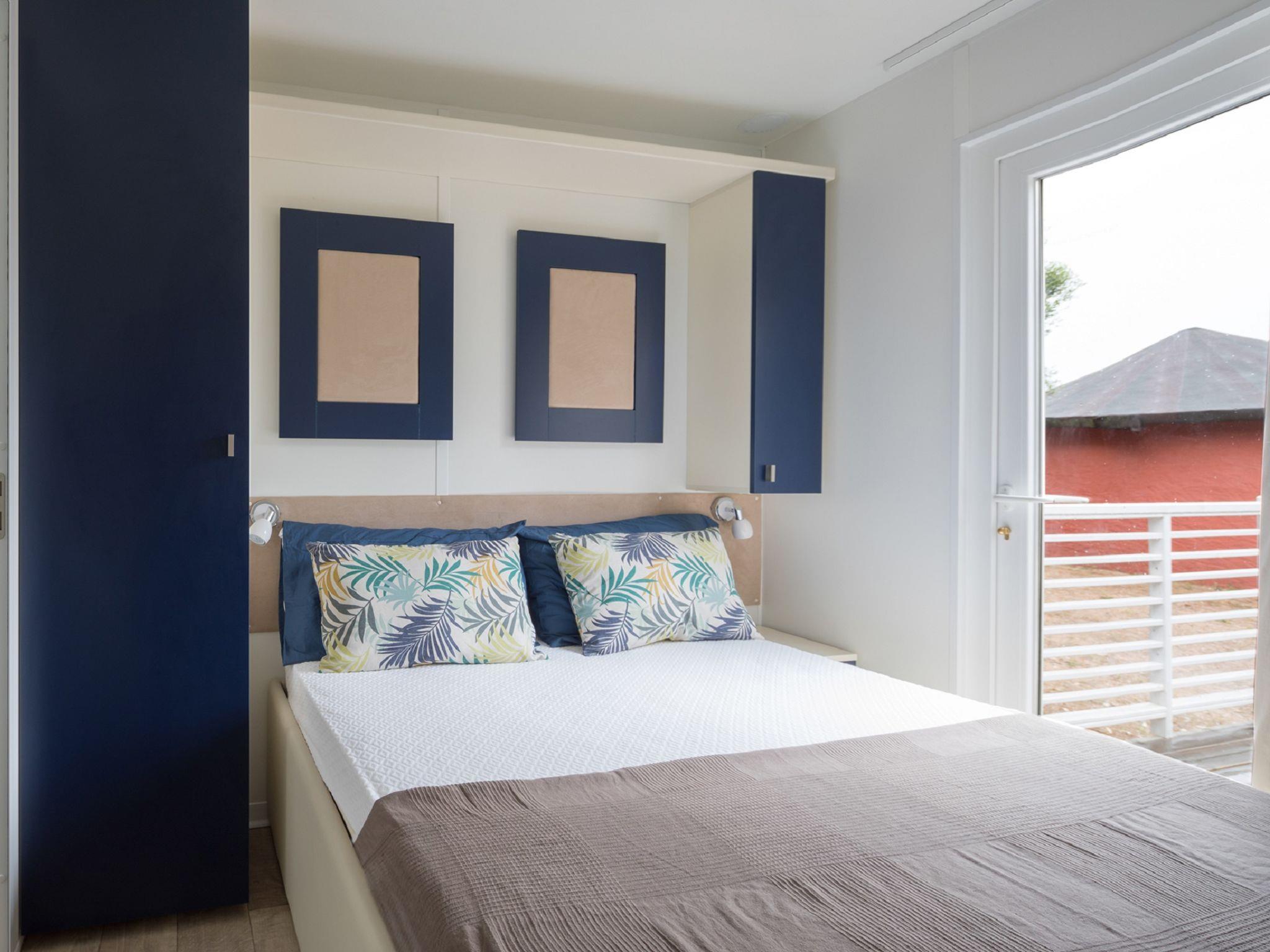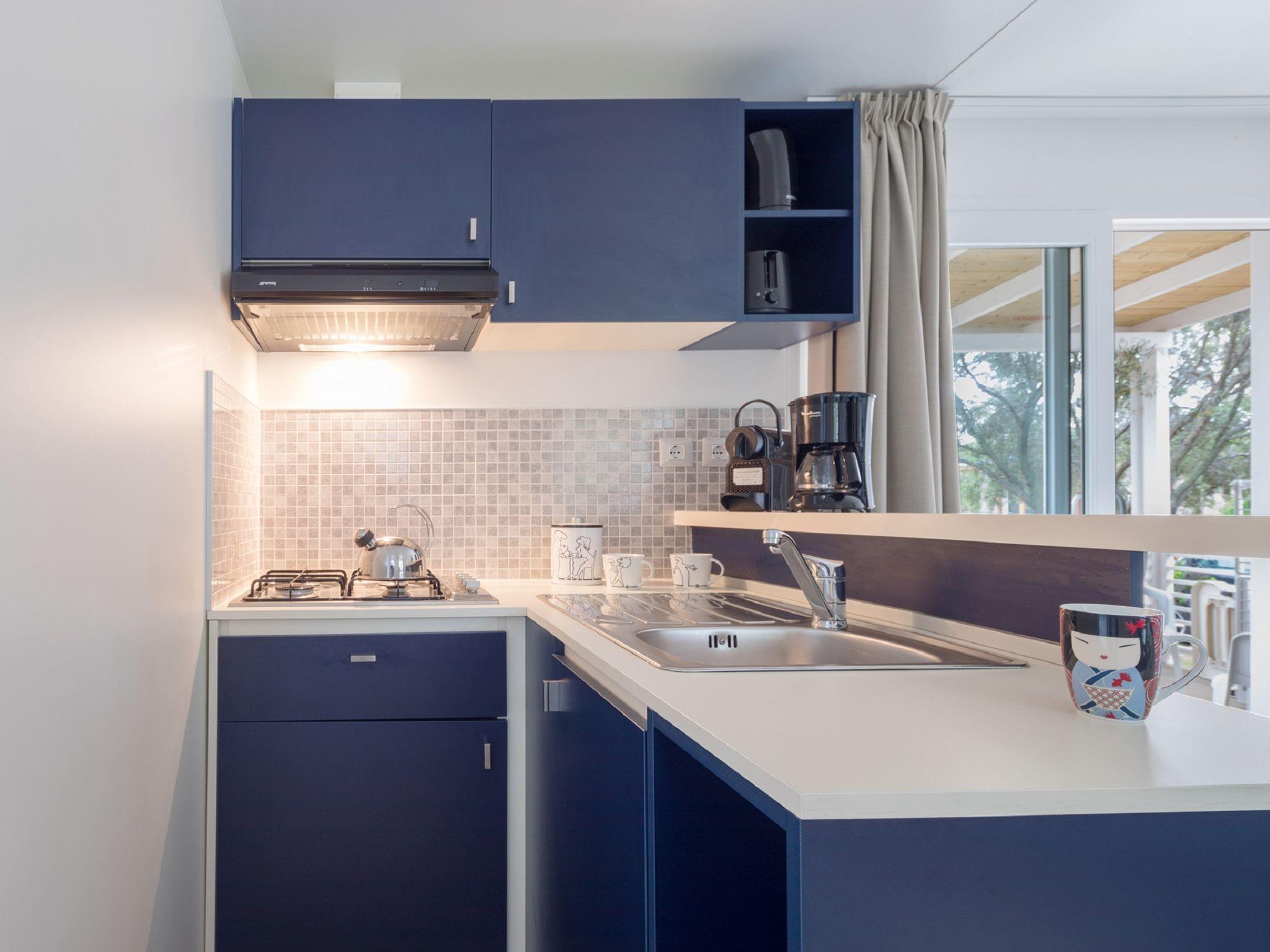 "Baia Elite", 4-room mobile home 33 m2. Modern furnishings: living/dining room with dining table. Exit to the terrace. 1 room with 1 french bed (140 cm), separate WC. 2 rooms, each room with 2 beds (70 cm). Kitchenette (4 gas rings, toaster, kettle, microwave, electric coffee machine). Shower/WC. Air-conditioning, forced-air heating. Terrace roofed. Terrace furniture. Parking (1 car). Please note: non-smokers only. Maximum 2 small pets/ dogs allowed. Beach service included from June 1st until Sept. 14th at the beach "spiaggia anfiteatro". IT090006B1000F1932