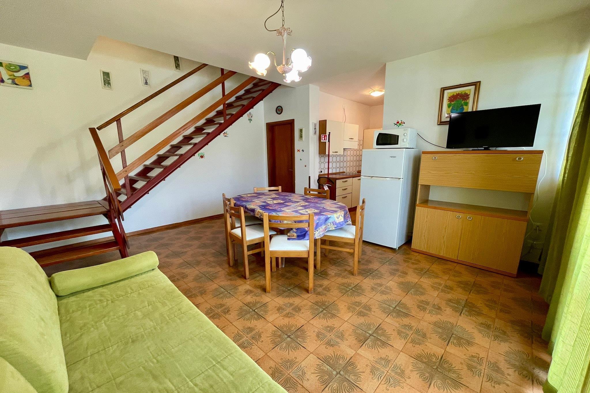 Beliggende i den charmerende kystby Caorle tilbyder dette omhyggeligt indrettede feriehus generøs plads fordelt på to etager, hvilket gør det ideelt for familier eller grupper, der ønsker komfort, privatliv og et nemt udendørsliv tæt på Adriaterhavskysten. I stueetagen byder stuen jer velkommen med et siddeområde, tv, spisebord og en enkelt sovesofa - perfekt til afslapning efter en dag på stranden. Det åbne køkken er fuldt udstyret med kogeplader, ovn og køleskab med fryser, så I nemt kan lave mad og spise. Et fuldt udstyret badeværelse med vaskemaskine tilføjer hverdagens bekvemmelighed. Ovenpå er sovepladserne designet med fleksibilitet i tankerne. Et soveværelse har en dobbeltseng ved siden af en enkeltseng, mens et andet har to enkeltsenge, og et tredje har en køjeseng - ideelt til børn eller venner, der deler. Denne etage åbner også ud til en privat balkon og inkluderer et andet fuldt udstyret badeværelse, der sikrer komfort og privatliv for større grupper. Udendørs stråler hjemmet virkelig. En privat have med havemøbler, liggestole, parasol og grill skaber en afslappet ramme for lange måltider og solrige eftermiddage. Gæsterne har også adgang til en udendørs swimmingpool, mens aircondition og parkering på stedet øger komforten under dit ophold. Med stranden, promenaden, restauranterne og de historiske gader i Caorle lige i nærheden tilbyder dette hjem den perfekte blanding af sjov ved havet, familievenlig plads og afslappet ferieliv.
