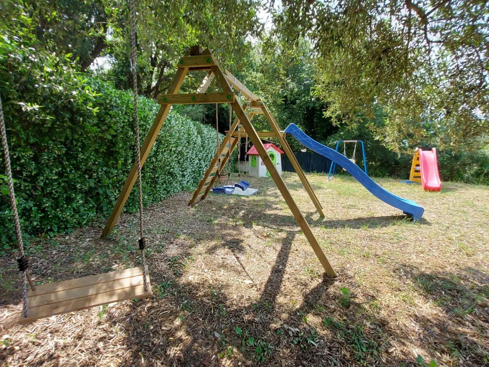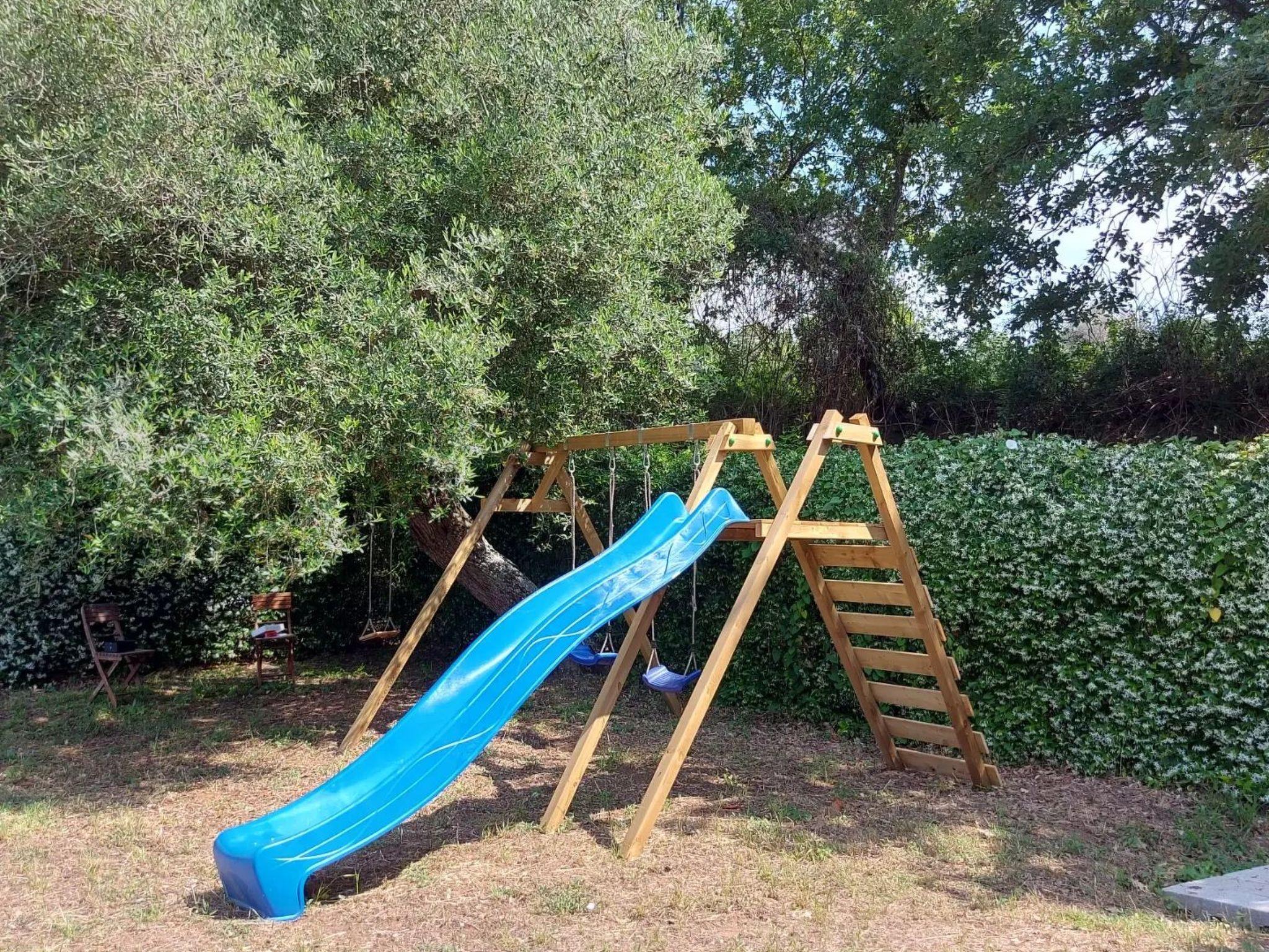 Outside, Villa Mimosa is surrounded by a lush private garden of 1,500 square metres, with ample green spaces where children can play freely and safely, while adults relax in the shade of centuries-old olive trees or sunbathe on comfortable sun loungers. The garden also houses a play area for the little ones with slides, swings and more.