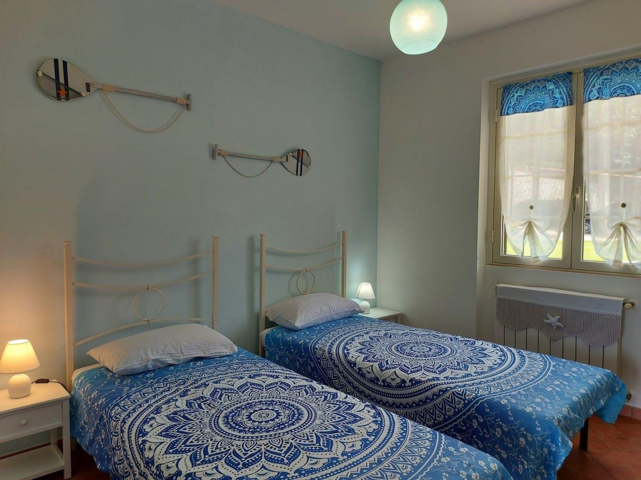 The comfort continues with a double bedroom and a twin bedroom, both equipped with memory foam mattresses to guarantee you the best possible rest, as well as a bathroom complete with bathtub, shower cubicle, and numerous other amenities including air conditioning, heating, free WI-FI, 32" LCD SAT TV, and a second outdoor shower with hot water for a quick refreshment when returning from the beach.