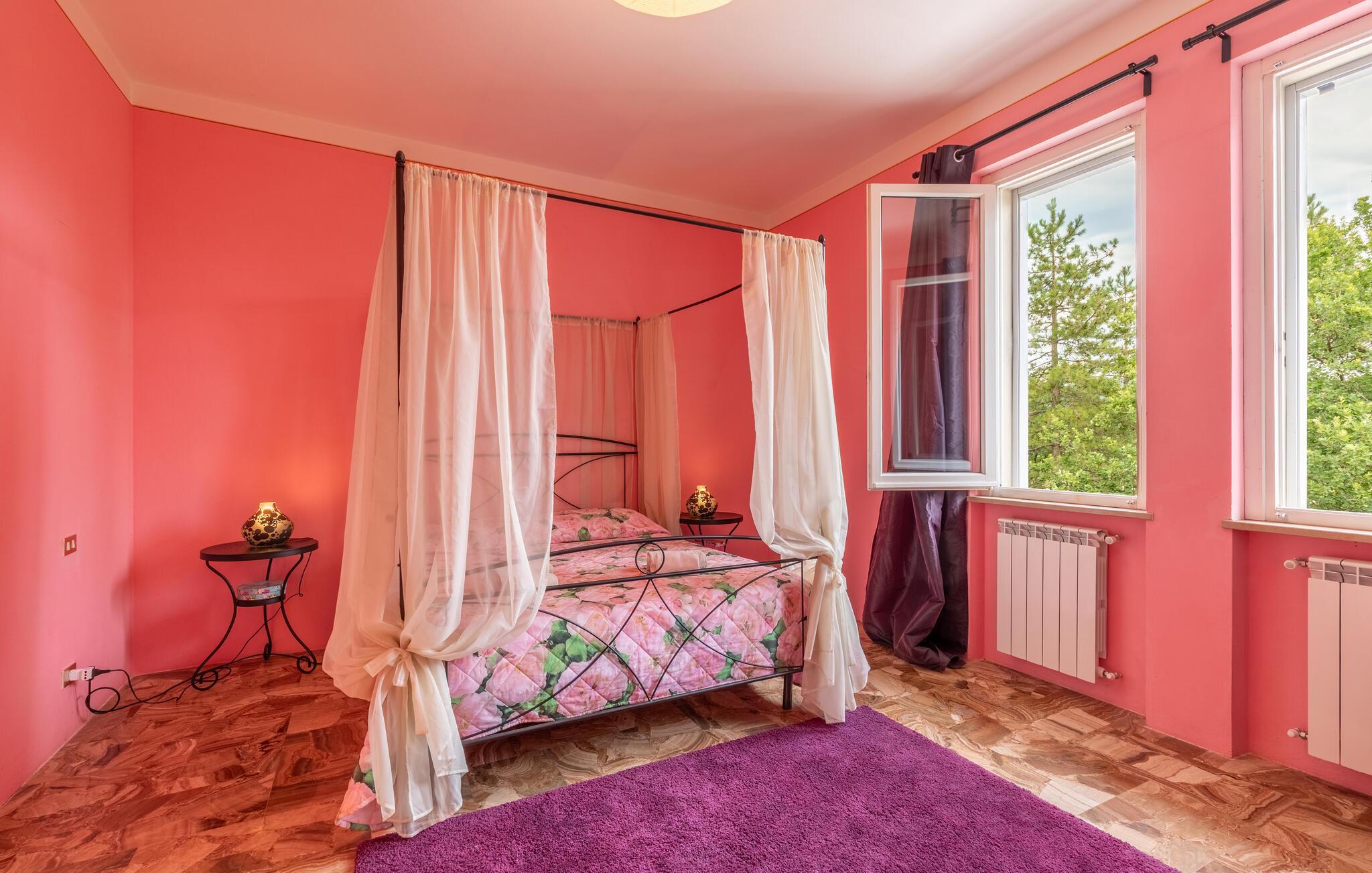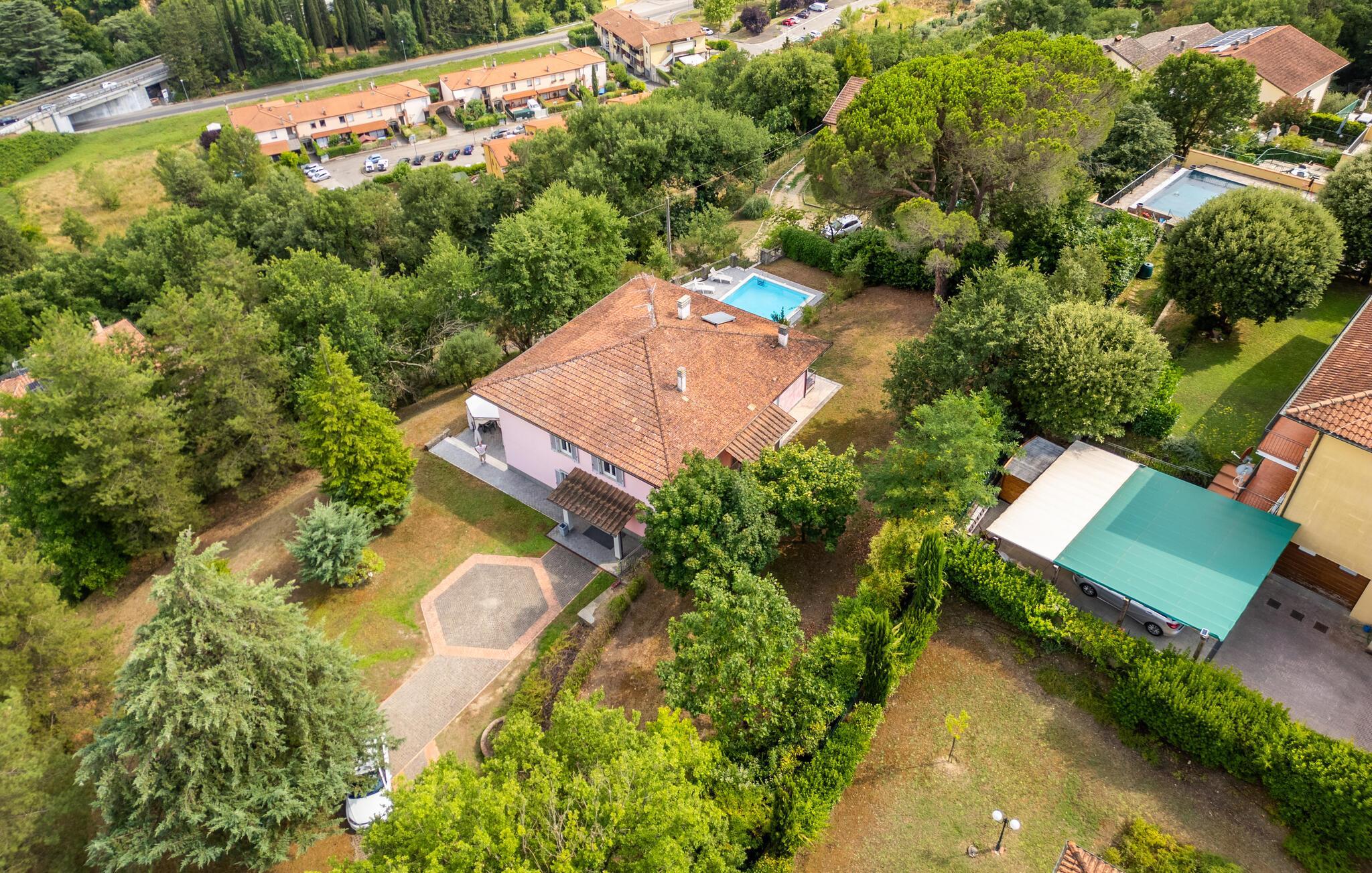 Nyd jeres ferie i et feriehus med pool og en fantastisk udsigt. Velkommen til dette indbydende hus ved porten til Toscana, hvor I vil føle jer hjemme fra første dag. Glæd jer til individuelt indrettede og lyse værelser med spændende farveaccenter, nyd udsigten over det omkringliggende landskab, spis sammen ved det lange spisebord, og hyg jer sammen på sofaen om aftenen efter en begivenhedsrig dag. Slap af på grunden, nyd de første solstråler på altanen, solbad og svøm i poolen til jeres hjertens lyst. Om aftenen kan I nyde kolde drikke udendørs og slappe af foran en storslået kulisse. Bliv inspireret af naturens ro eller udforsk regionen aktivt ved at vandre eller cykle på velafmærkede stier gennem de toscanske bakker. Besøg middelalderbyen Arezzo, beundre de storslåede fresker i San Francesco-kirken, slentre gennem det berømte antikvitetsmarked, eller nyd en espresso på Piazza Grande.