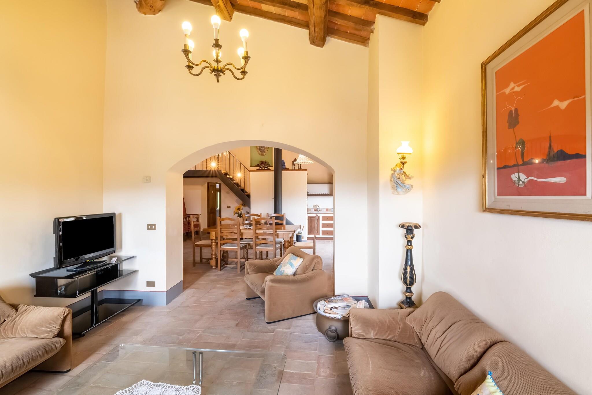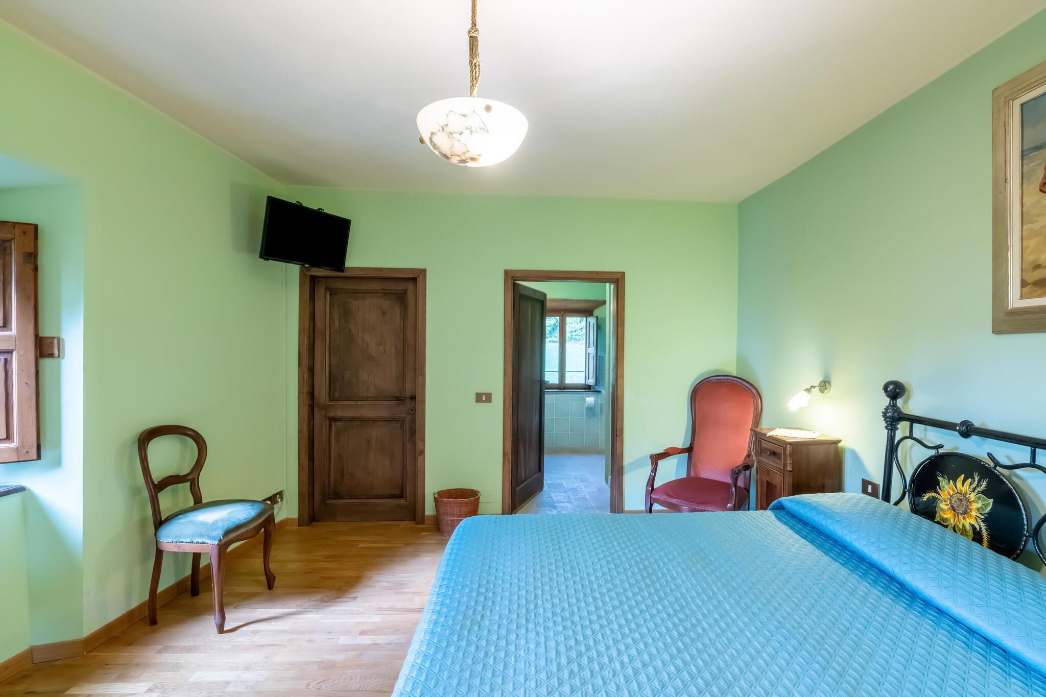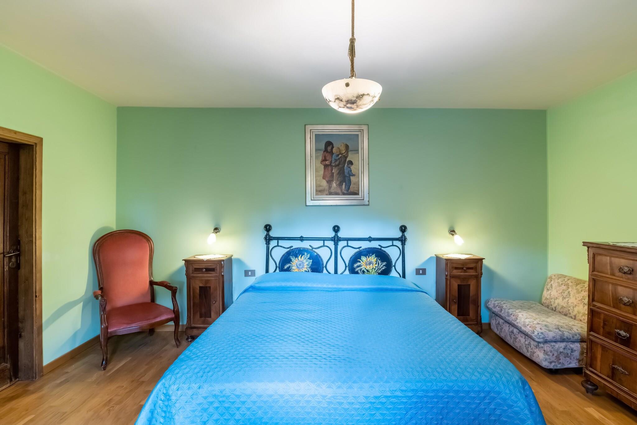 Vi er beliggende i Michelangelos fødeby. Denne store lejlighed i hovedhusets stueetage har udsigt over den grønne dal, der indrammer søen.Hele lejligheden er møbleret med antikviteter og den store og indbydende terrasse er ideel til at tilbringe hyggelige aftener og middage i den åbne have.Fælles, møbleret terrasse , vidunderlig swimmingpool til rådighed for gæster. Vaskemaskine (delt), grill og parkering. Centralvarme og pejs.De store kunstbyer Toscana, Firenze, Arezzo og Siena og i Umbrien, Gubbio, Assisi og Perugia kan besøges på én dag. Byens centrum ligger 3 km væk og restauranterne er lige rundt om hjørnet. .