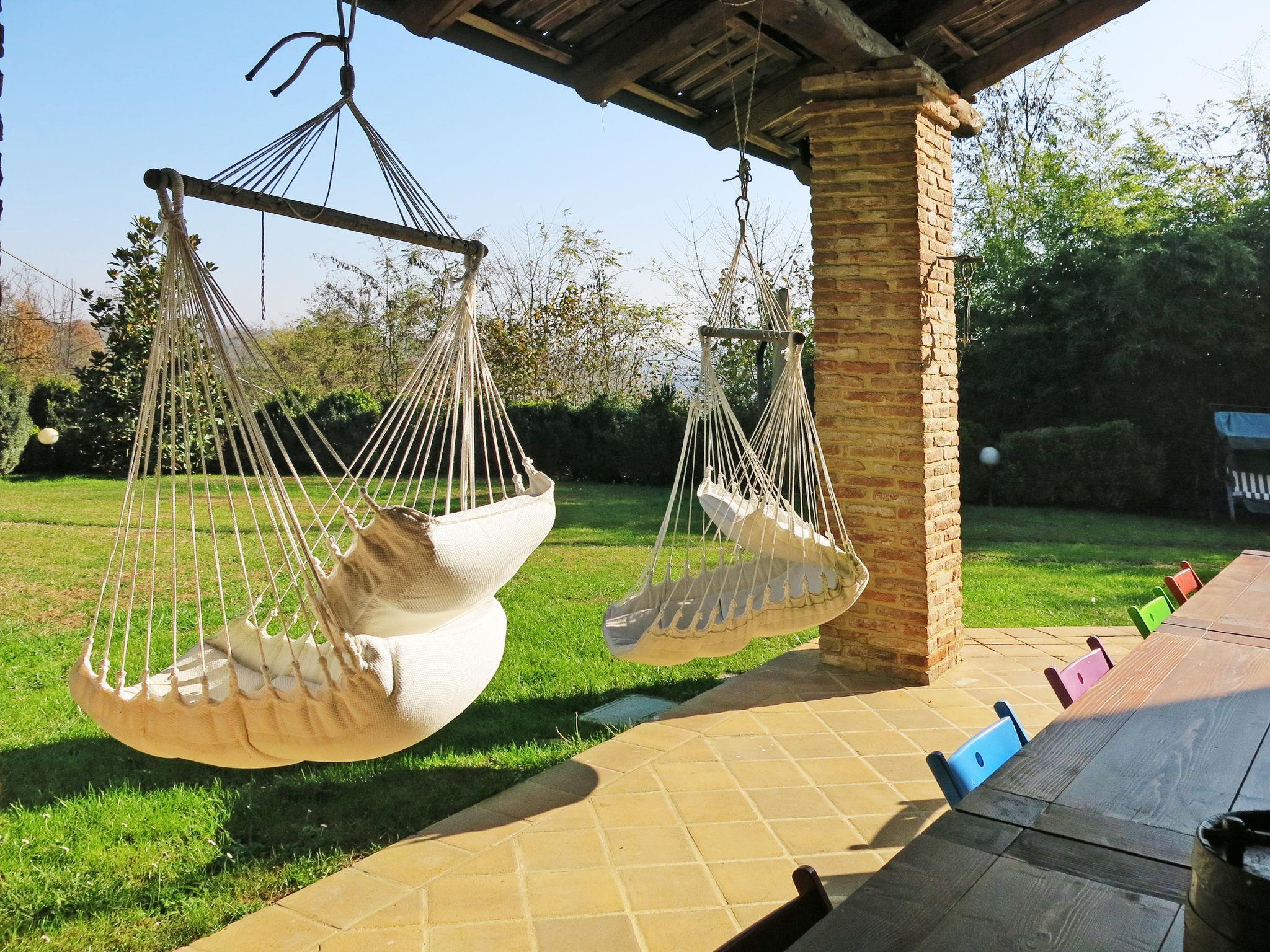 Beautiful cottage "Il Marchese del Grillo", detached, surrounded by trees and vineyards. 1 km from the centre of Serra di Capriglio, 27 km from the centre of Asti, 45 km from the centre of Turin, in a sunny position. Private: property 5'000 m2 (fenced), garden with lawn and wildlife garden, swimming pool (13 x 6 m, depth 100 - 200 cm, seasonal availability: 01.May. - 15.Oct.) with salt-electrolysis pool-cleaning system. Outdoor shower, table tennis, garden furniture, pool maintenance by the owner/gardener. Parking. Shop 3 km, supermarket 5 km, bus stop 200 m, railway station "Villanova d'Asti" 10 km. Golf course (18 hole) 20 km.