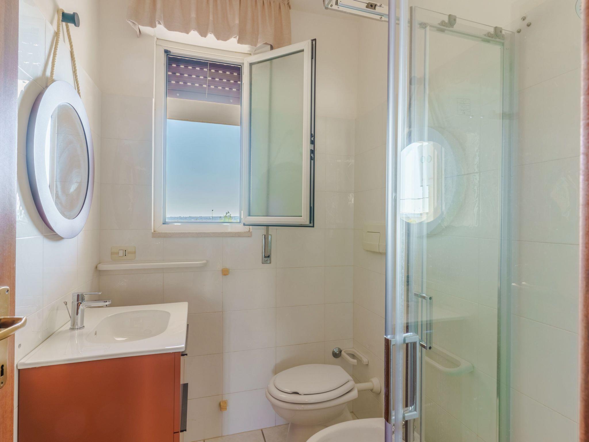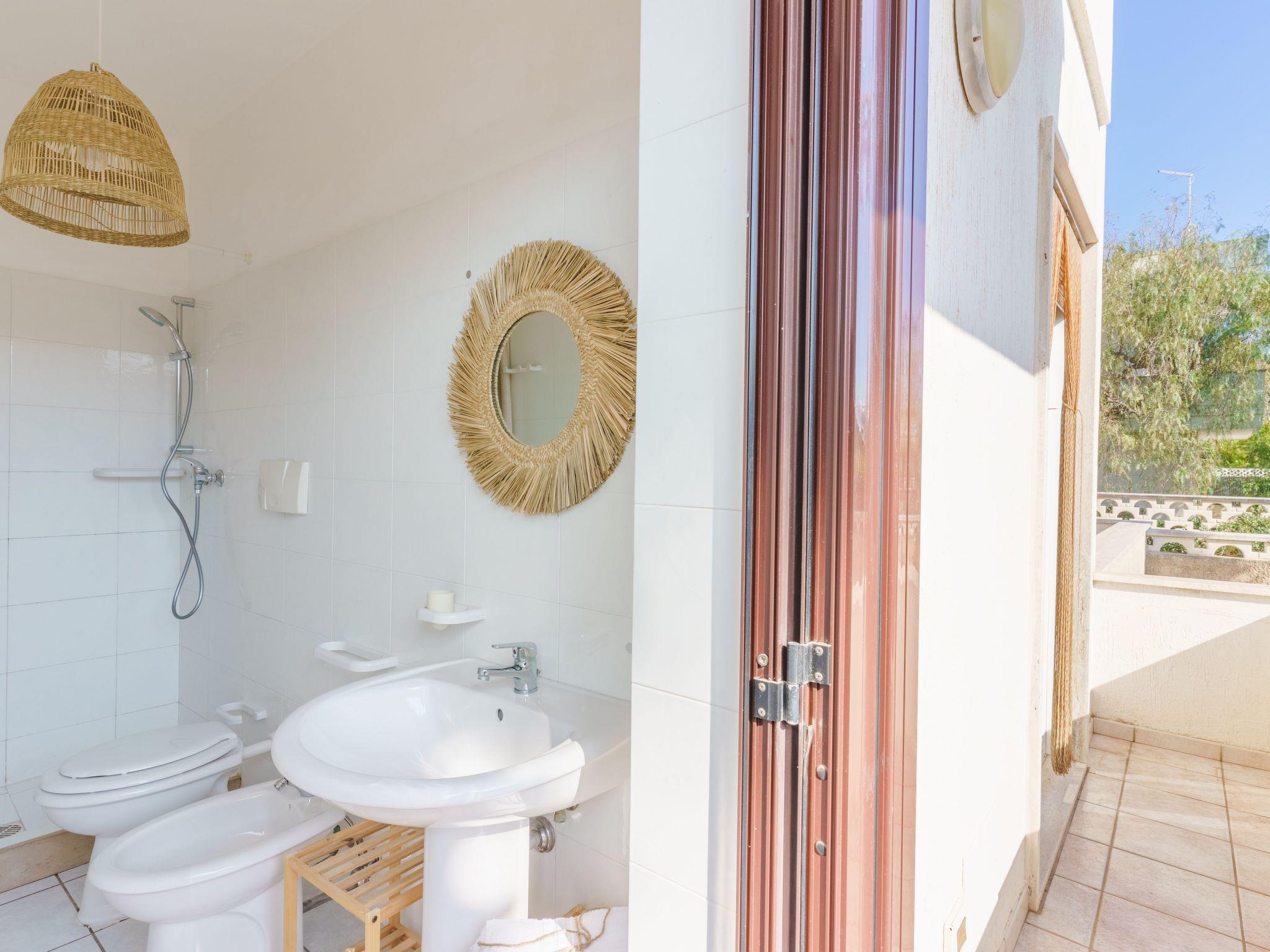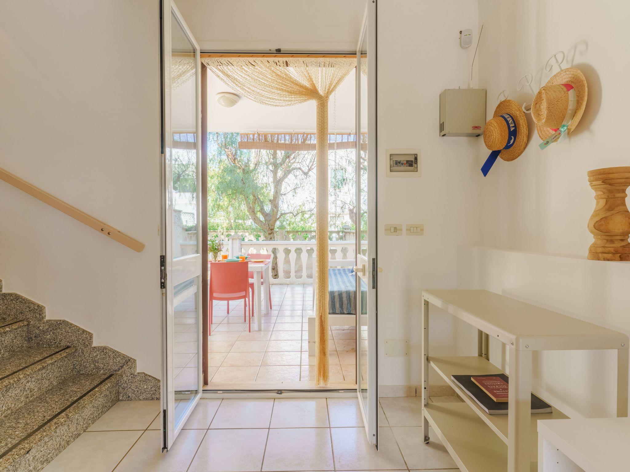 It is a villa with outdoor spaces 250 m from the beaches of Torre Santa Sabina. It offers five beds, two bedrooms and an equipped kitchen. It is ideal for families thanks to its enclosed garden. It also has a shady veranda perfect for outdoor dining. The centre, the promenade, bars and excellent fish restaurants are 500 m away.