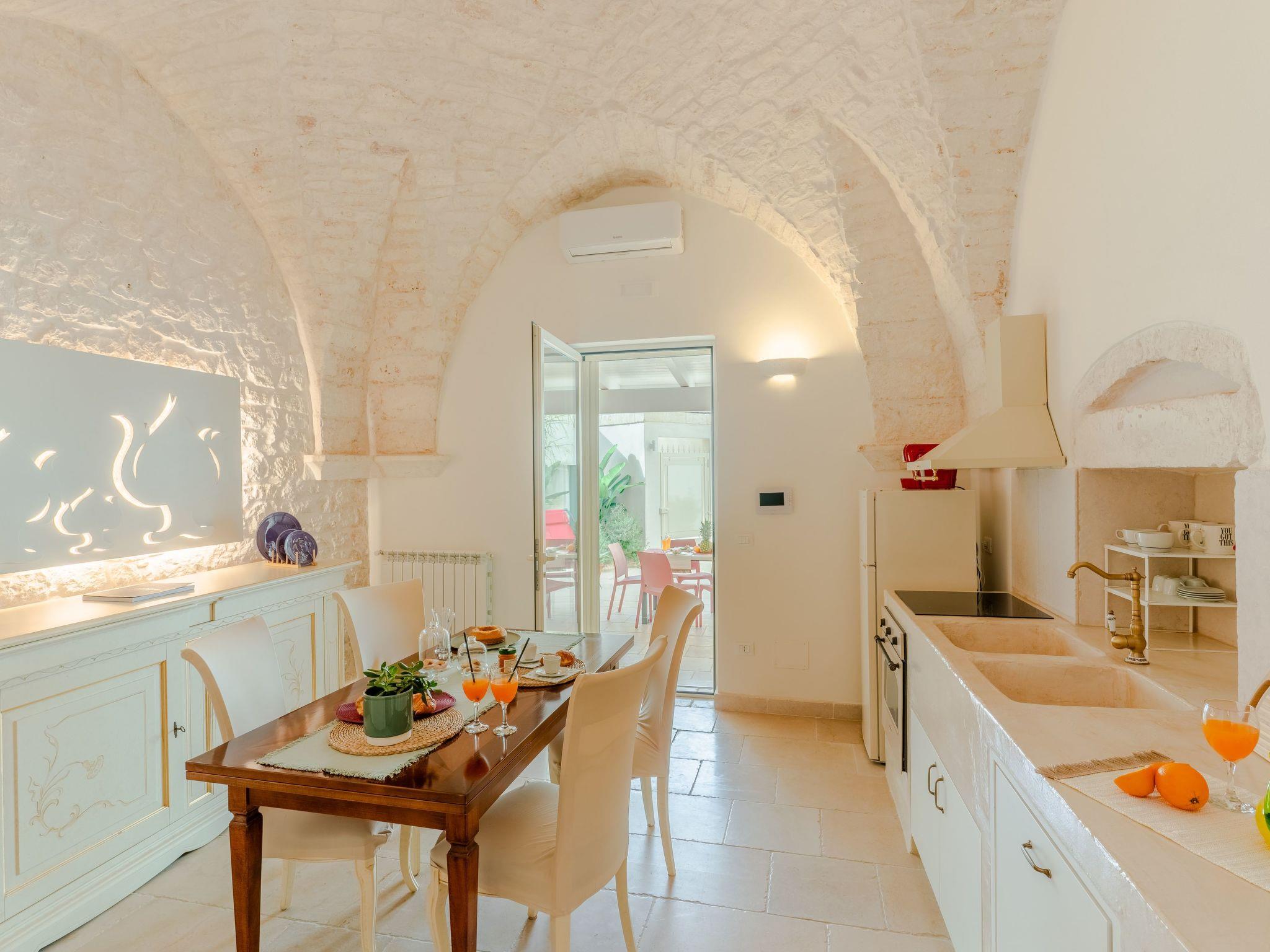 Casa Lea is a charming 17th century house, located in Carovigno near Ostuni. It offers a garden with a large veranda where you can enjoy outdoor meals thanks to a dining table, lounges and deckchairs. Ideal for two couples of friends thanks to two double bedrooms and two bathrooms with shower. Enjoy a magical atmosphere thanks to unique architectural elements such as vaulted roofs made of local stone illuminated by soft, warm light. You will be a 7-minute drive from sandy beaches and 20 km from the Torre Guaceto Reserve, one of the 16 most beautiful marine protected areas in the world. You will also be close to the Valle D'Itria, one of the most fascinating parts of Puglia.