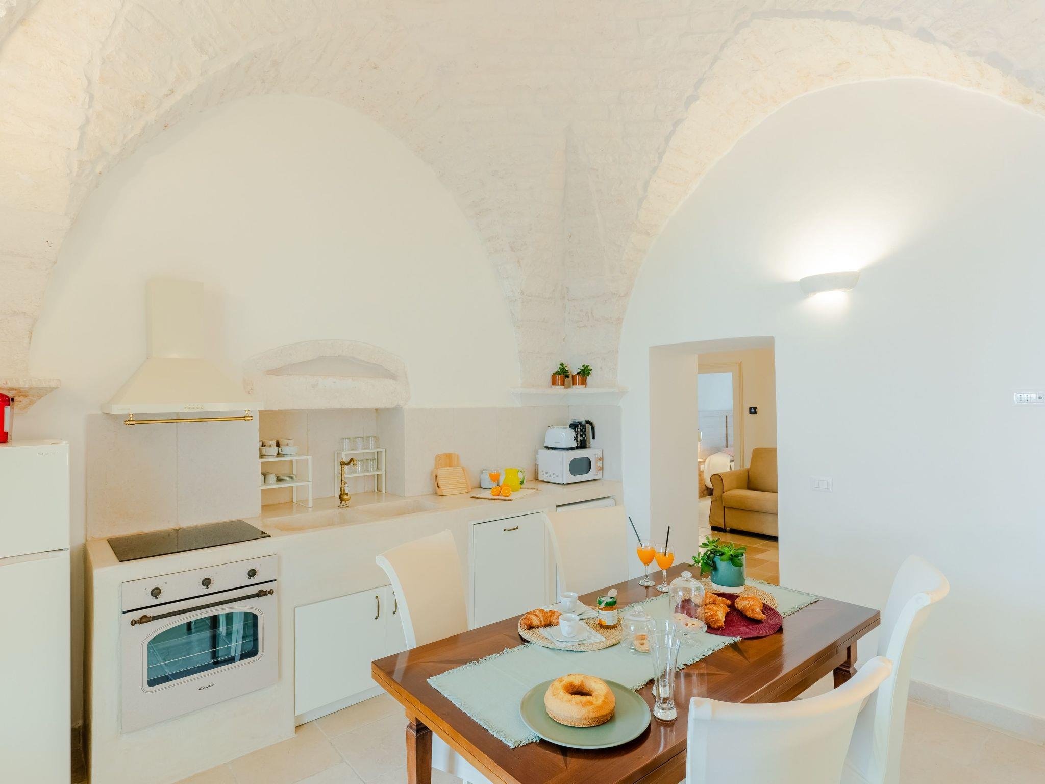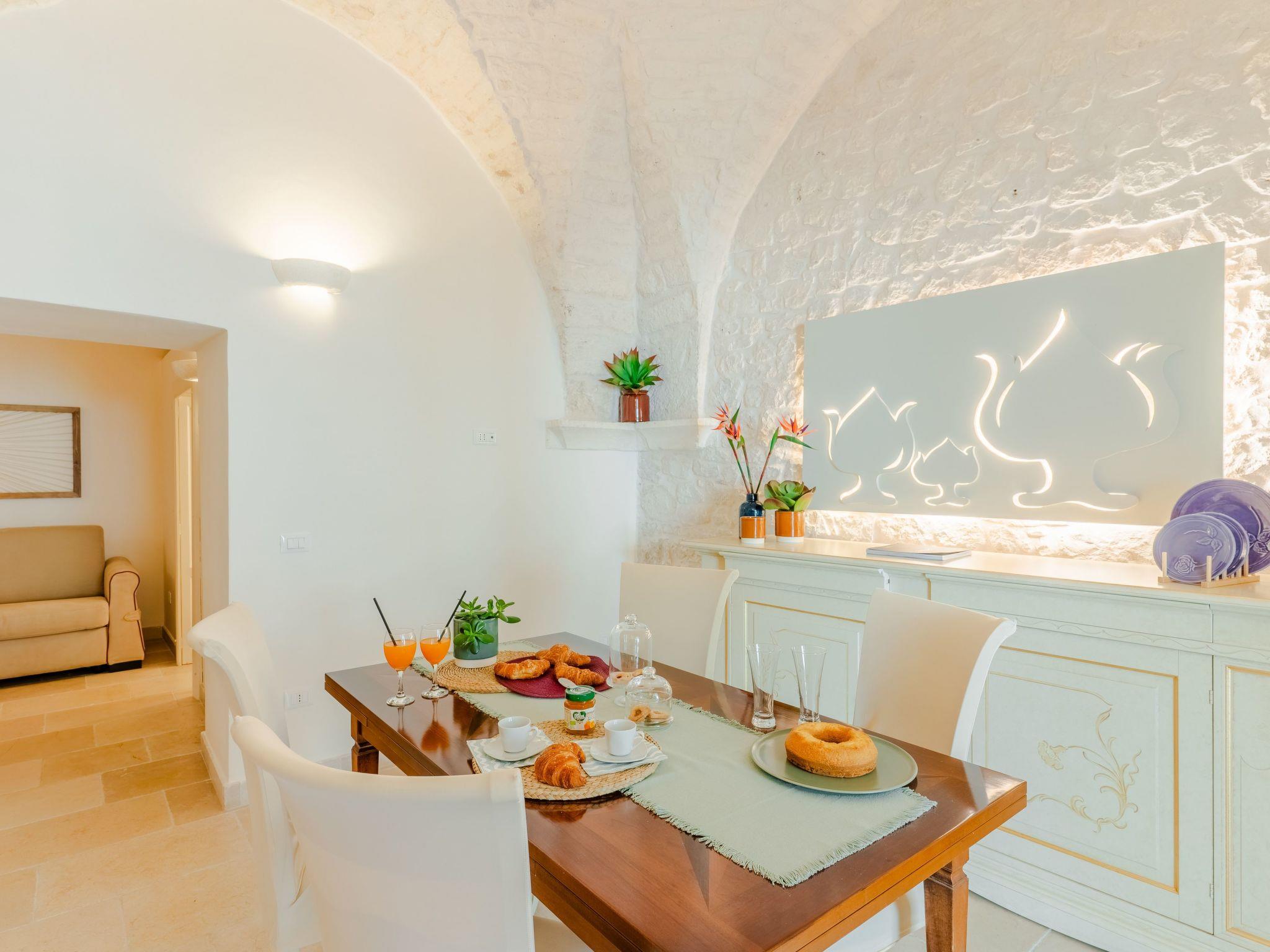 From this house you can walk to workshops with small shops selling bread and almond cakes, fresh cheeses and homemade pasta. Excellent masserias with local specialities are in the countryside a 2-minute drive away.
