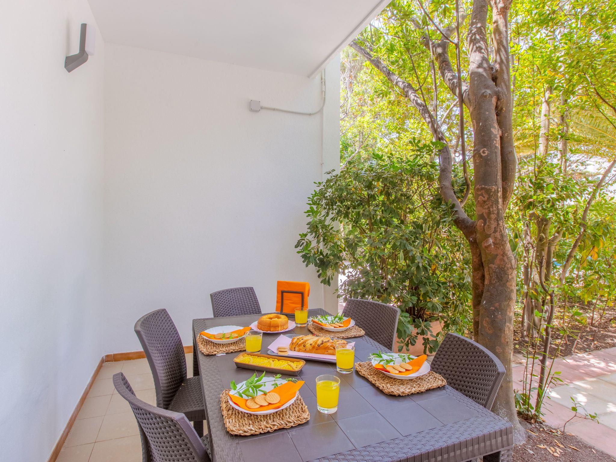 garden, two beach beds, dining table, lounge.