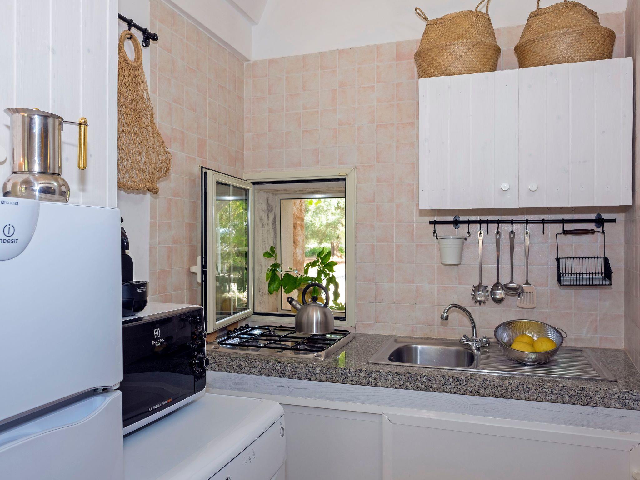 The farm has within it an entrance with sleigh bed, a dining room with attention to detail which makes chic the whole properties and there is an imposing fireplace. From here access to the kitchen, all masonry, to the master bedroom with a canopy bed nestled under the imposing vaulted ceilings with soft lighting and the second bedroom with two single beds.
