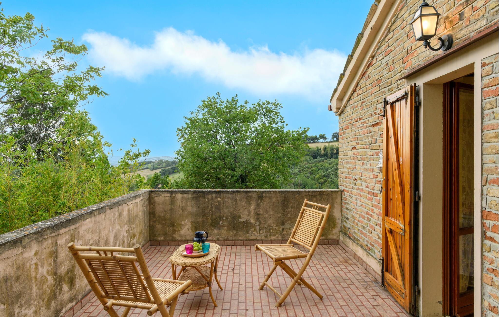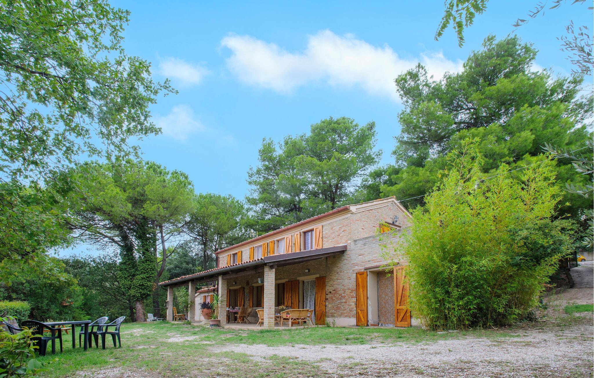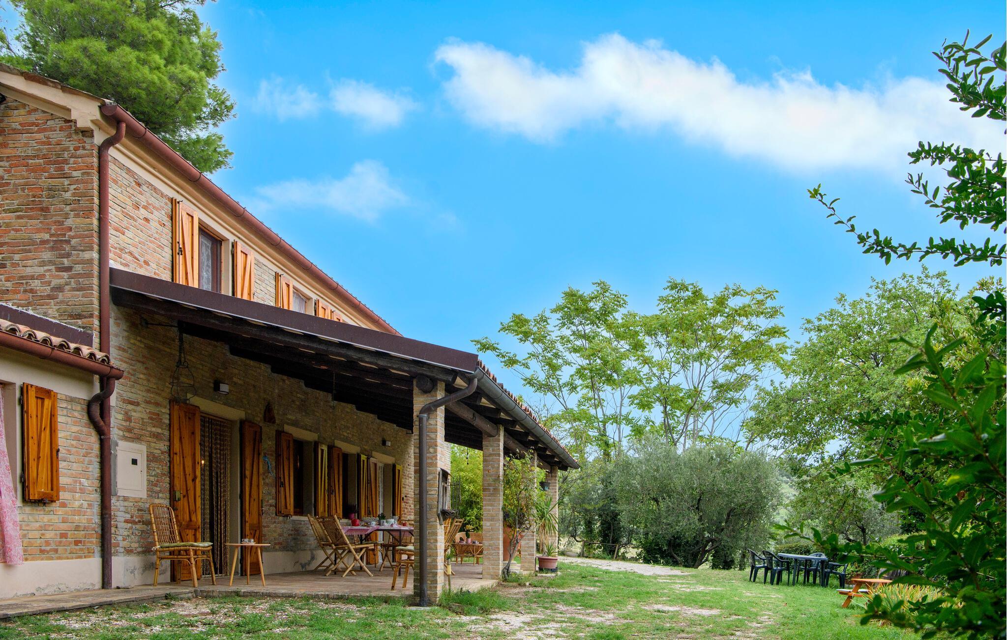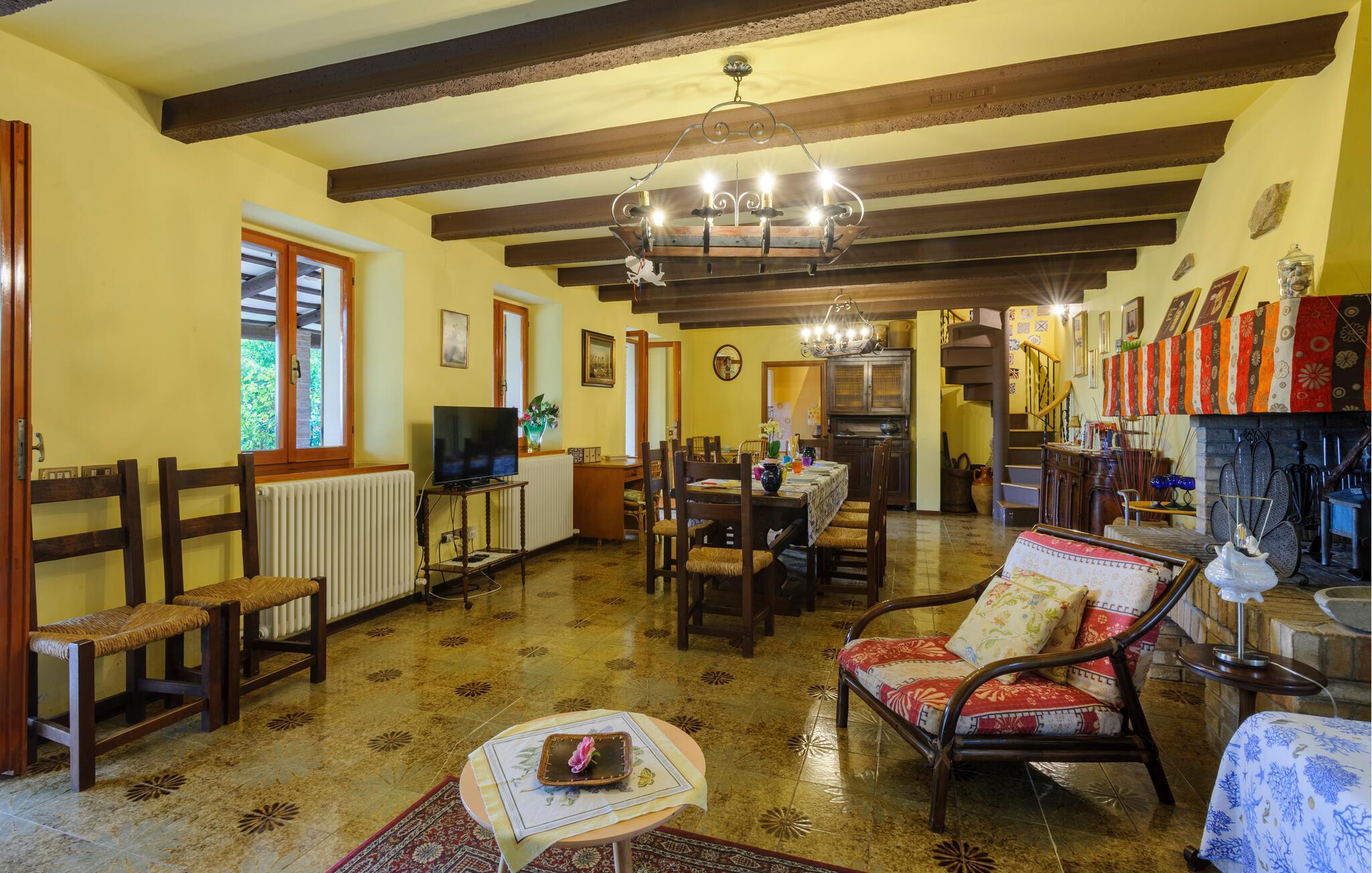Nyd roen på landet i dette store landsted. Velkommen til dette rummelige landsted i Cartoceto, hvor rustik charme møder moderne velvære. De varme træbjælker og den åbne pejs skaber en indbydende atmosfære, der straks lægger op til afslapning. Nyd det rummelige interiør, indrettet med stor sans for detaljer. På balkonen eller den store veranda kan I nyde udsigten over det maleriske landskab og slappe af med et glas vin. Her finder I det perfekte tilflugtssted til at forlade hverdagen og slappe af midt i naturen. Området omkring Cartoceto byder på et væld af muligheder for aktiviteter og udflugter. Udforsk de bølgende bakker i Marche, optimal til vandre- og cykelture. Besøg de charmerende, historiske byer som Fano eller Urbino, som ligger kun en kort køretur væk. Nyd det lokale køkken i de små trattoriaer, hvor I kan smage lækre regionale specialiteter. Uanset om det er kultur, natur eller køkken - regionen byder på noget for enhver smag og vil gøre jeres ophold uforglemmeligt.