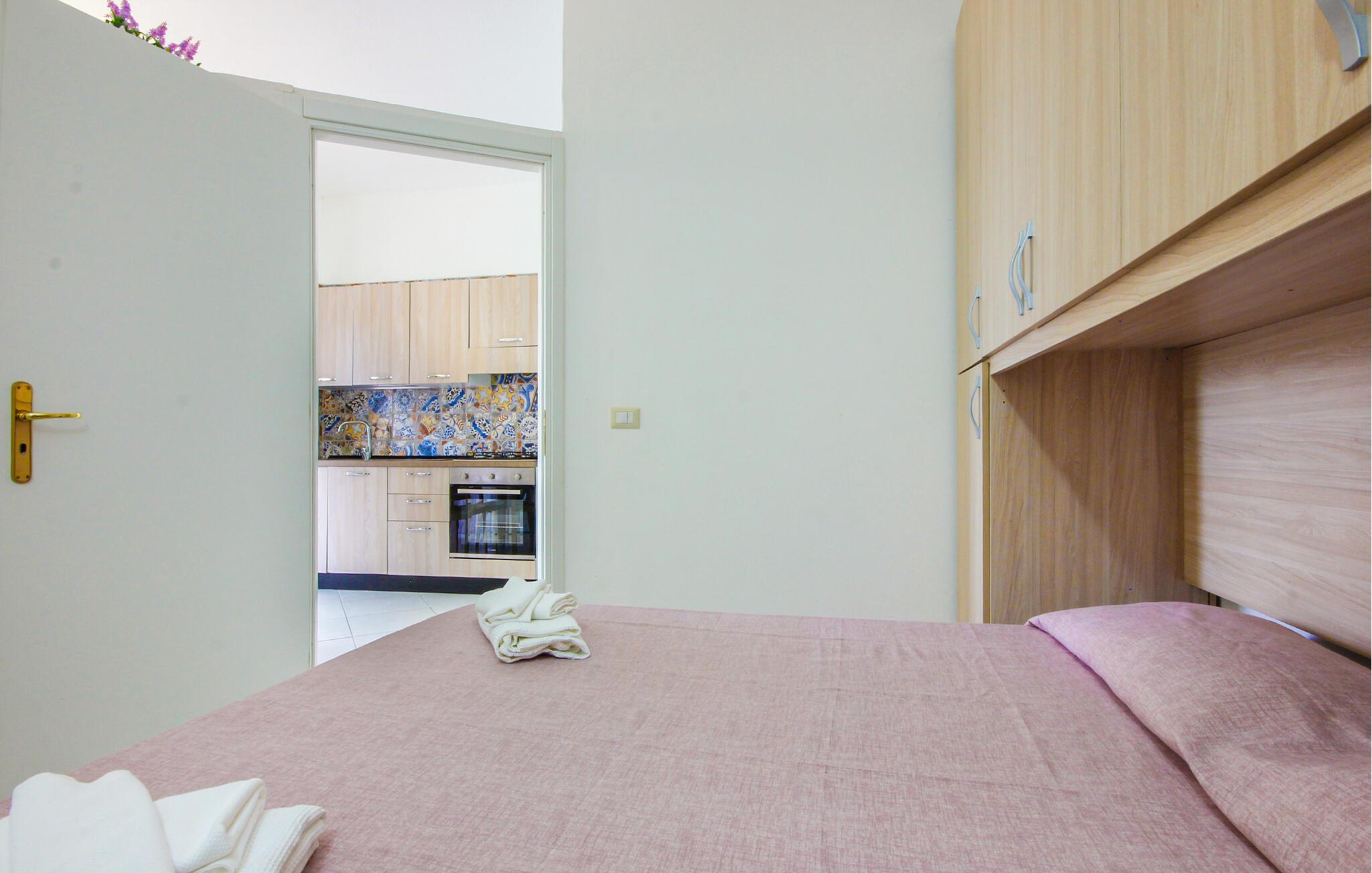 Denne praktisk indrettede lejlighed ligger kun få skridt fra sandstranden og tilbyder den ideelle base for en varieret ferie med familien. Tilbered lækre pastaretter, planlæg jeres aktiviteter over hyggelige måltider og afslut en begivenhedsrig dag med en spilleaften.