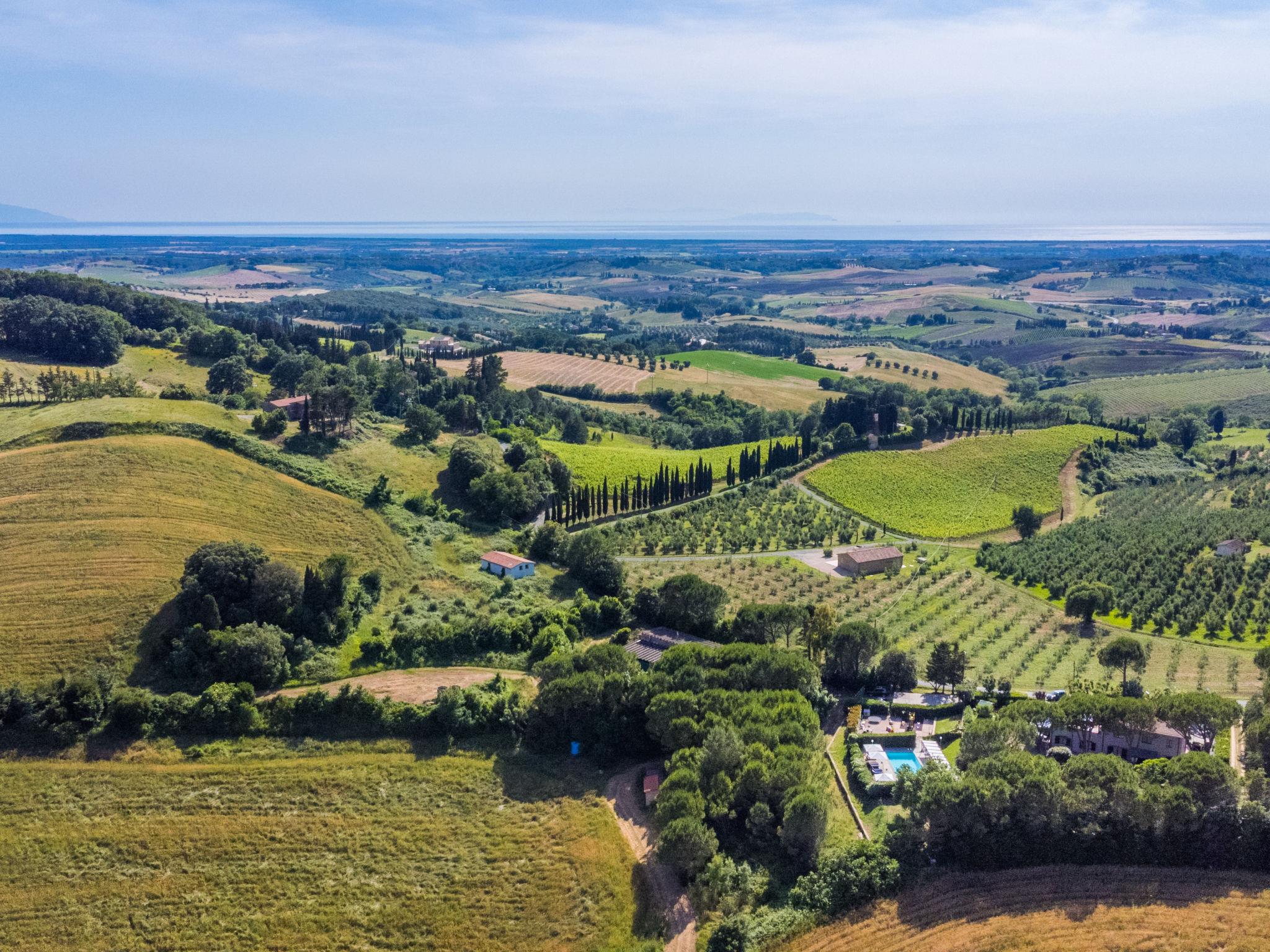 Agriturismo "Casaltoscano", 2 storeys, renovated in 2024, surrounded by trees, fields and vineyards. 5 apartments in the property. 4.5 km from the centre of Casale Marittimo, 4 km from the centre of Guardistallo, 13 km from the centre of Marina di Bibbona, in a quiet position on top of a hill, 13 km from the sea, 13 km from the beach. For shared use: property 1 ha, natural garden, meadow, swimming pool (14 x 5 m, depth 60 - 150 cm, seasonal availability: 01.May. - 15.Oct.). Children's pool, table tennis, basketball, children's playground. In the complex: reception, air conditioning, washing machine, tumble dryer (for shared use, extra). Parking on the premises. Shop 4 km, grocery 4 km, supermarket 12 km, shopping centre 12 km, bakery 4 km, bus stop 3 km, thermal baths "Calidario" 37 km. Nearby attractions: Bolgheri 12 km, Pisa 65 km, Lucca 90 km, Firenze 125 km. Please note: car recommended. Baby equipment on request (extra). The owner lives on the same property.