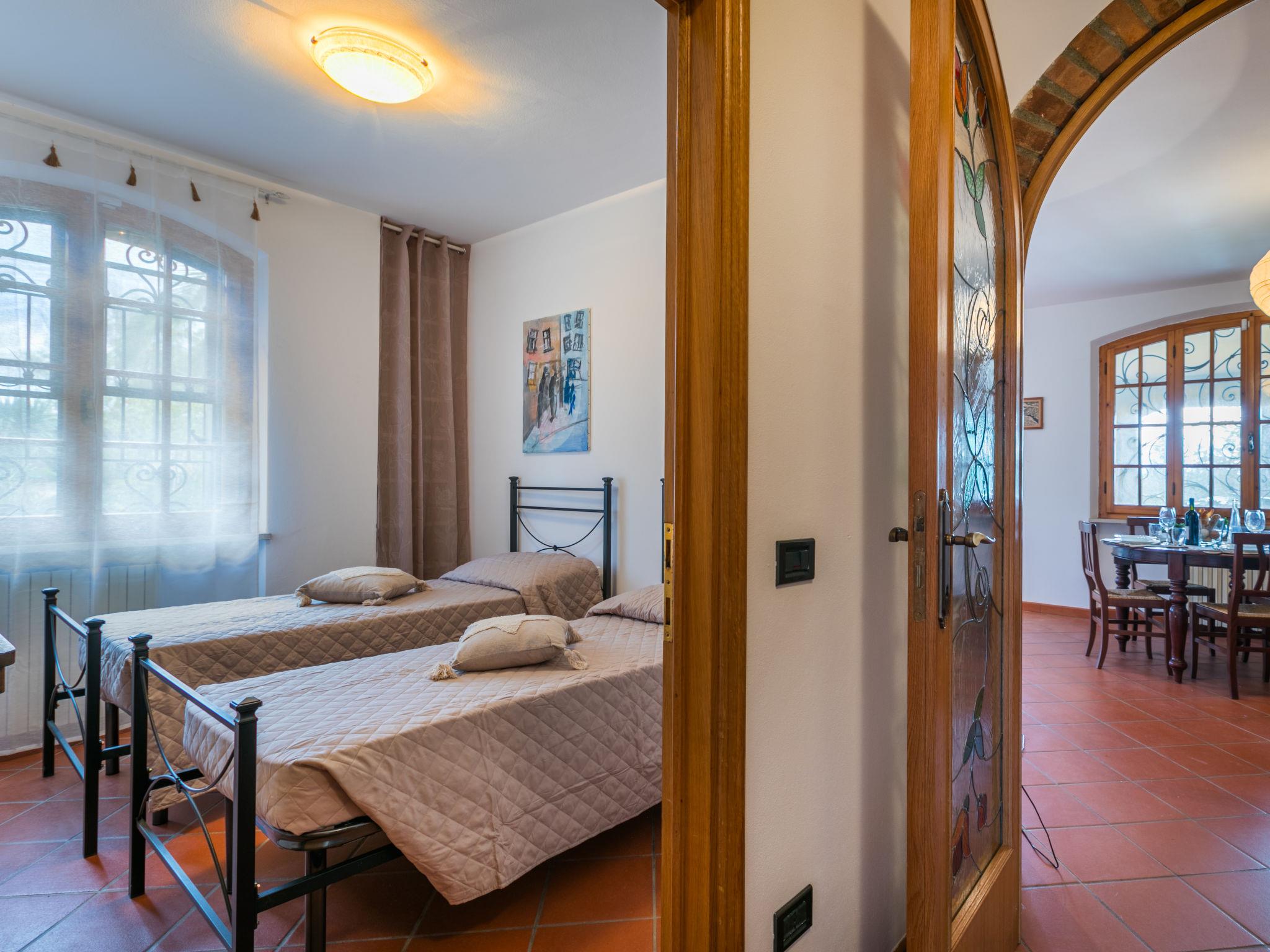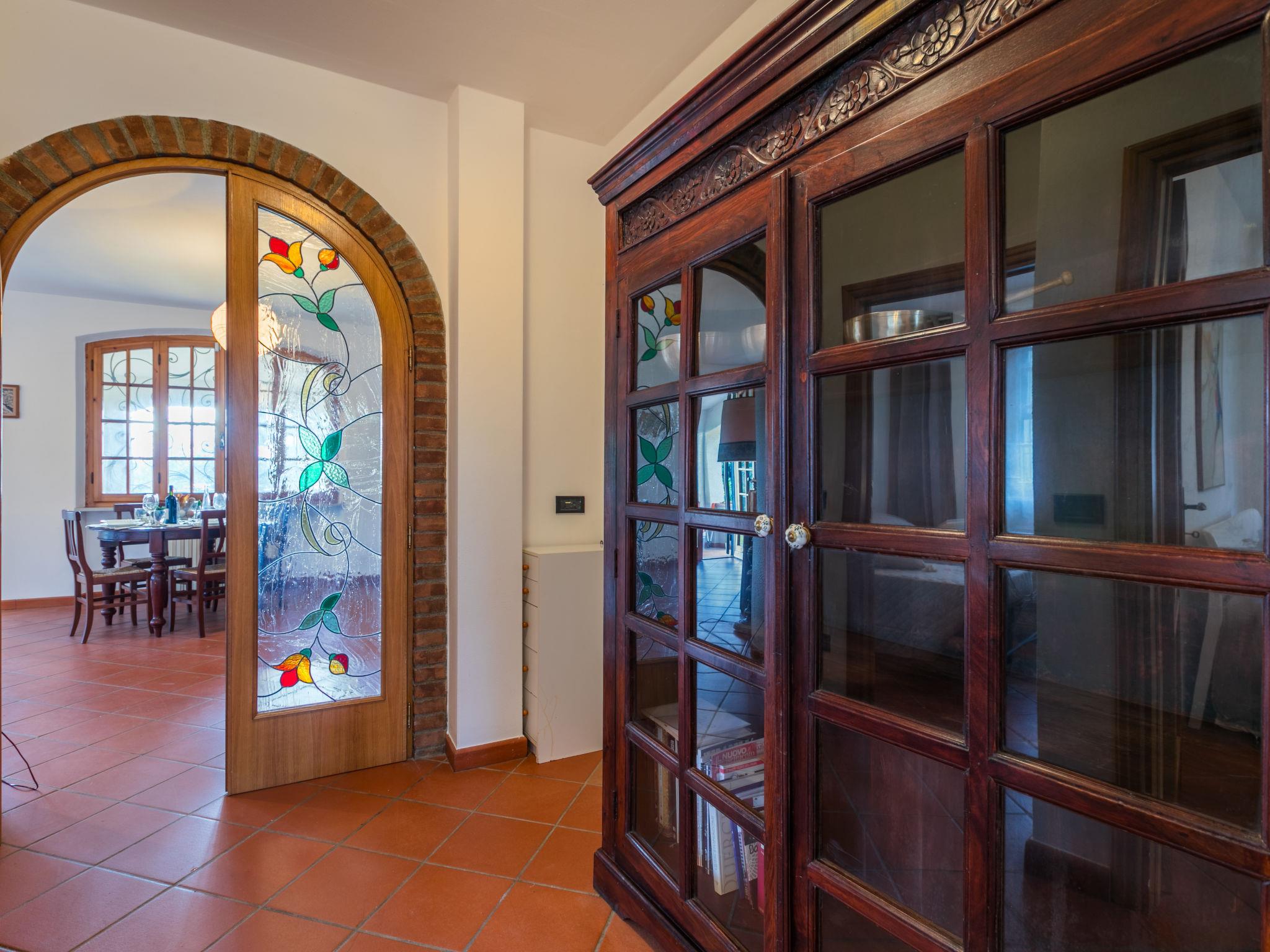 7-room house on 2 levels, on the upper ground floor. Spacious and bright, beautiful and cosy furnishings: living room with open-hearth fireplace and satellite TV. Exit to the terrace. Living/sleeping room with 1 sofabed and satellite TV. Exit to the terrace. 1 room with 2 beds. 2 double bedrooms. 1 room with 1 bed and 1 french bed (140 cm). Large kitchen (oven, dishwasher, 4 induction hot plates, toaster, kettle, microwave, electric coffee machine) with dining table. 3 showers/bidet/WC. Electric heating, oil heating, air-conditioning. Upper floor: living/sleeping room with 1 double sofabed and air conditioning. Exit to the balcony. 2 terraces covered. Terrace furniture, barbecue. Facilities: washing machine, iron, mosquito net, children's high chair, baby cot for up to 2 year olds, hair dryer. Internet (WiFi, free). Please note: maximum 2 pets/ dogs allowed. Private entrance, smoke alarm, fire extinguisher. No internal connecting door between the separated properties. The pool mentioned in the description is for private use. This house consists of 2 separate apartments that are not internally connected. IT050006C2ZBQEO45M,IT050006C2Z9RCWQKK