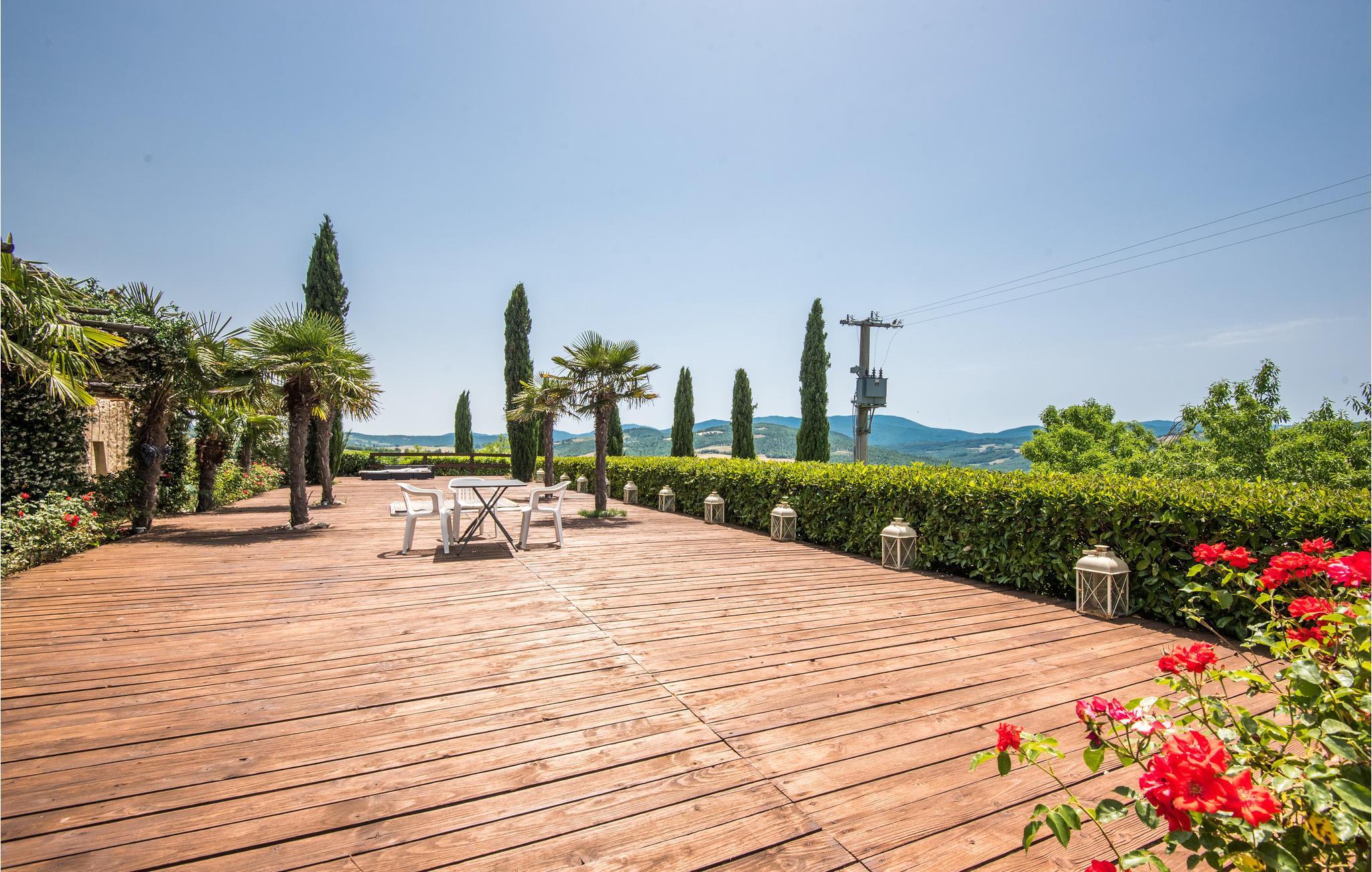 Den parklignende have byder på forskellige siddepladser i skyggen af gamle træer. En lille legeplads og bordtennis er fælles for alle gæster. Ligeledes deler I den solrige swimmingpool med panoramaterrasser. Dette er det helt rigtige sted for gæster, der gerne vil slappe helt af på ferien og måske sidde og nyde et glas vin til den smukke solnedgang. Til børn er det ideelt både at kunne lege og gå på opdagelse i landets yppige natur.