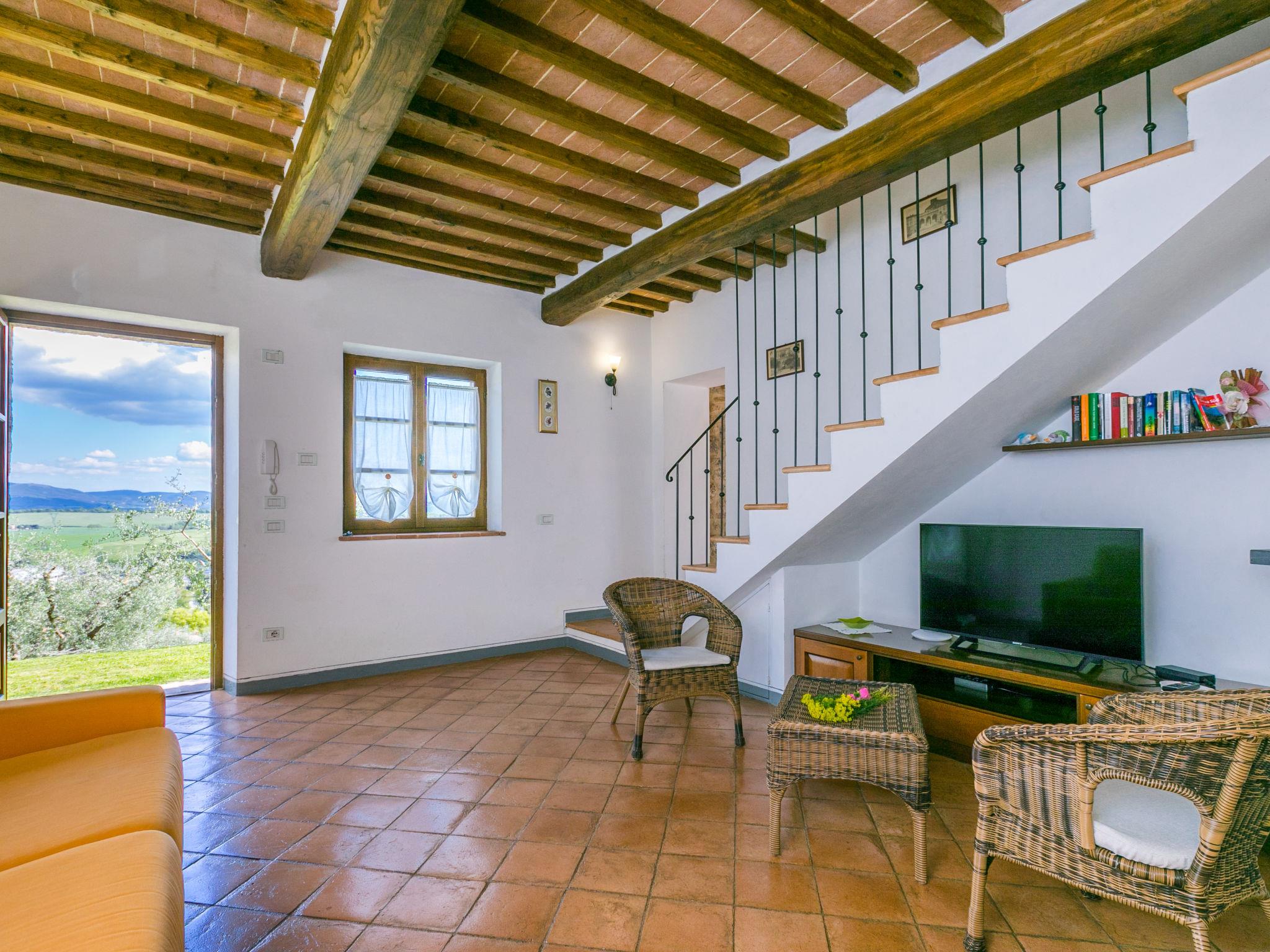 "Poggio all'Aia", 6-room house 160 m2 on 2 levels. Object suitable for 8 adults. Fully renovated, beautiful and tasteful furnishings: open large living room with open-hearth fireplace, kitchen corner, satellite TV, radio and CD-player. Exit to the terrace. Living room with satellite TV, radio and CD-player. Exit to the terrace. Large, open kitchen (oven, dishwasher, 5 gas rings, freezer, electric coffee machine) with dining table. Exit to the terrace. 2 showers/bidet/WC. Upper floor: 2 double bedrooms. 2 rooms, each room with 2 beds (80 cm). Bath/bidet/WC, shower/bidet/WC. Gas heating (extra). Natural stone floors. Comfortable furnishings in the country house style. 3 terraces. Terrace furniture, barbecue (portable), deck chairs. Facilities: washing machine, children's high chair, baby cot for up to 2 year olds, hair dryer. Internet (WiFi, free). Parking (4 cars). Please note: suitable for families. Non-smoking house. Maximum 3 pets/ dogs allowed. No internal connecting door between the separated properties. When there are less than the maximum number of guests staying at the property, not all of the bedrooms will be available for use. When there are less than the maximum number of guests staying at the property, not all of the housing units will be available for use. No mandatory extra charges to be paid on-site except for local tax. Bedlinen, towels, final cleaning and all energy costs are included. IT052004C27E6QE9DF,IT052004C225UFVFUA