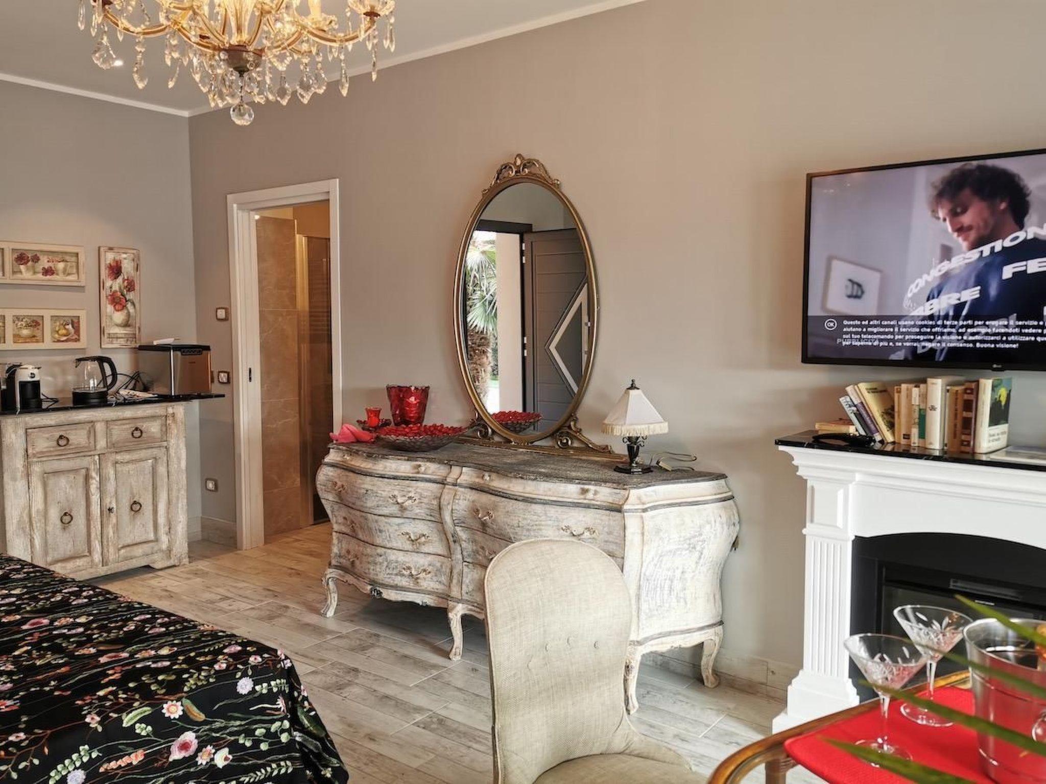 The villa's refined and elegant interior can comfortably accommodate up to 12 people. The interior layout is designed to guarantee comfort and luxury: two rooms on the first floor with king-size beds, bathrooms with shower, solarium, and on the ground floor two more rooms with king-size beds, a spacious bathroom with jacuzzi, a 70-square-metre "Prince of Wales" SUITE equipped with every comfort, and a "Country Flowers" MINI SUITE, also well-equipped and with access to an outdoor pergola facing the pool.