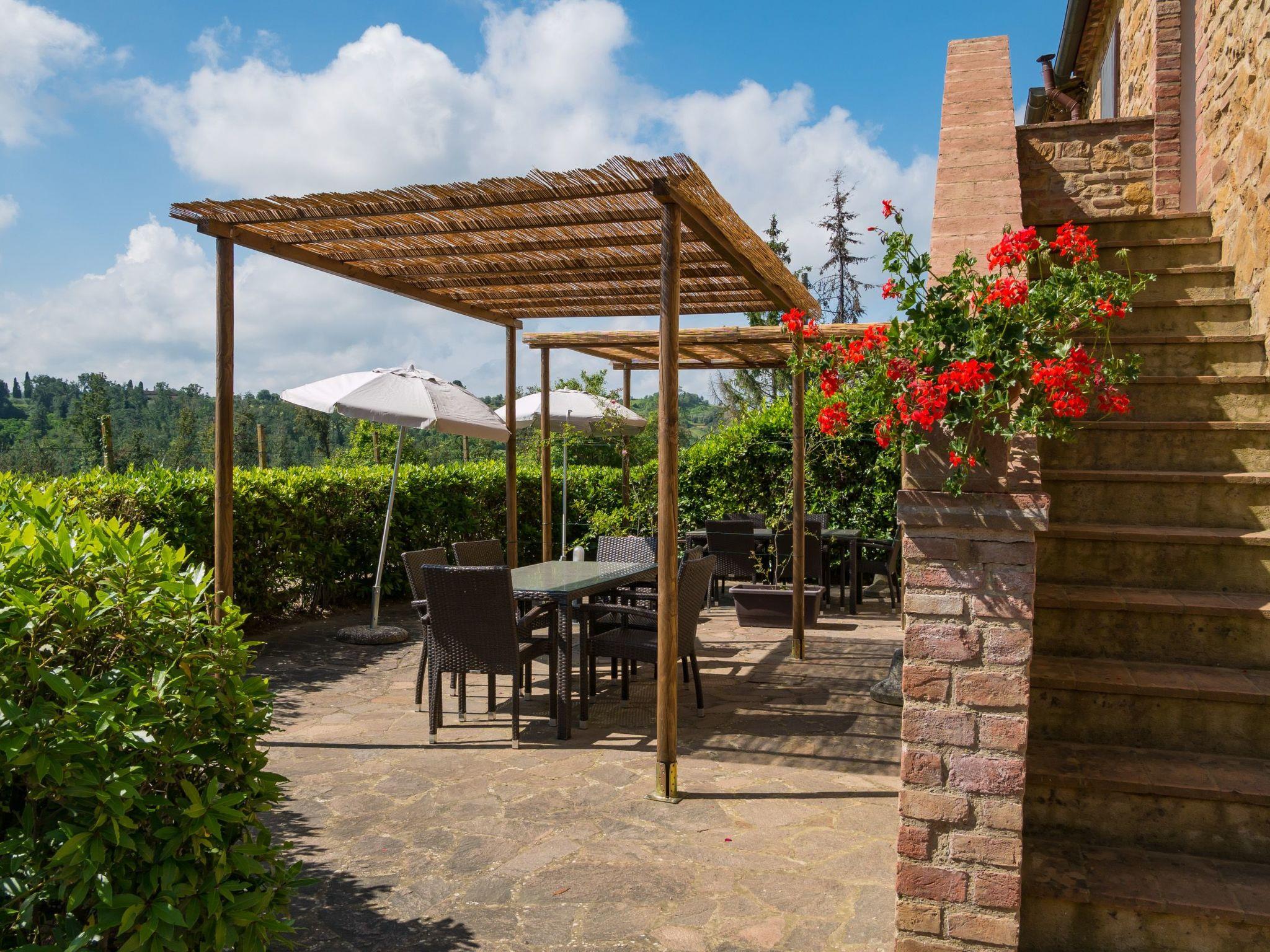 The exterior of the property boasts a beautiful swimming pool, harmoniously set in the enchanting Tuscan hillside landscape of olive groves and unspoilt land. This outdoor space offers guests the unique opportunity to completely immerse themselves in relaxation and serenity, while enjoying a breathtaking view of the countryside.