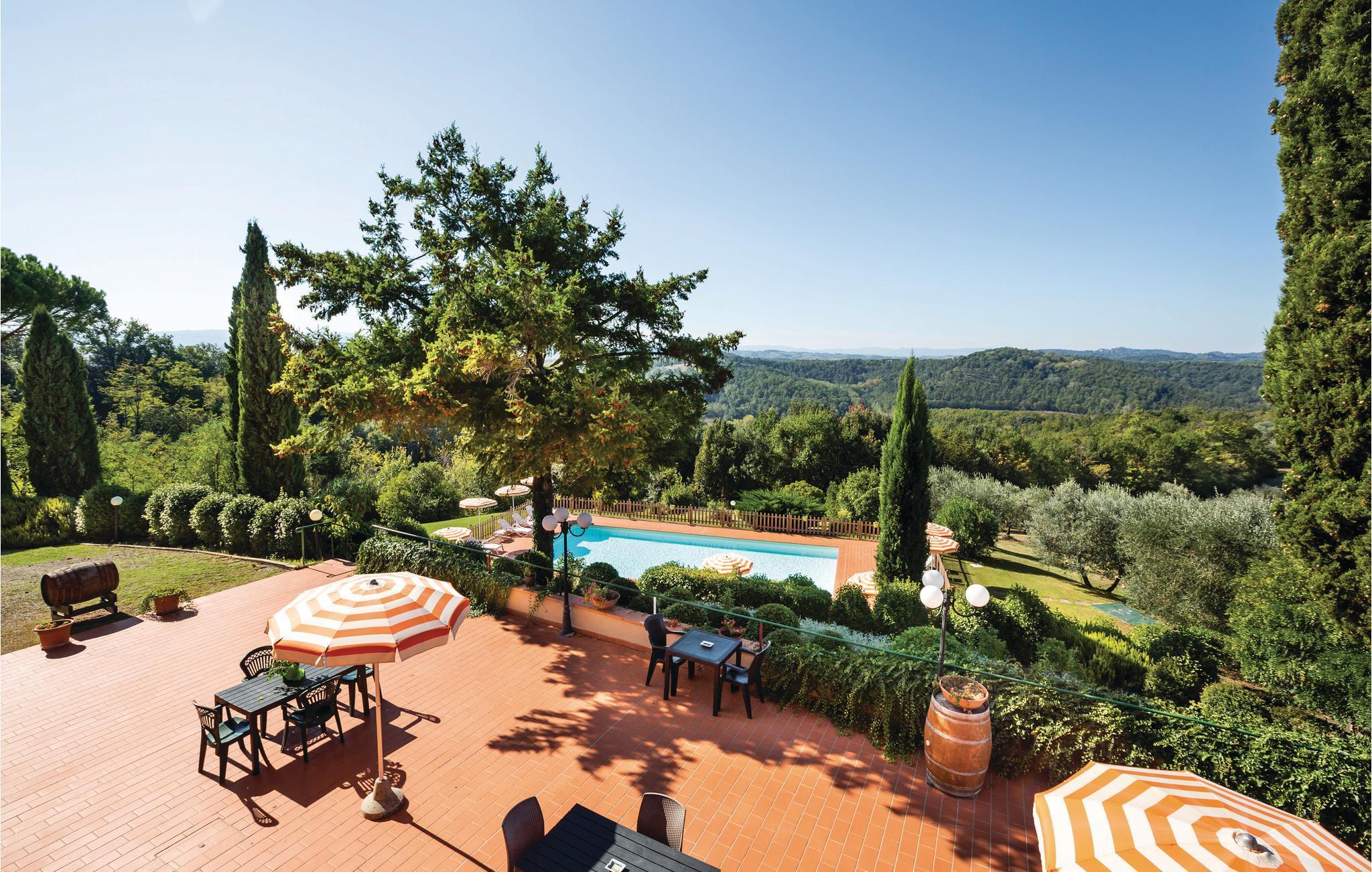 Til fælles brug: stor, indhegnet have med flot panoramapool. Prisvenlig, central beliggenhed tæt på de største turistmål i Toscana: Siena 40 km, Firenze 25 km, Pisa 30 km. Den nærmeste golfbane ligger 15 km væk, den nærmeste ridestald 12 km.