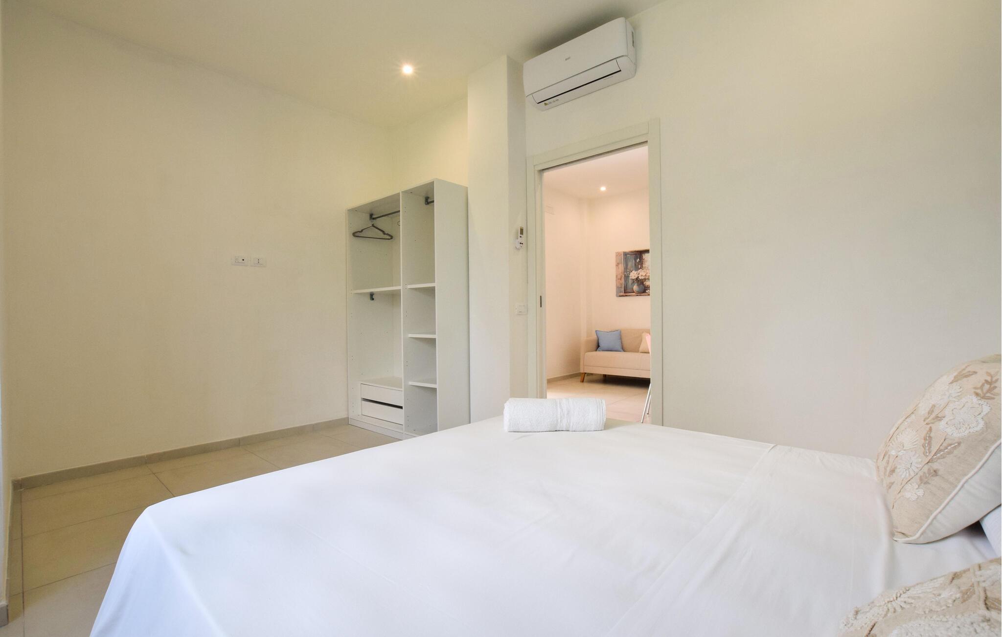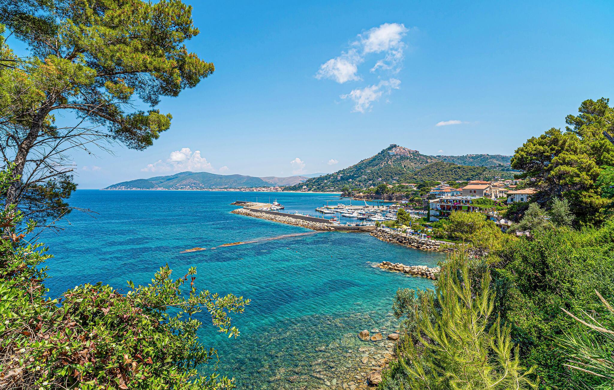 Nyd en afslappende pause i denne moderne ferielejlighed med smuk panoramaudsigt og adgang til poolen. Velkommen til denne komfortable lejlighed i stueetagen, der byder jer velkommen med sin lyse og venlige atmosfære – et hyggeligt tilflugtssted for begivenhedsrige dage. Fremstil lækre pastaretter lavet med lokale råvarer, planlæg jeres aktiviteter ved det indbydende spisebord, og slap af om aftenen med et brætspil eller en god bog på sofaen. Gå en tur barfodet hen over den velplejede græsplæne om morgenen for at svømme i den fælles pool. Bagefter kan I servere en lækker morgenmad udenforog nyde den fredelige atmosfære med afslappende siestaer på liggestolene. Gå en tur gennem de smalle gader i Castellabate og nyd det maleriske landskab fra middelalderslottet. Tag en bådtur langs Cilento-kysten eller solbad på strandene i Santa Maria di Castellabate. Vandr gennem Cilento Nationalpark eller oplev de imponerende templer i Paestum.